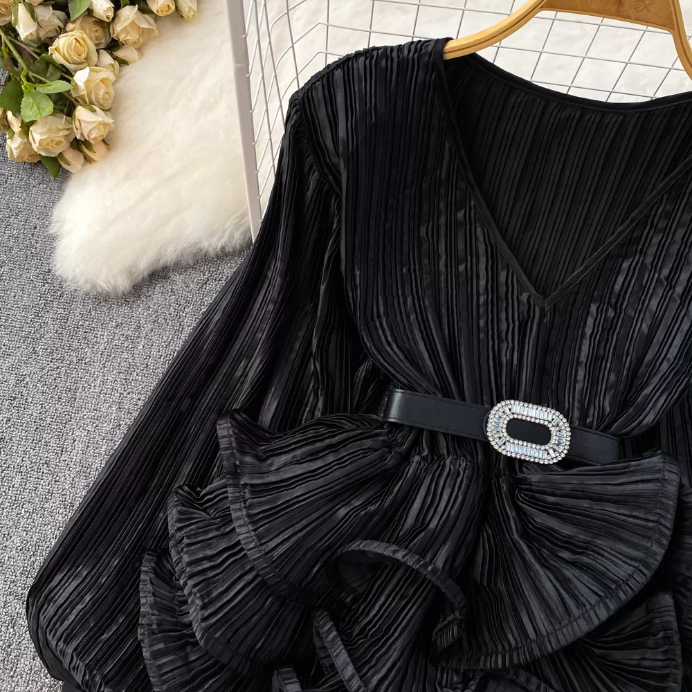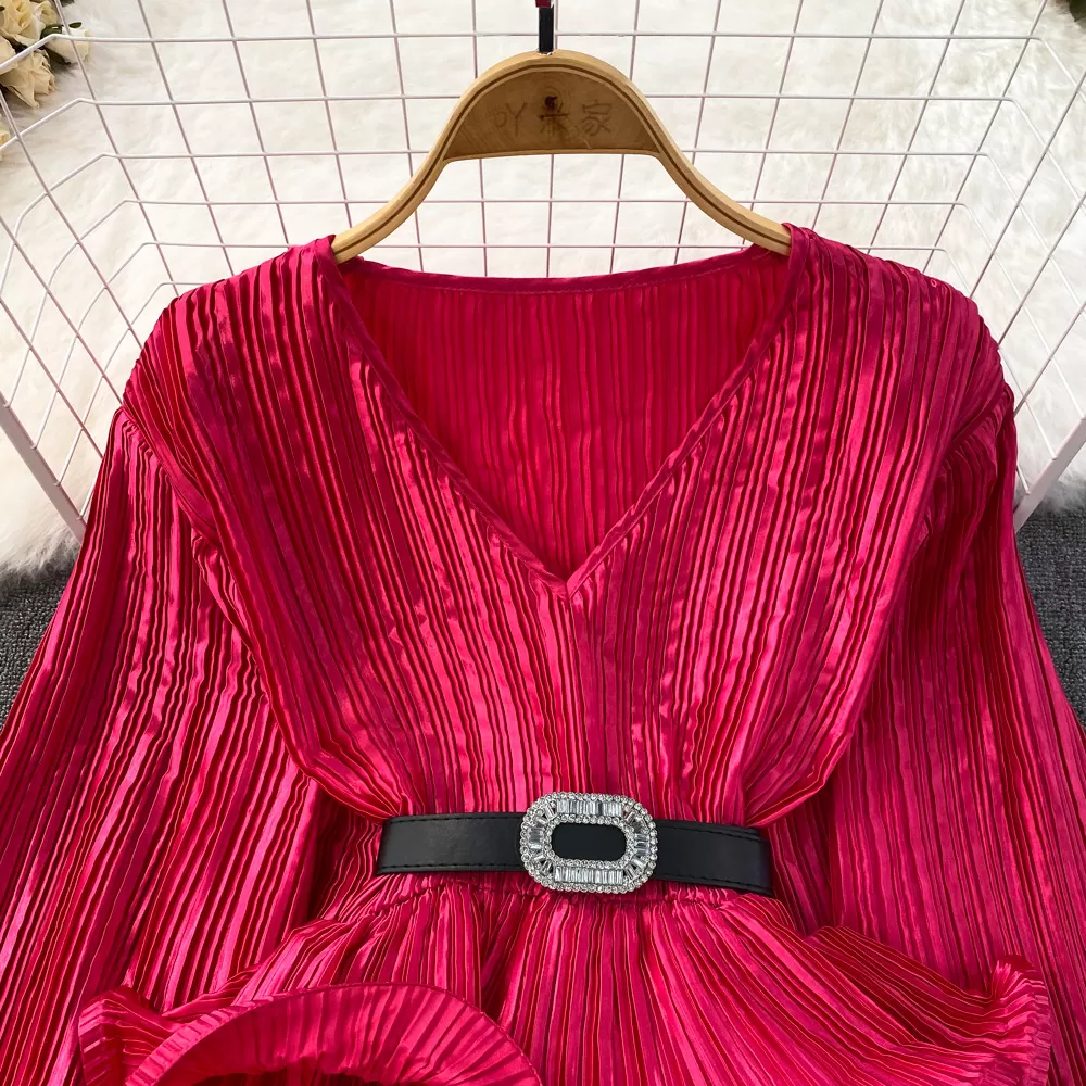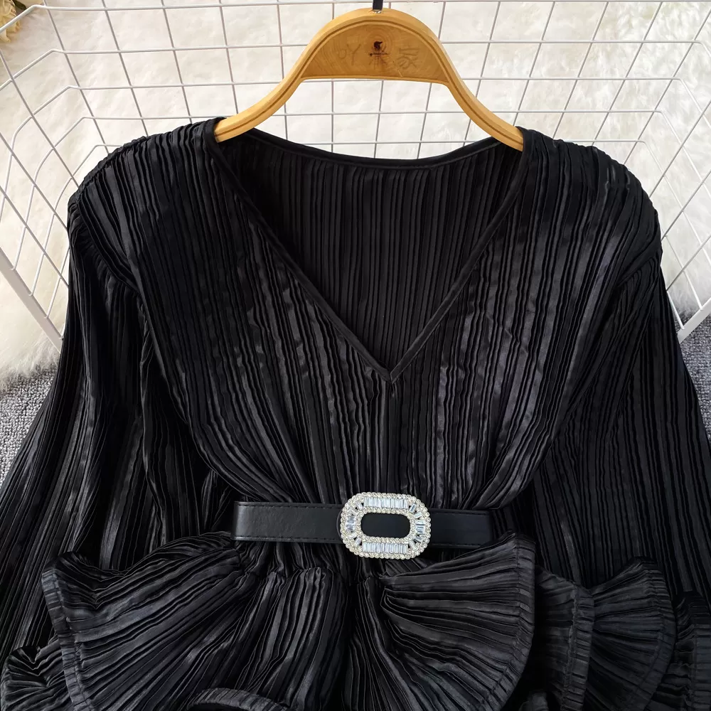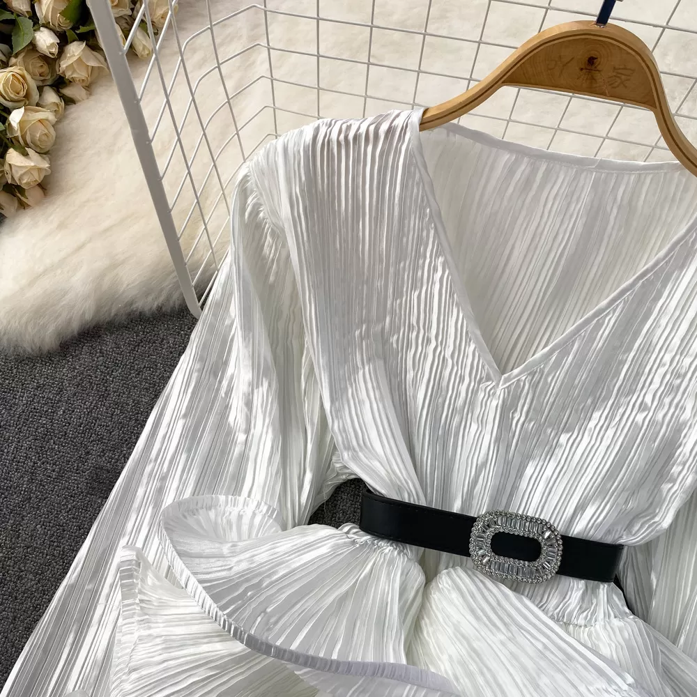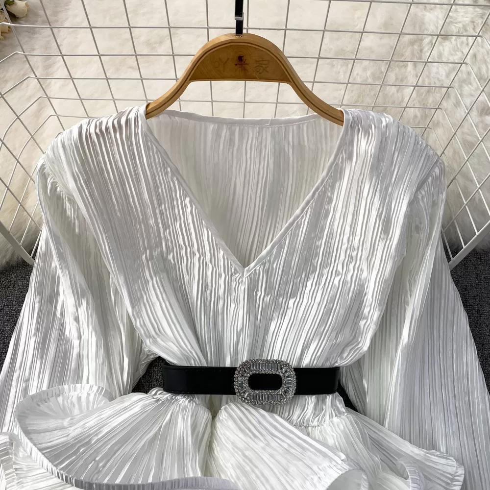 Lantern Long Sleeve V-neck Loose Belly-covering Waist Ruffle Hem Pullover Shirt Lantern Long Sleeve V-neck Loose Belly-covering Waist Ruffle Hem Pullover Shirt
