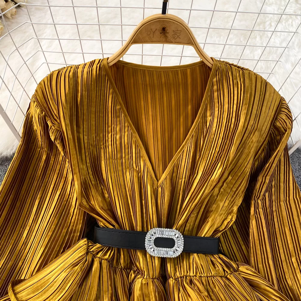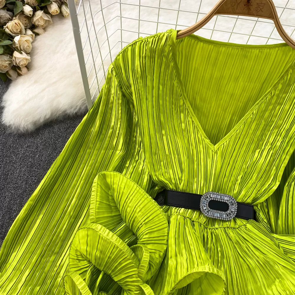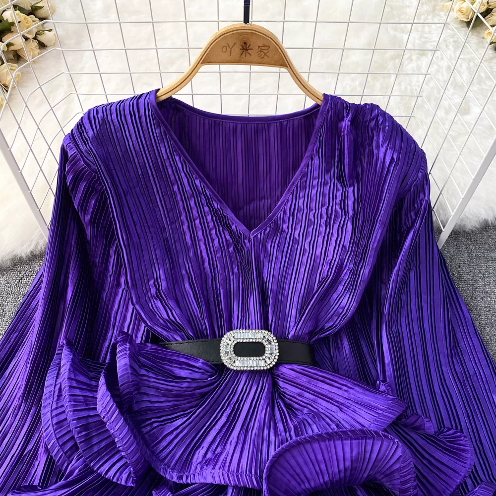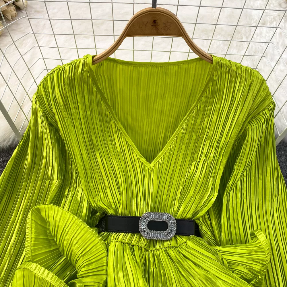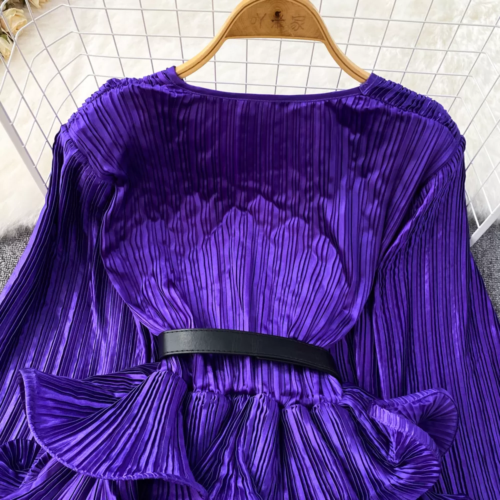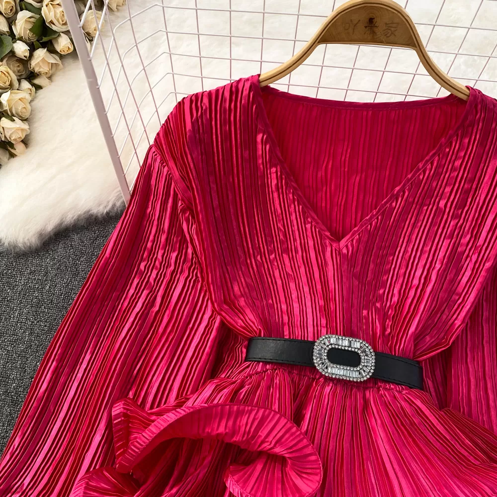 Lantern Long Sleeve V-neck Loose Belly-covering Waist Ruffle Hem Pullover Shirt Lantern Long Sleeve V-neck Loose Belly-covering Waist Ruffle Hem Pullover Shirt