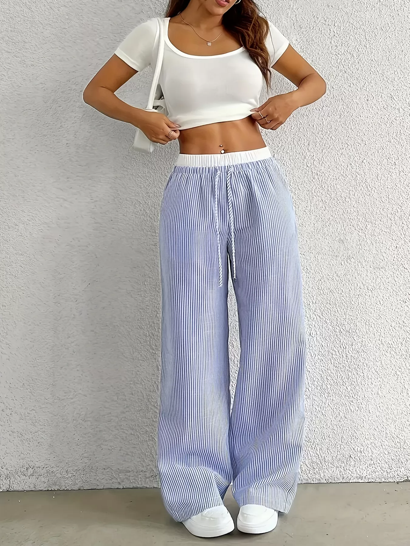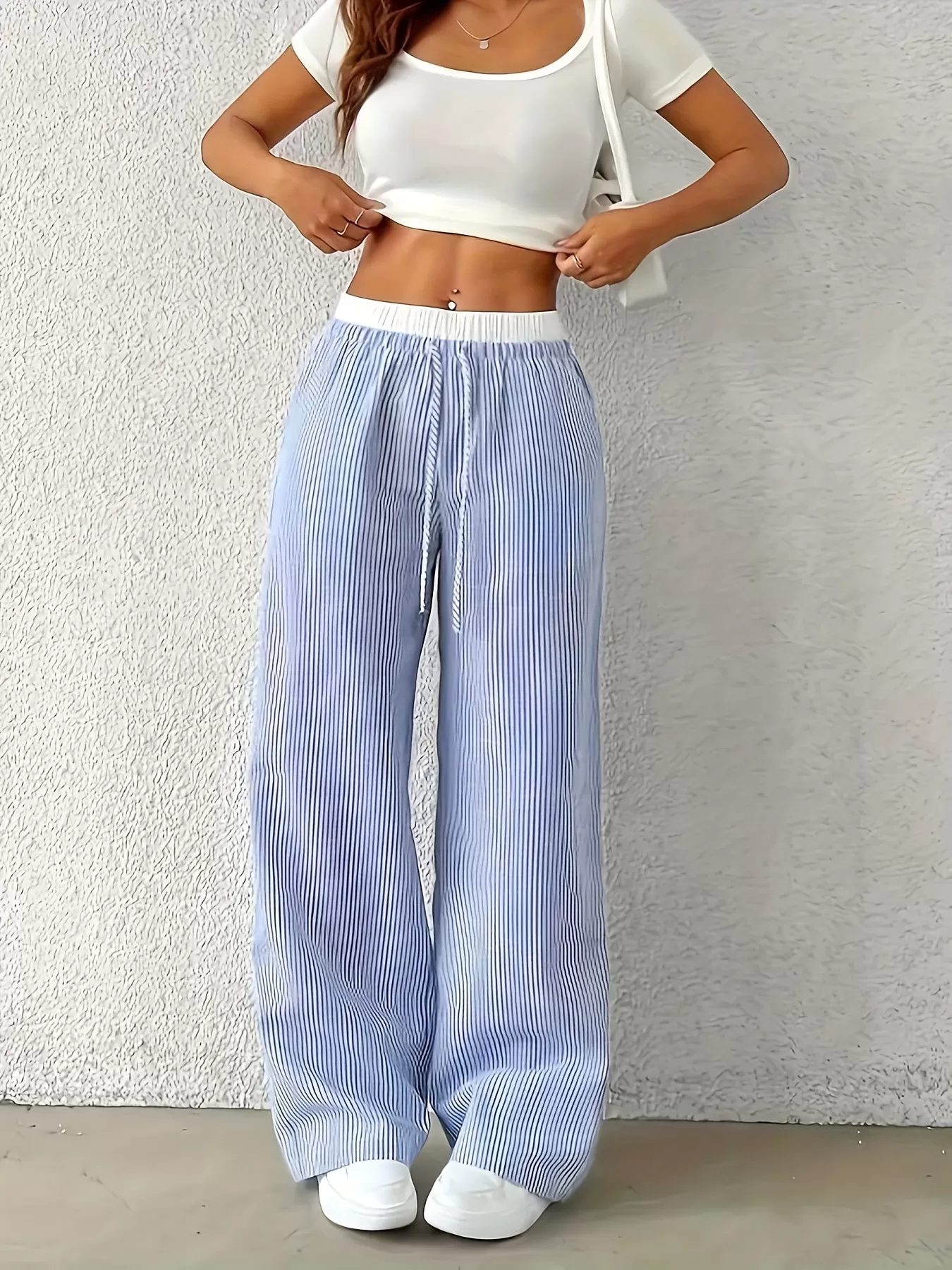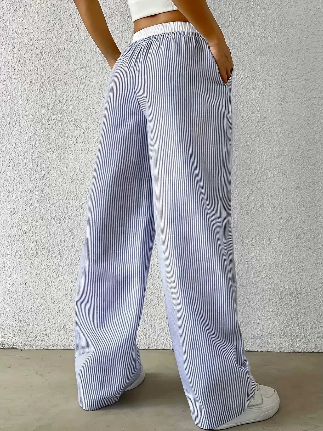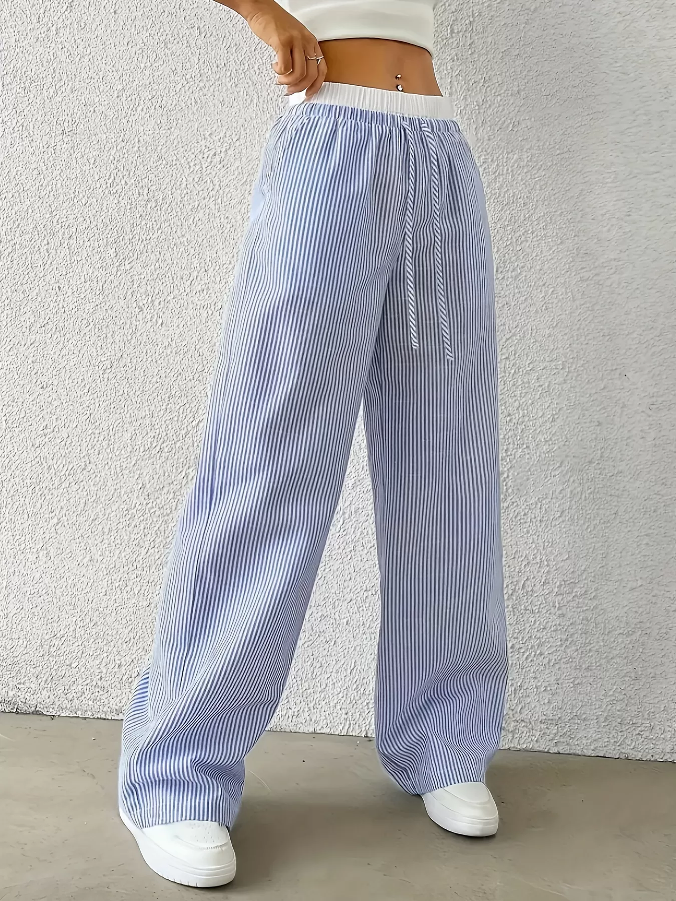 Leisure Commute Simple Blue Striped Draggle-tail Straight Trousers Leisure Commute Simple Blue Striped Draggle-tail Straight Trousers