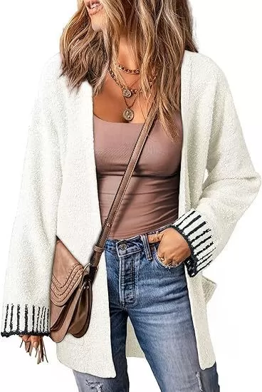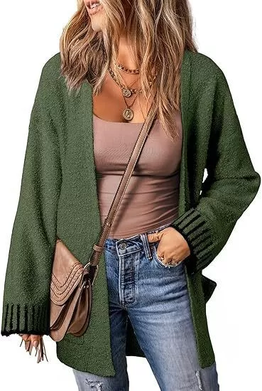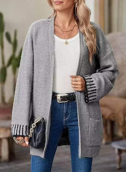 Long Sleeve Color Stitching Knitted Cardigan Pocket Women’s Clothing