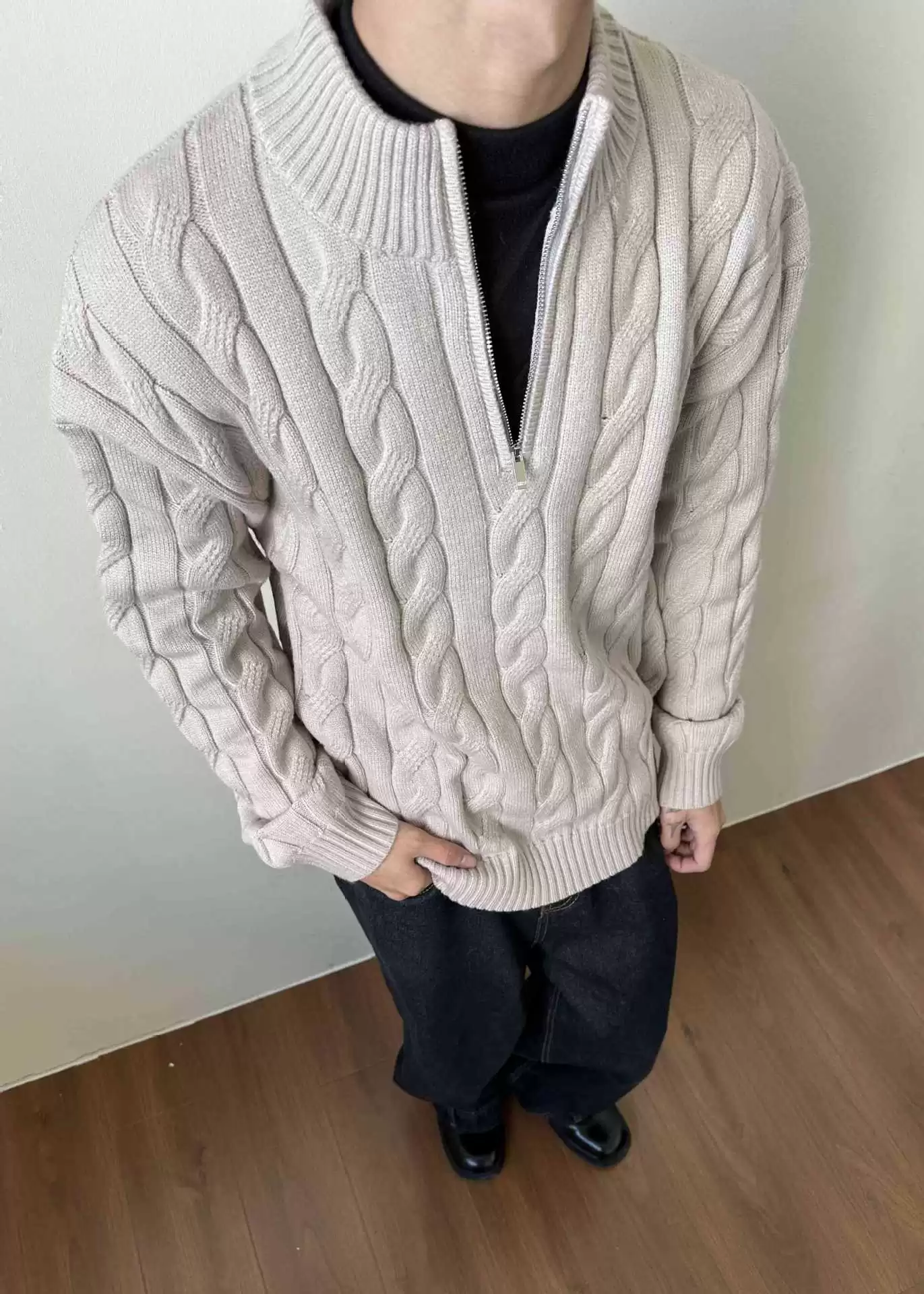 Loose Feeling Old Money British Half Zipper Heavy Sweater Loose Feeling Old Money British Half Zipper Heavy Sweater