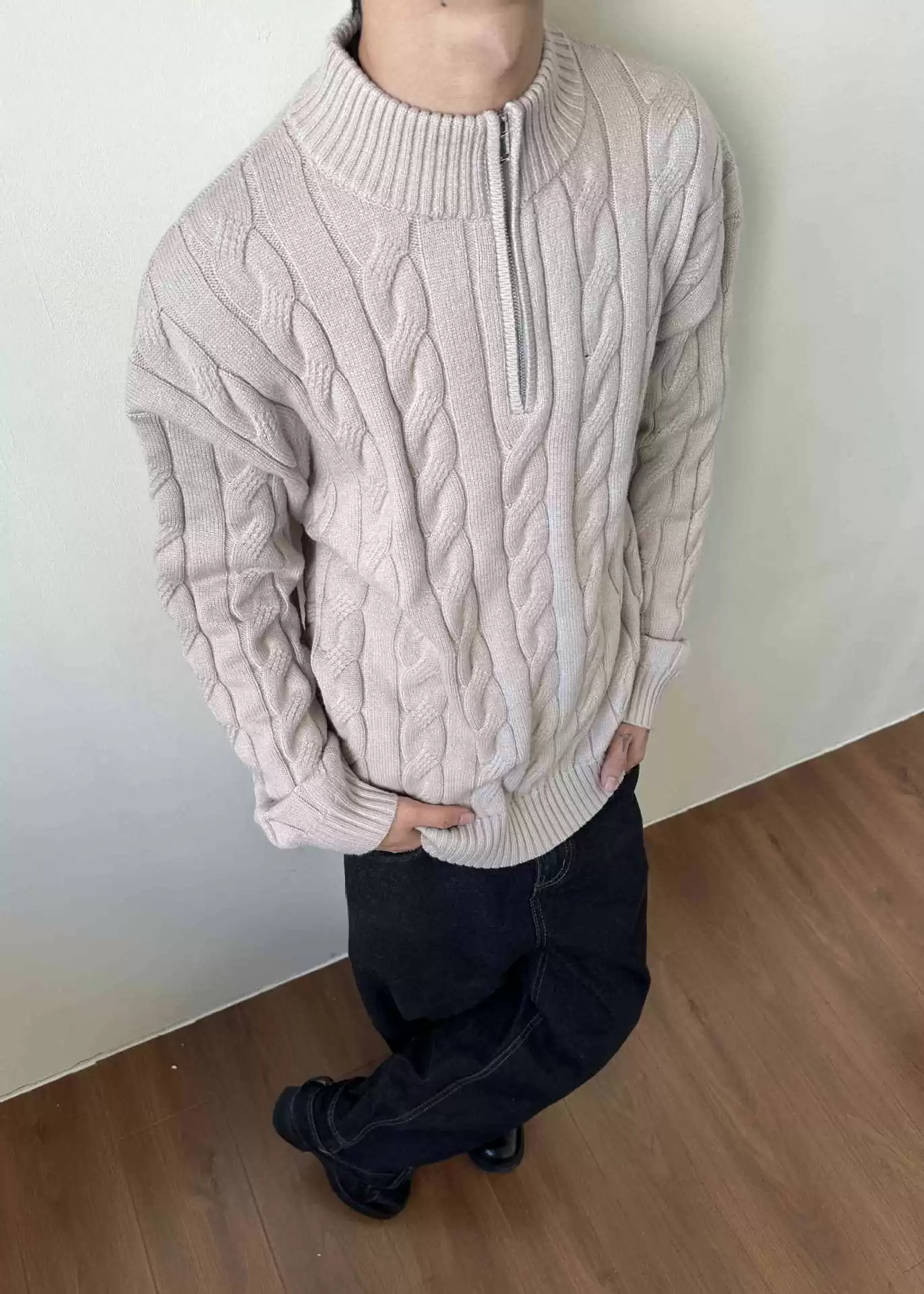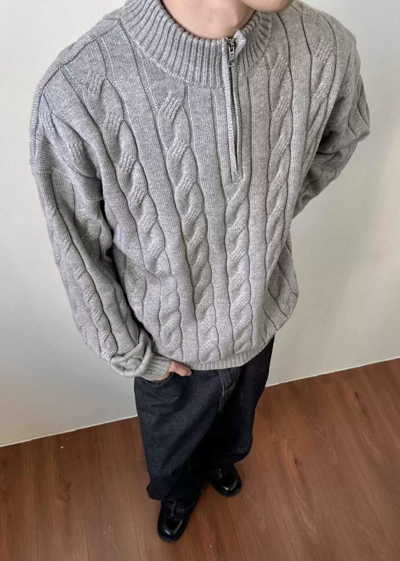 Loose Feeling Old Money British Half Zipper Heavy Sweater Loose Feeling Old Money British Half Zipper Heavy Sweater