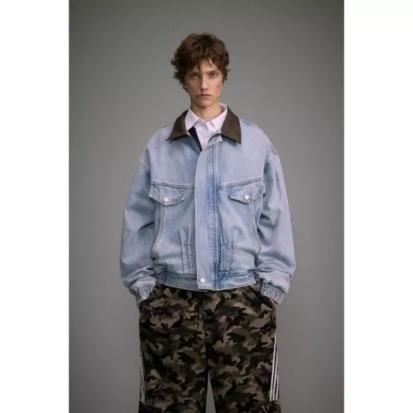Loose Washed-out Lapel Workwear Denim Men’s And Women’s Motorcycle Jacket