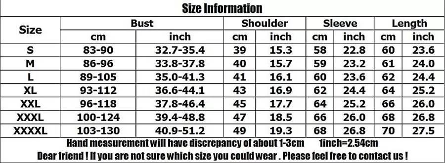 Note: 1. Asian sizes are 1 to 2 sizes smaller than European and American people. Choose the larger size if your size between two sizes. Please allow 2-3cm differences due to manual measurement. 2. Please check the size chart carefully before you buy the item, if you don’t know how to choose size, please contact our customer service. 3.As you know, the different computers display colors differently, the color of the actual item may vary slightly from the following images.