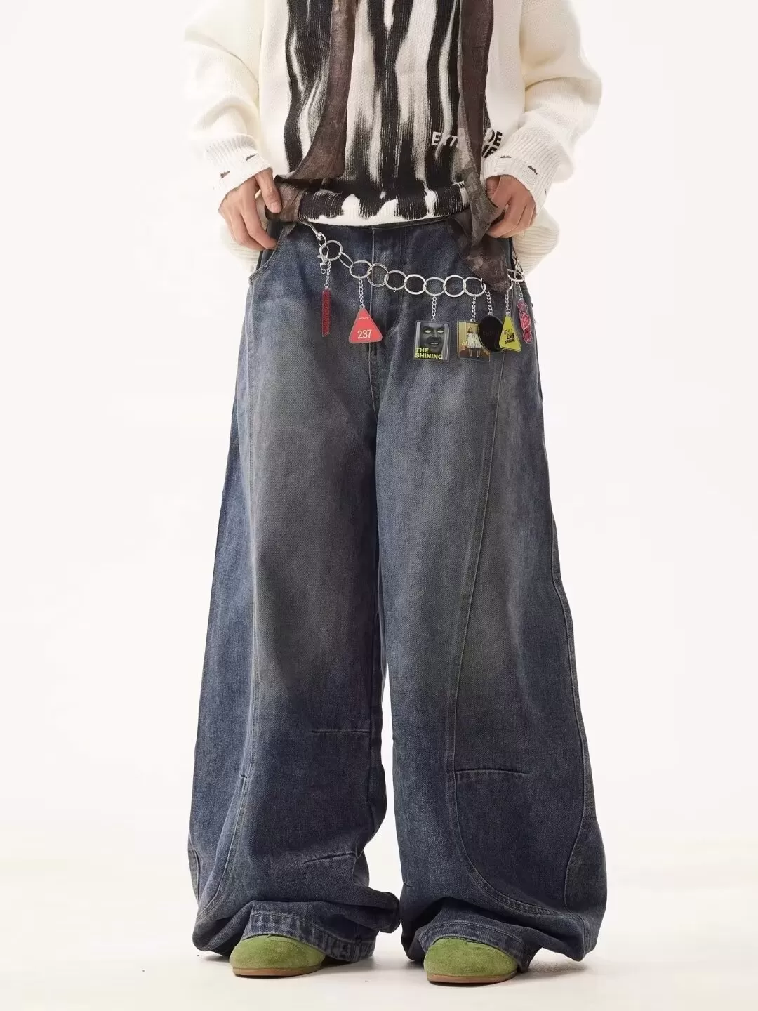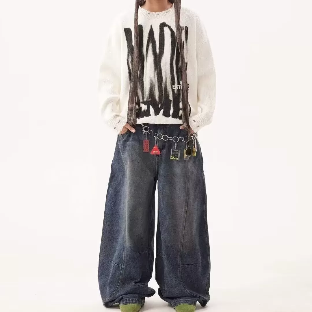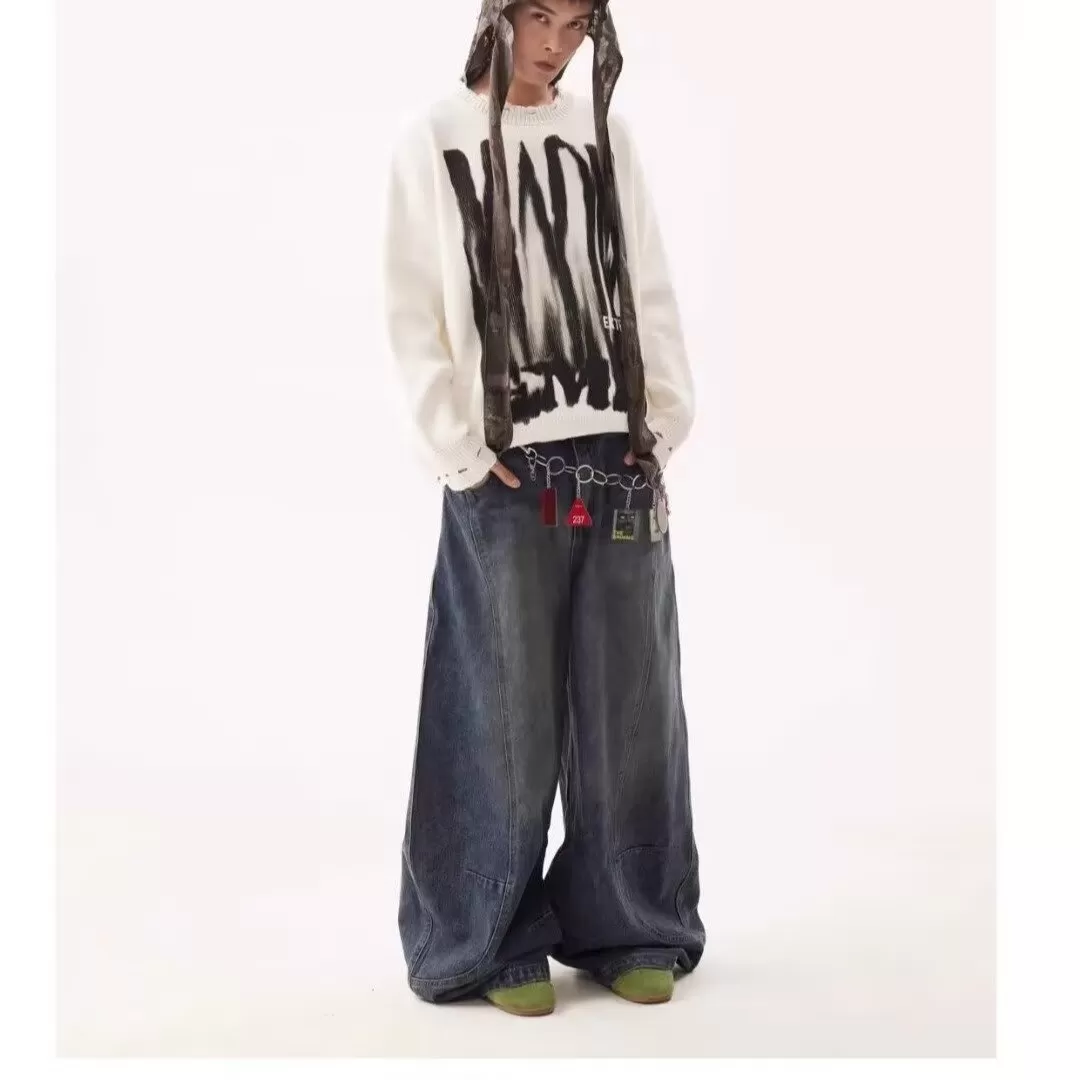 Men's High Street Loose Washed Machete Jeans Men's High Street Loose Washed Machete Jeans
