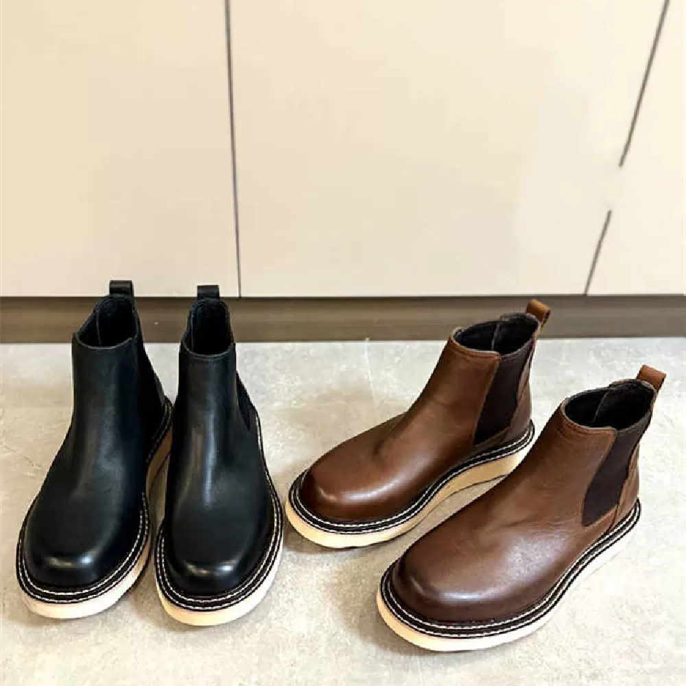 Men’s Leather Platform High-top Leather Shoes Martin Boots