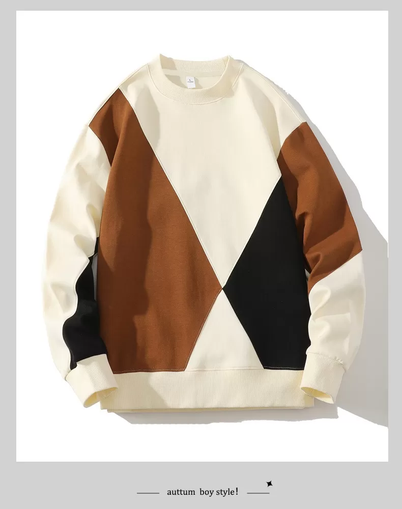 Men’s Round Neck Sweater Spring Fashion Loose Breathable Stitching Long Sleeve