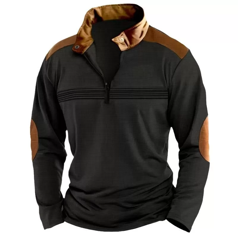 Men’s Stitching Polo Shirt Long-sleeve Zipper Sports