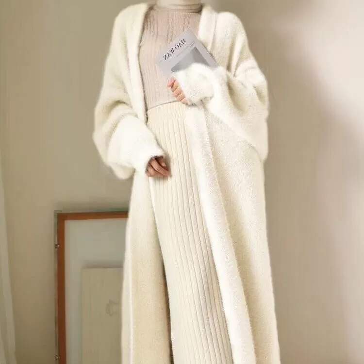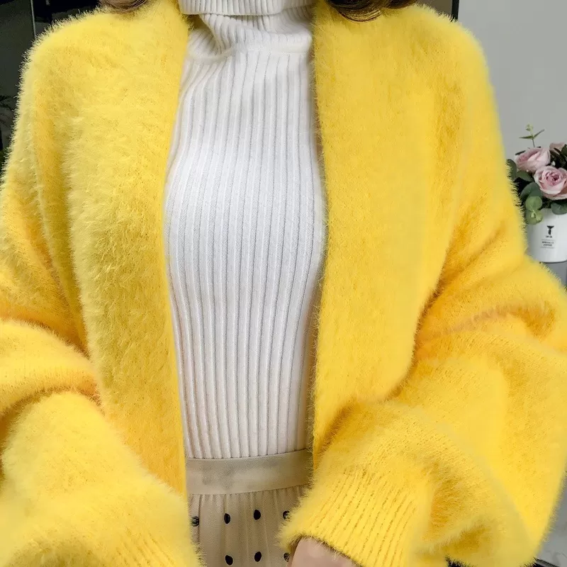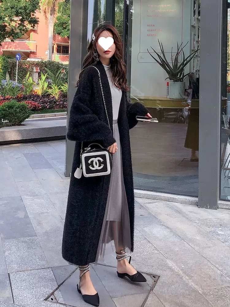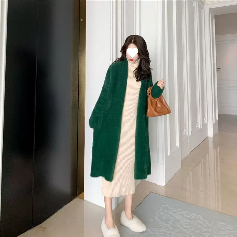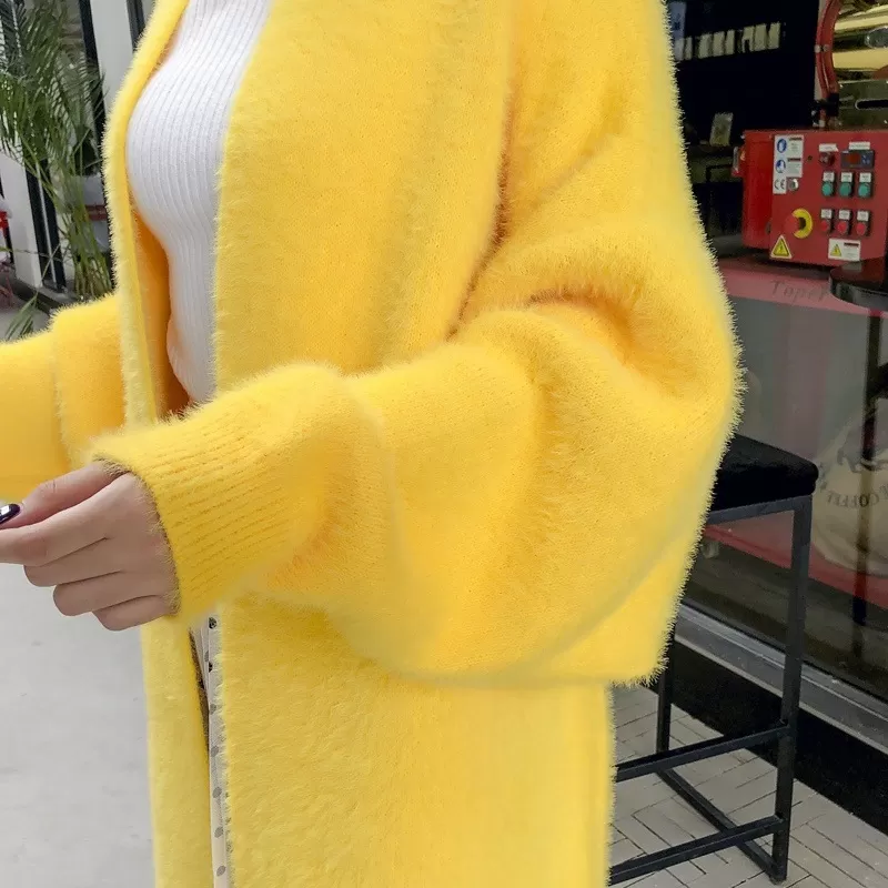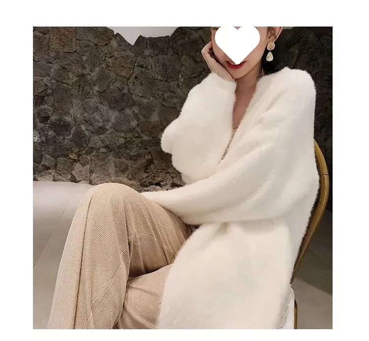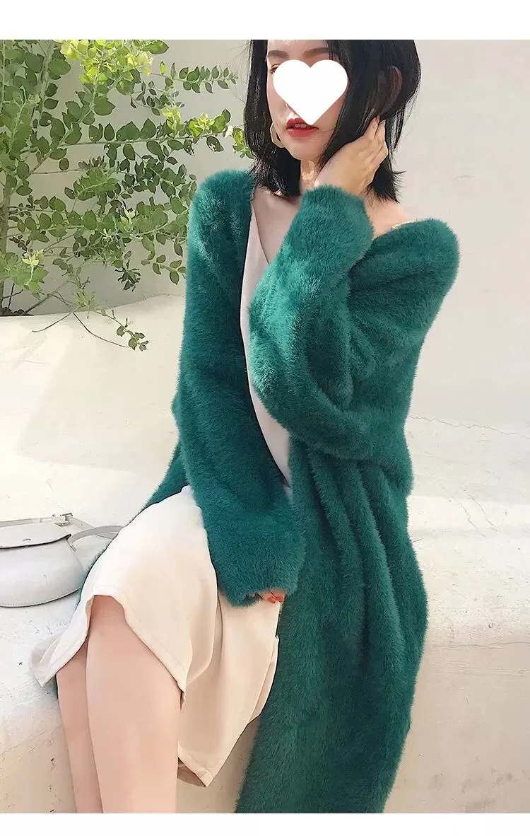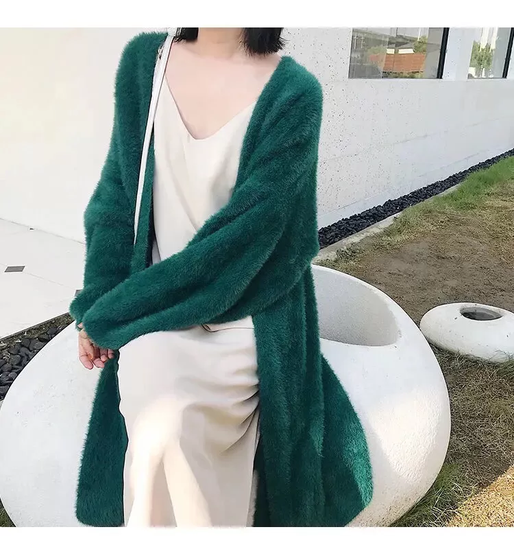 Mink-like Wool Cardigan Loose Size Thickened Mid-length Idle Style Knitted Coat Mink-like Wool Cardigan Loose Size Thickened Mid-length Idle Style Knitted Coat