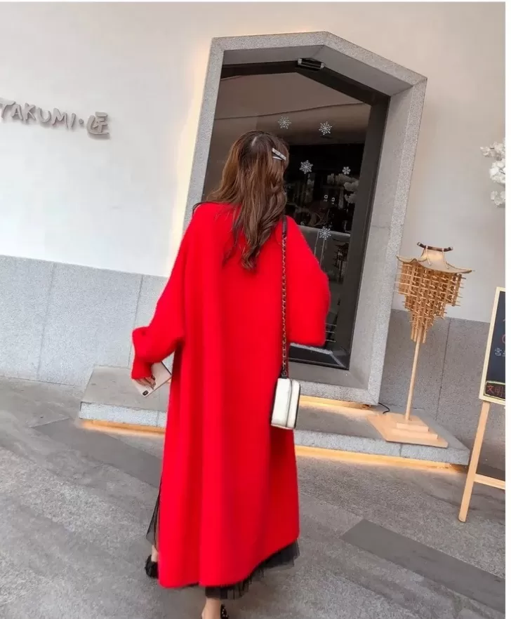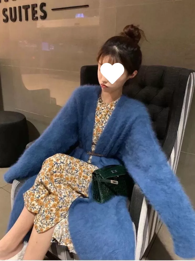 Mink-like Wool Cardigan Loose Size Thickened Mid-length Idle Style Knitted Coat