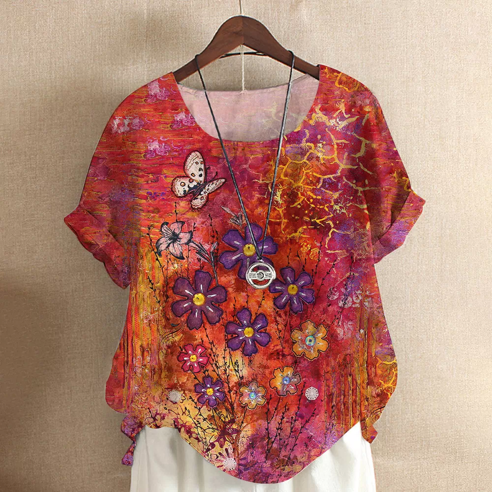New Short-sleeved T-shirt Flower And Plant Painting 3D Digital Printing Top