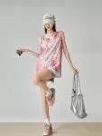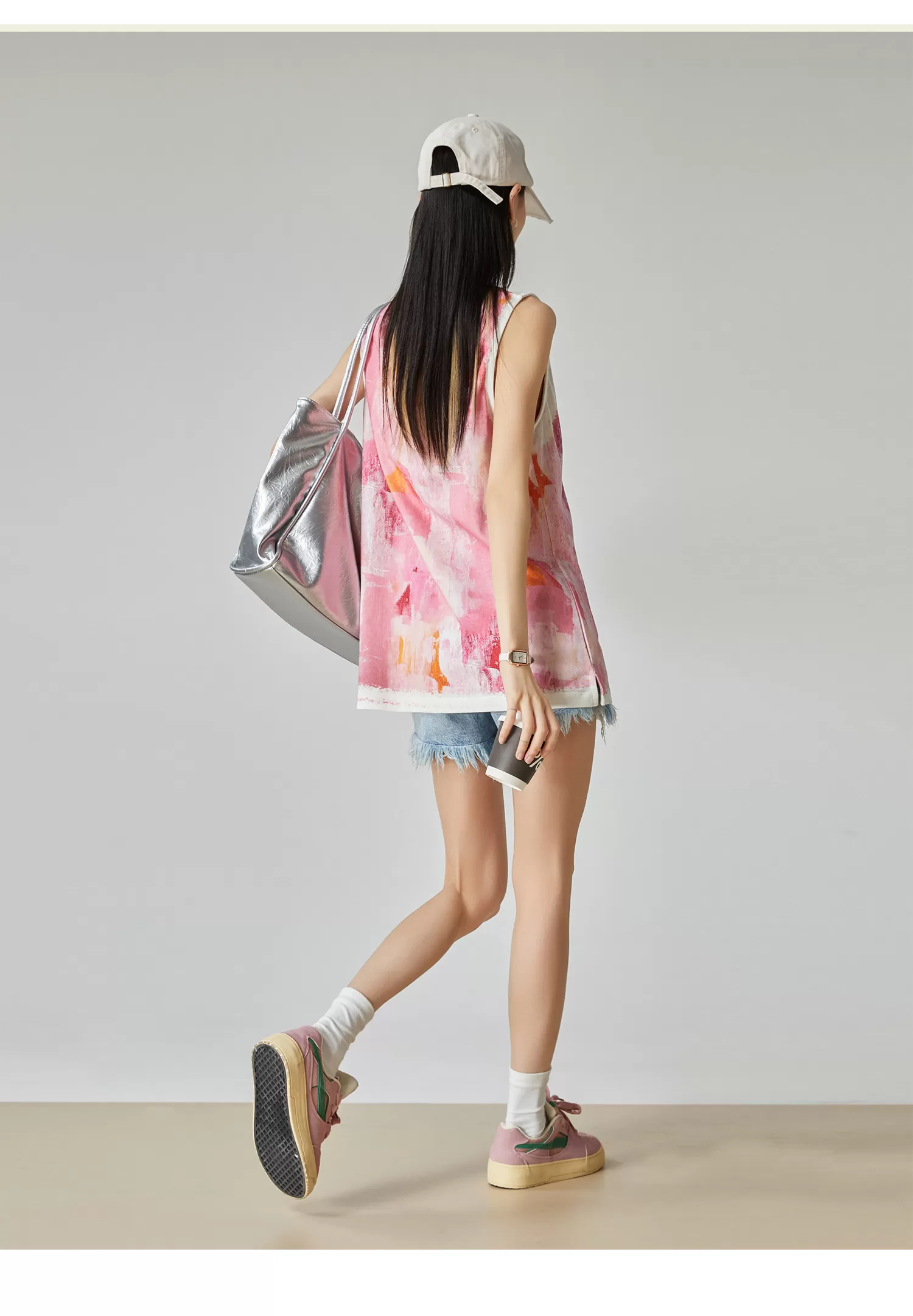 Pink Watercolor Floral Sleeveless T-shirt Women’s Loose Vest Top