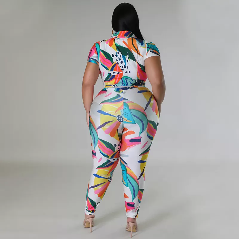 Plus Size Women's Printed Summer Short Sleeve Trousers Plus Size Women's Printed Summer Short Sleeve Trousers