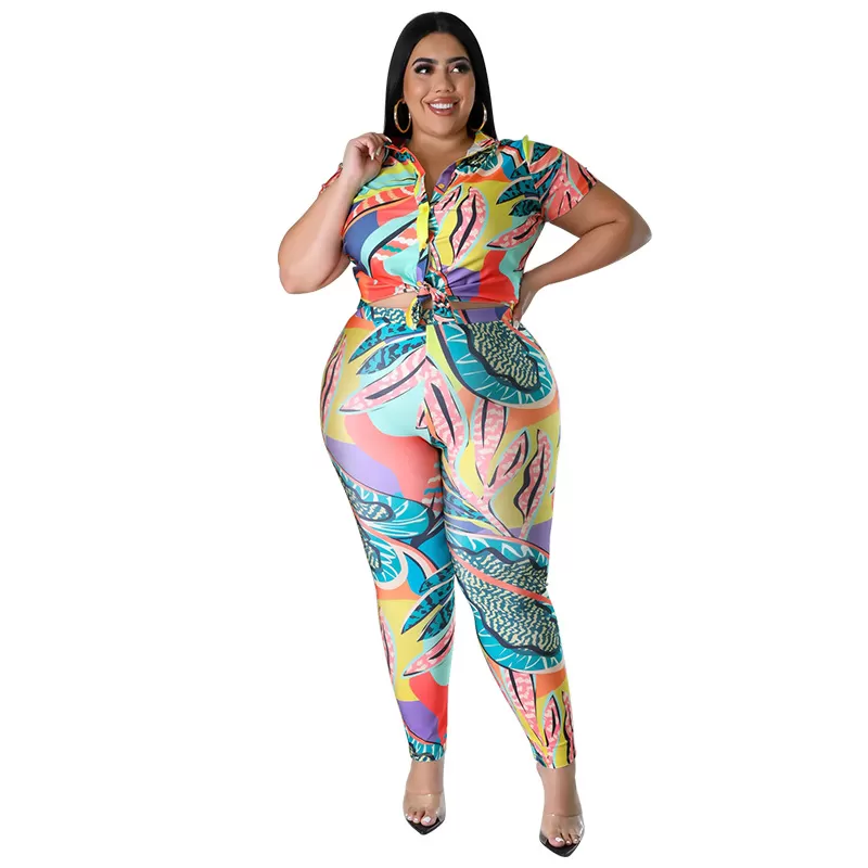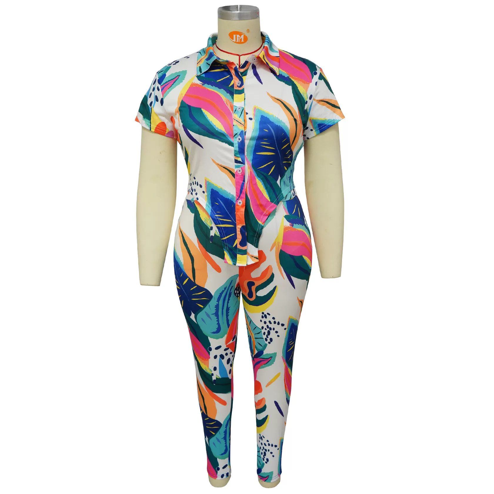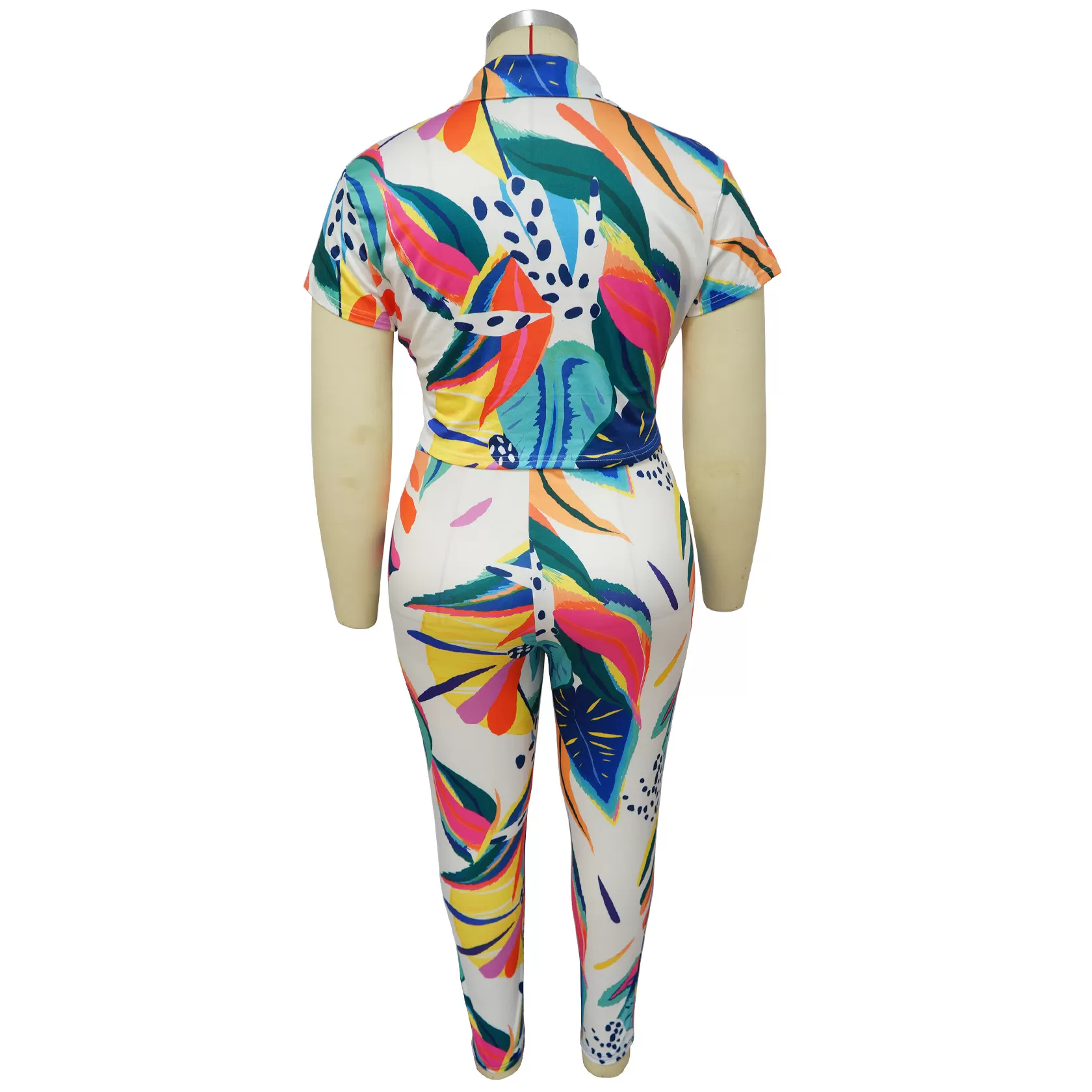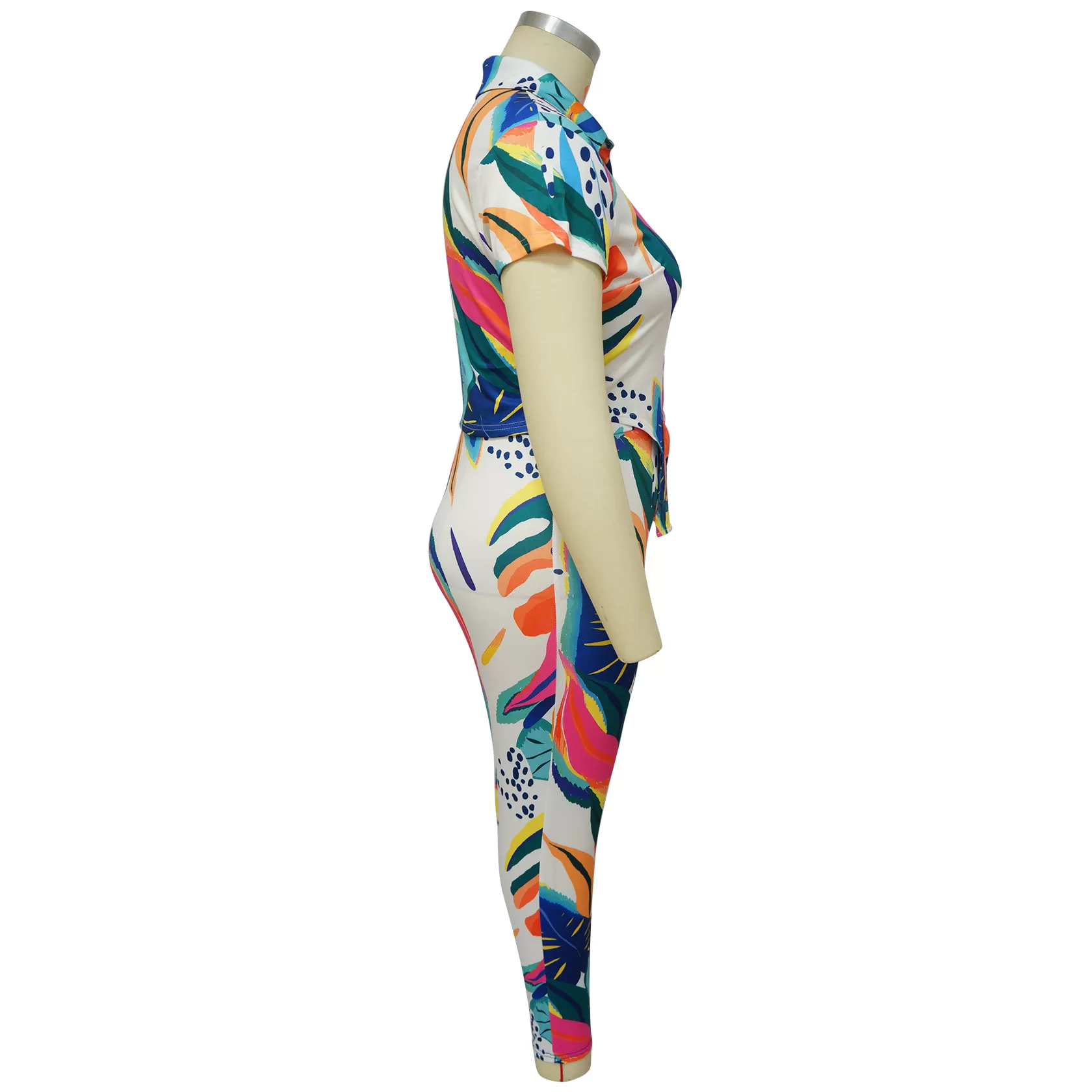 Plus Size Women's Printed Summer Short Sleeve Trousers Plus Size Women's Printed Summer Short Sleeve Trousers