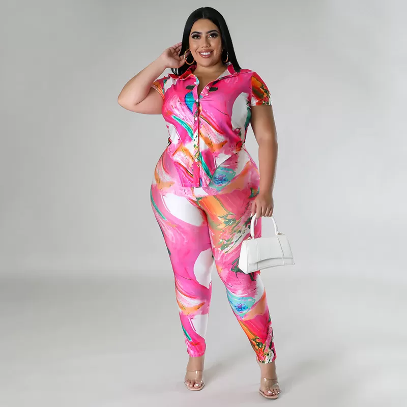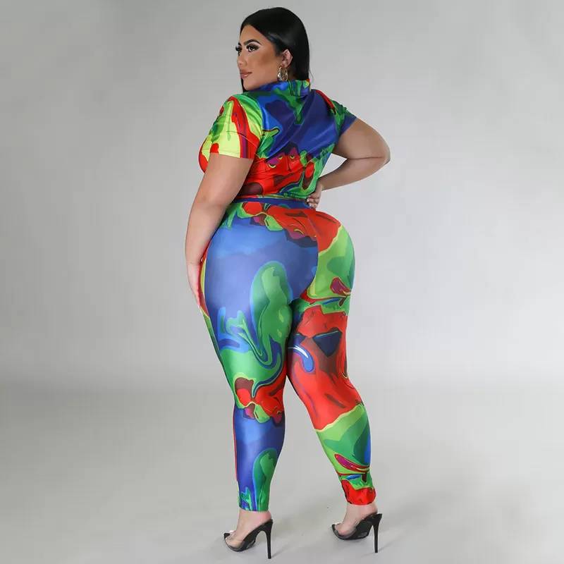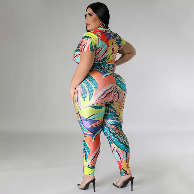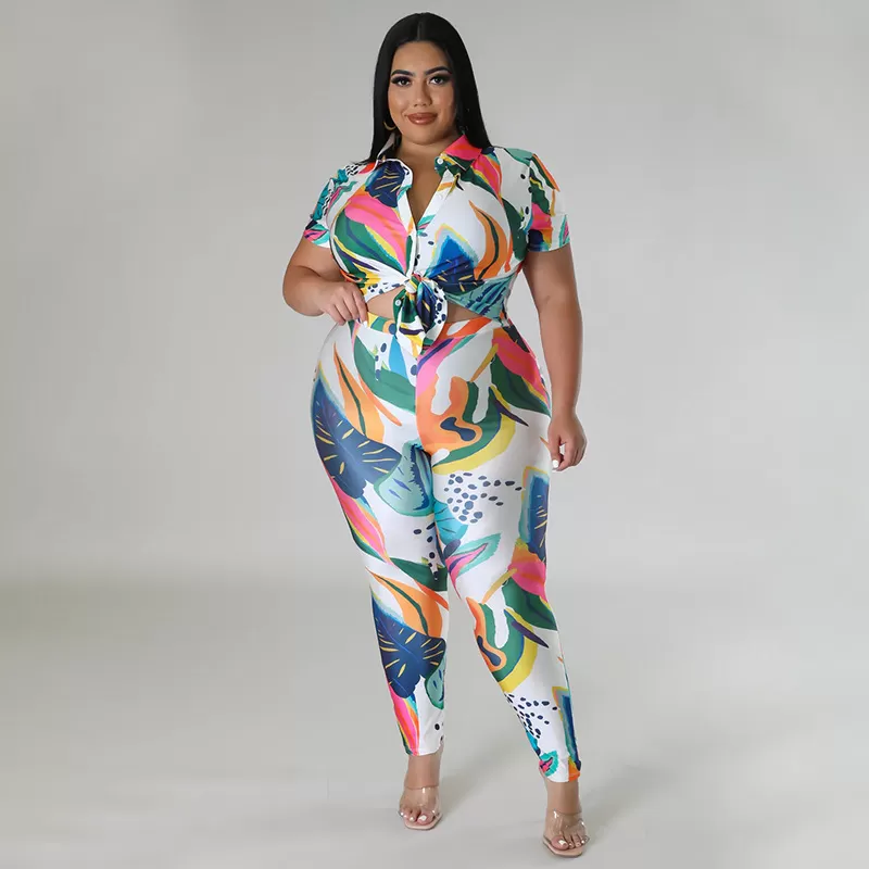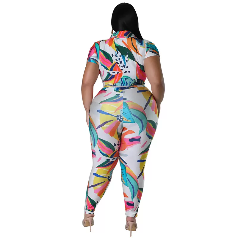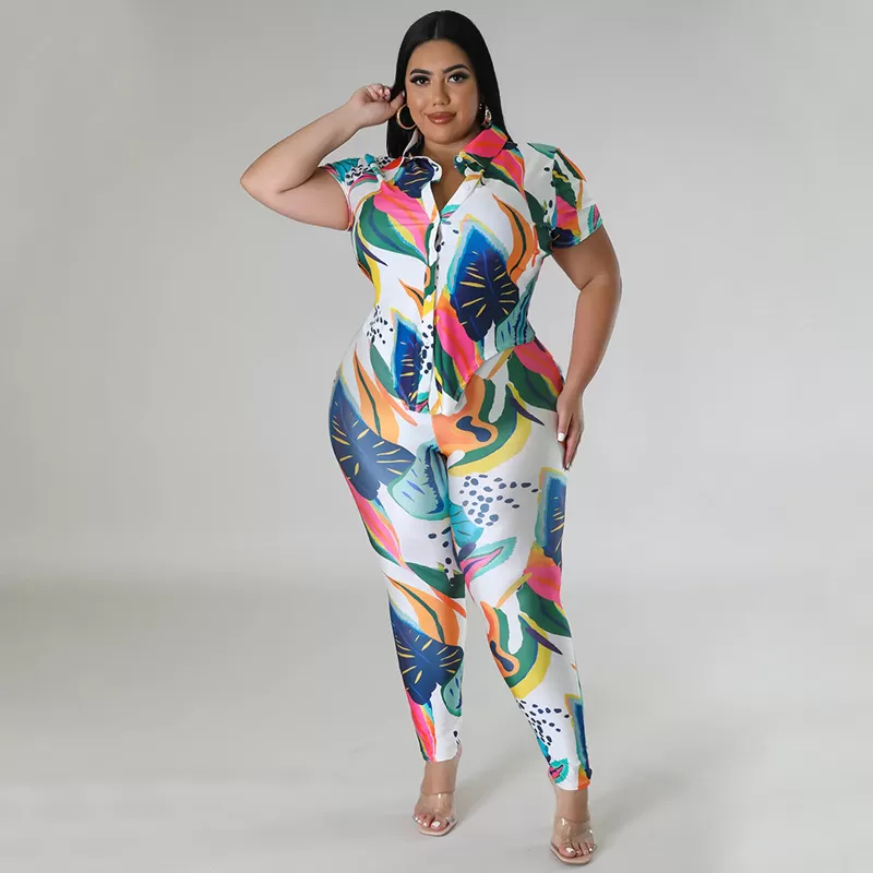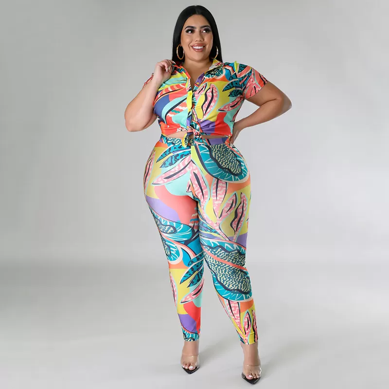 Plus Size Women's Printed Summer Short Sleeve Trousers Plus Size Women's Printed Summer Short Sleeve Trousers