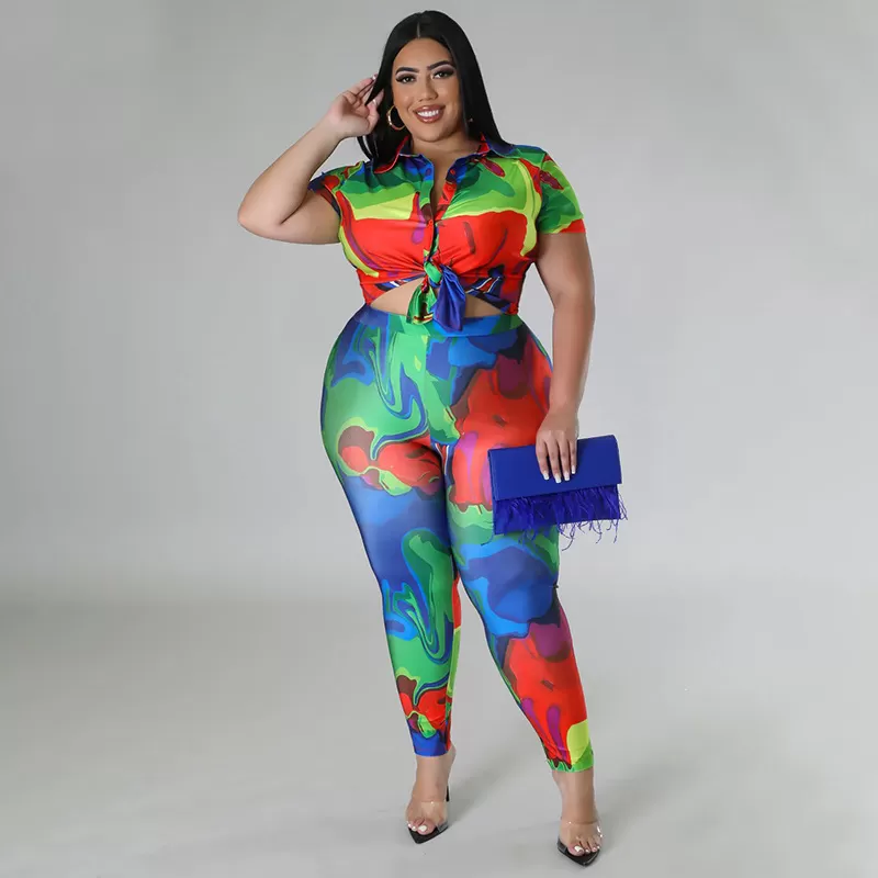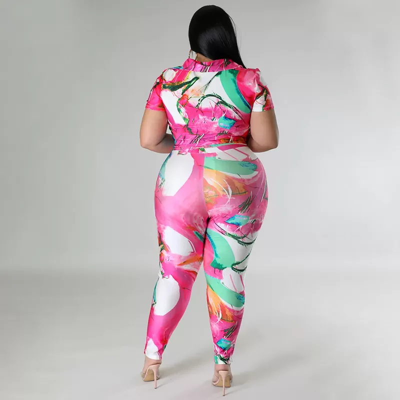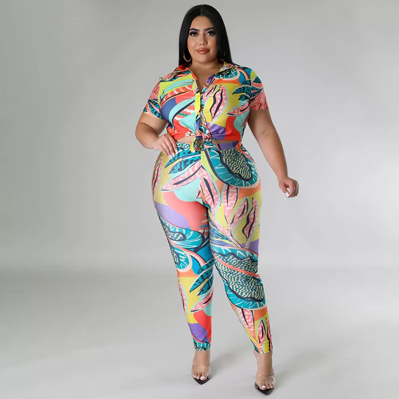 Plus Size Women’s Printed Summer Short Sleeve Trousers