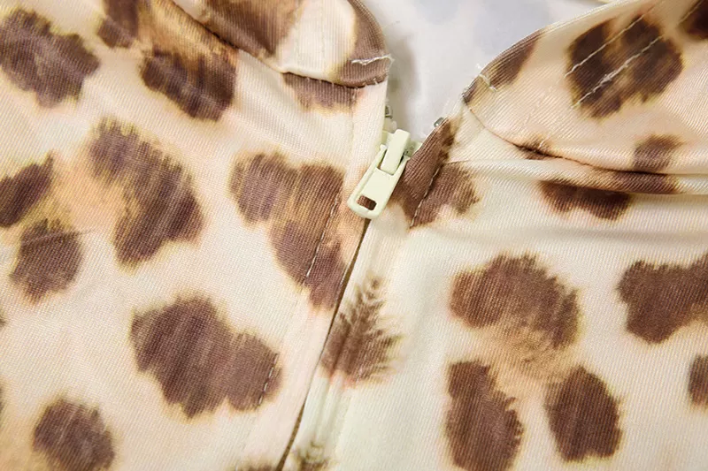 Printed Hooded Cardigan Top Leopard Print High Waist Tight Trousers Suit Women Printed Hooded Cardigan Top Leopard Print High Waist Tight Trousers Suit Women