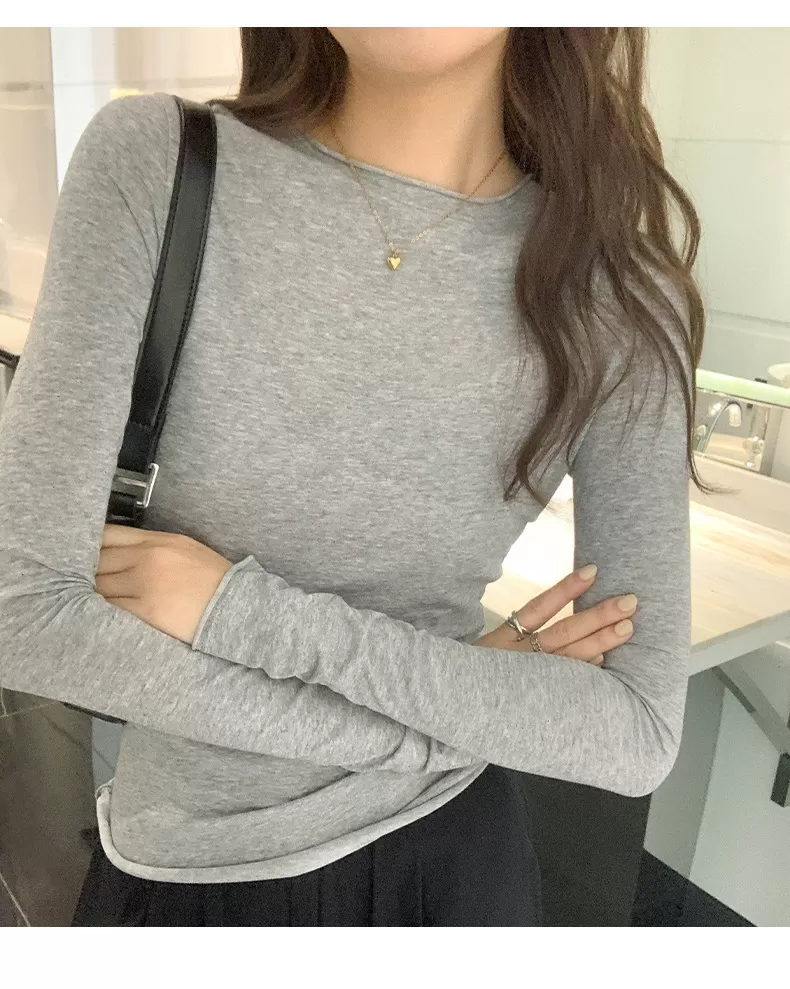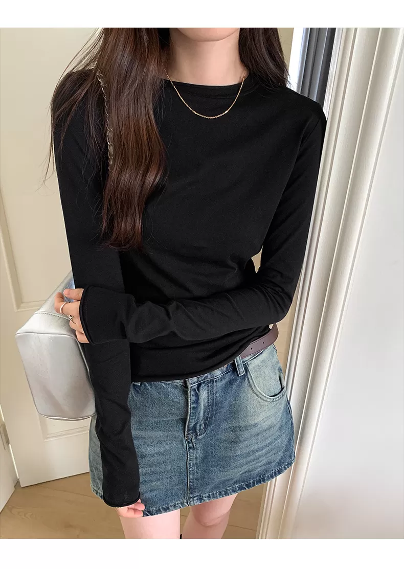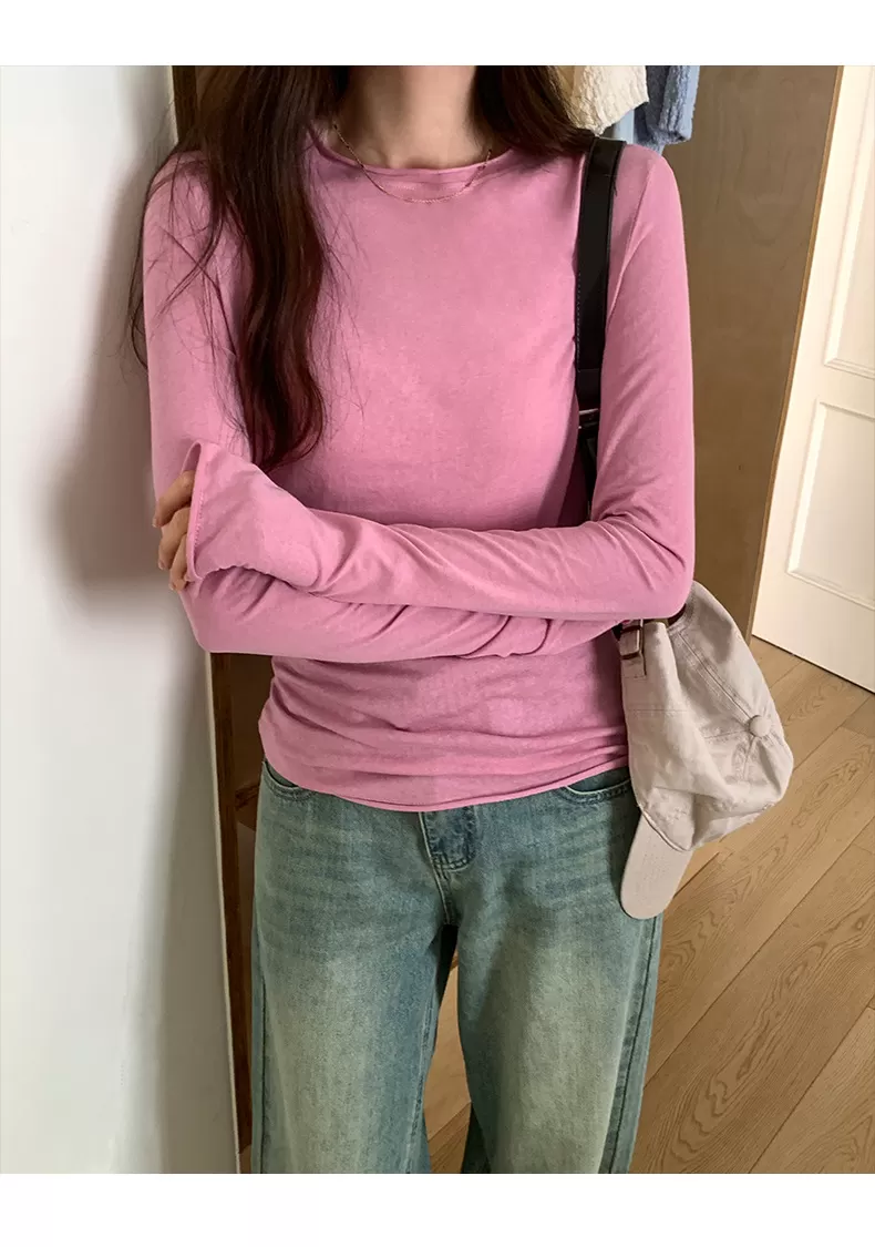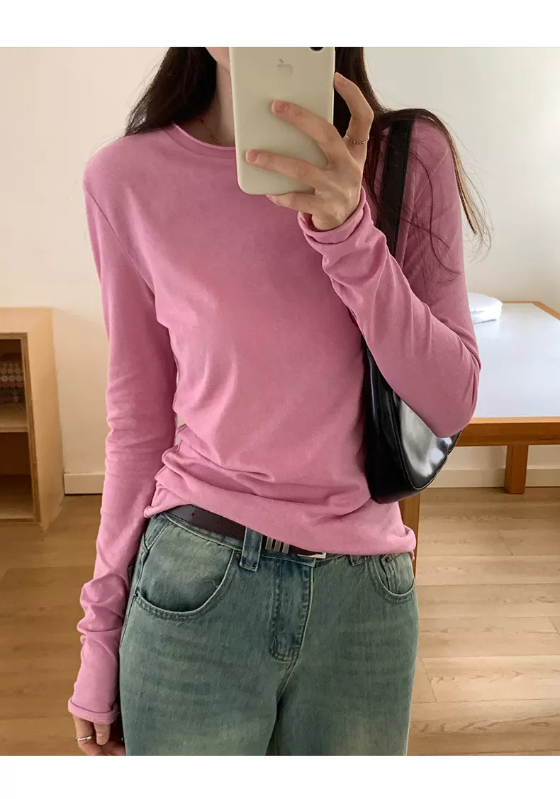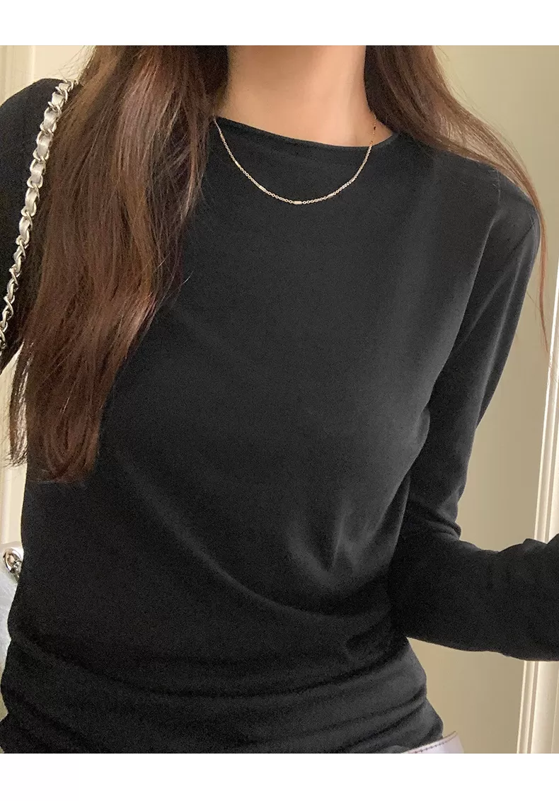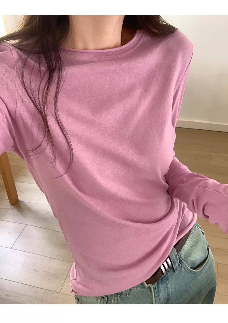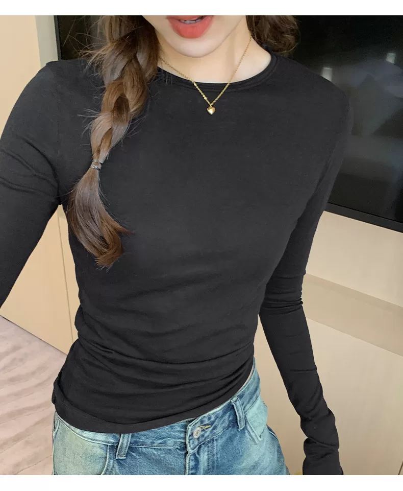Pure Color All-matching Long Sleeve New Slim-fit Slimming Bottoming Shirt