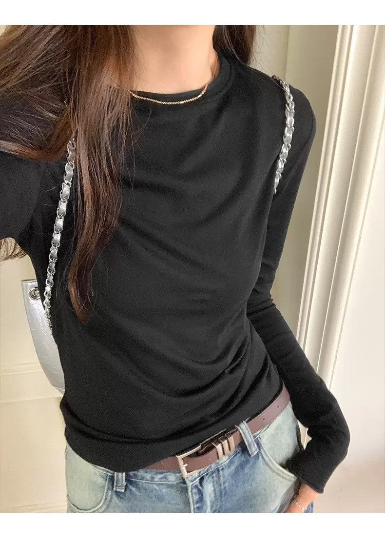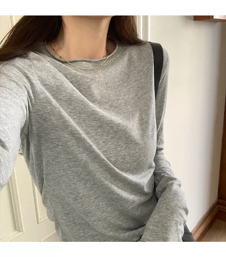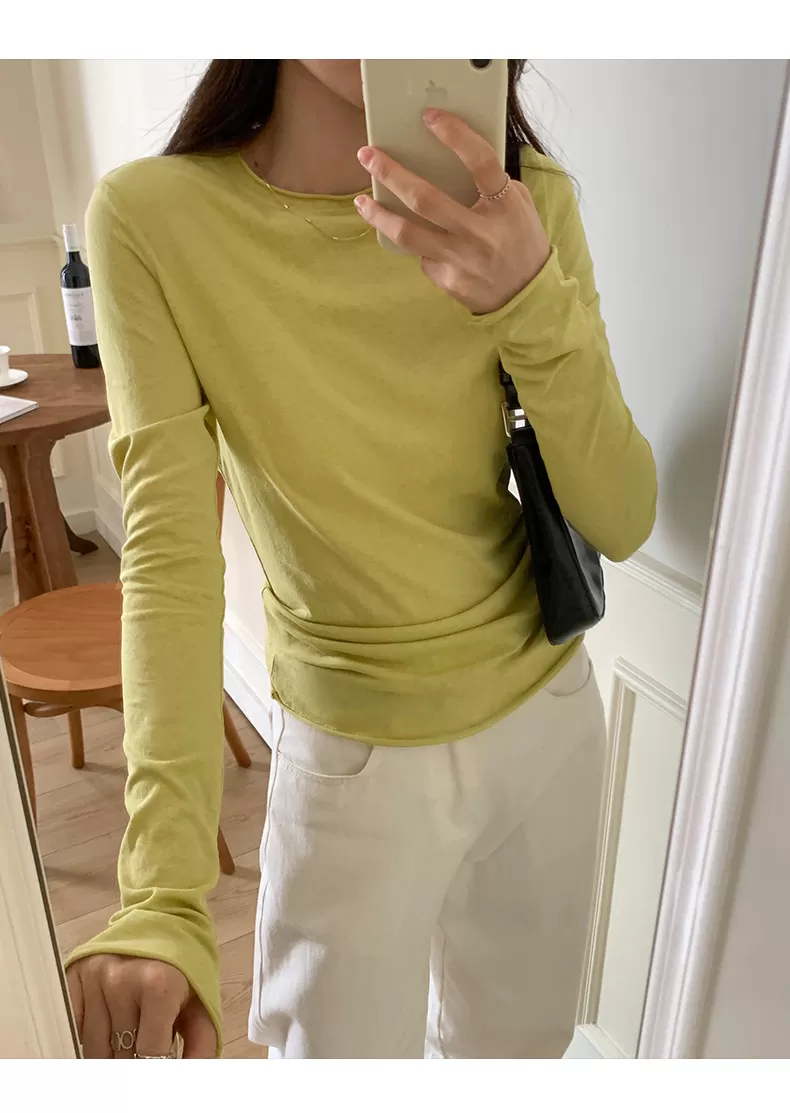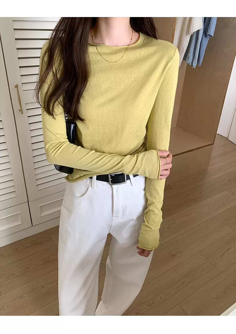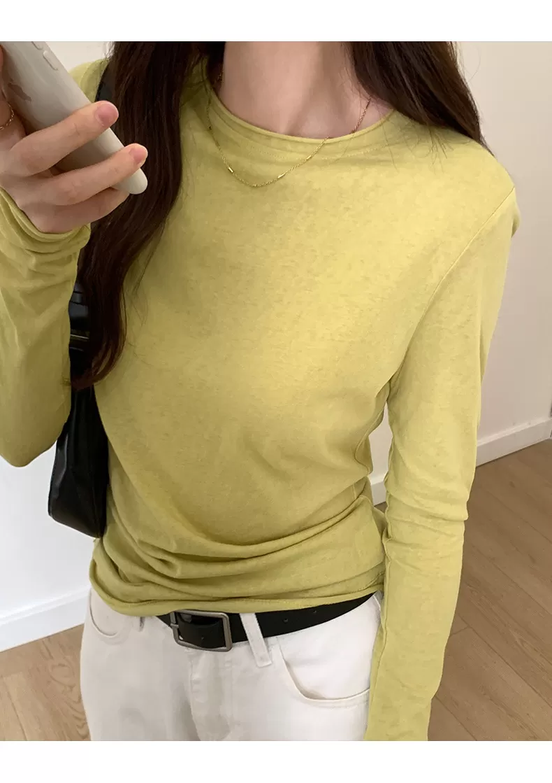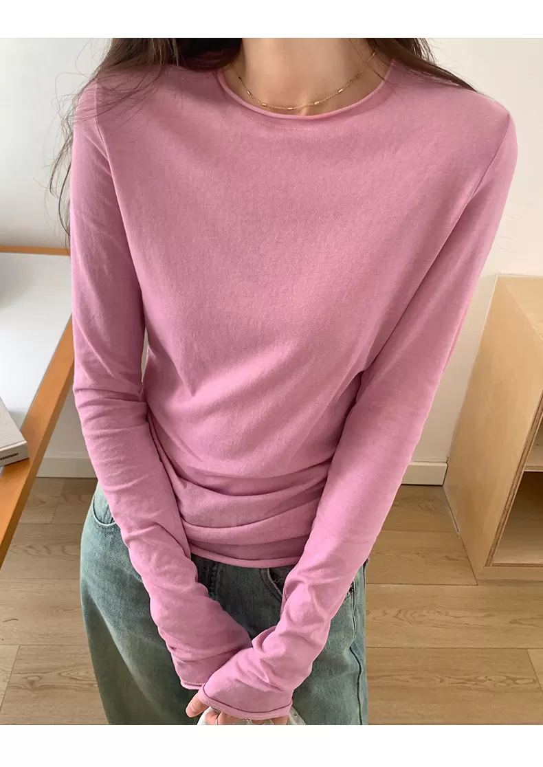 Pure Color All-matching Long Sleeve New Slim-fit Slimming Bottoming Shirt