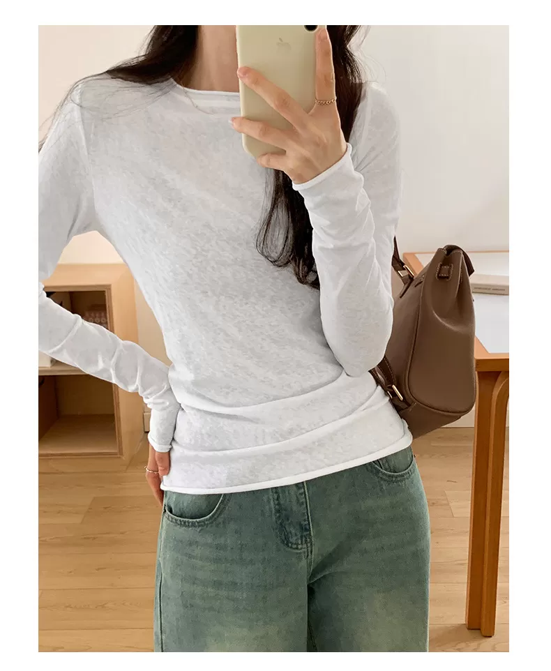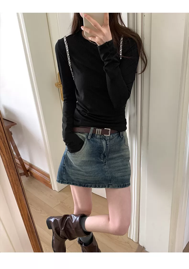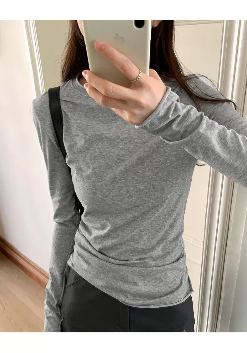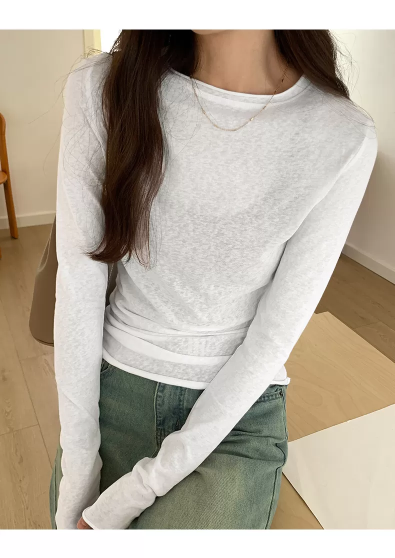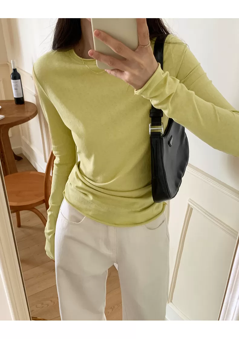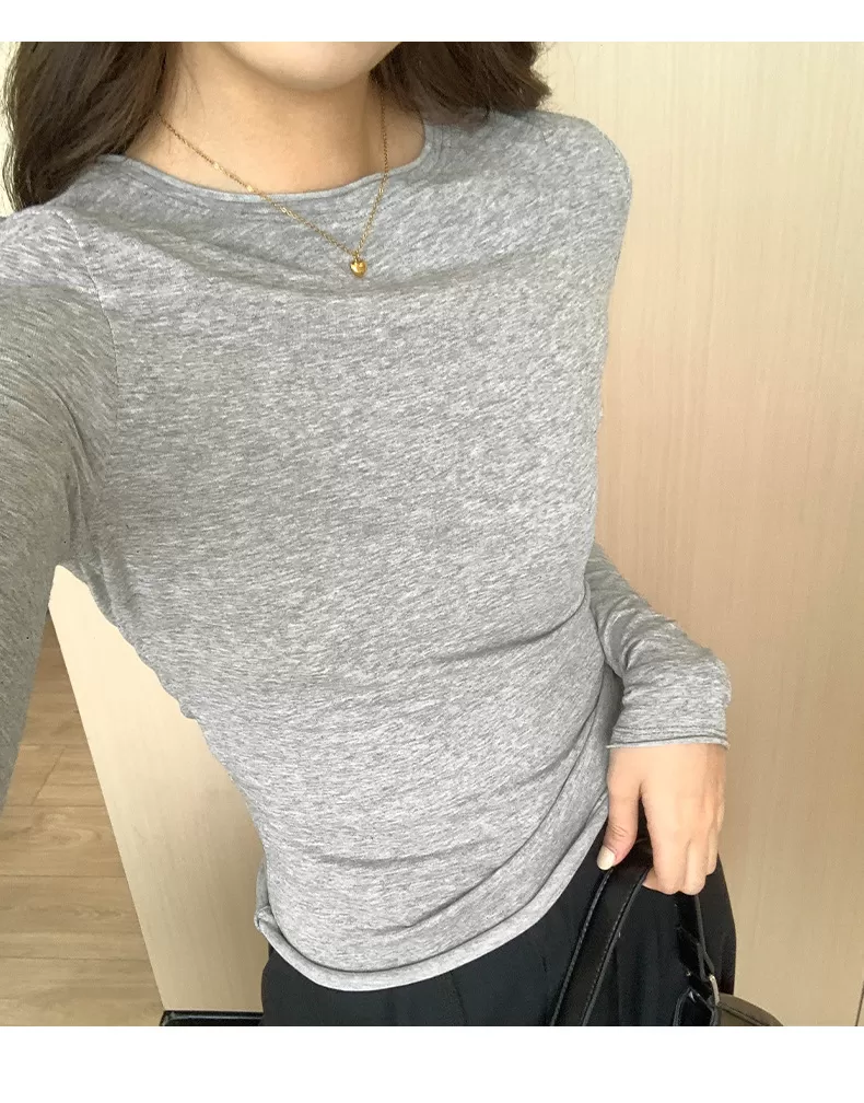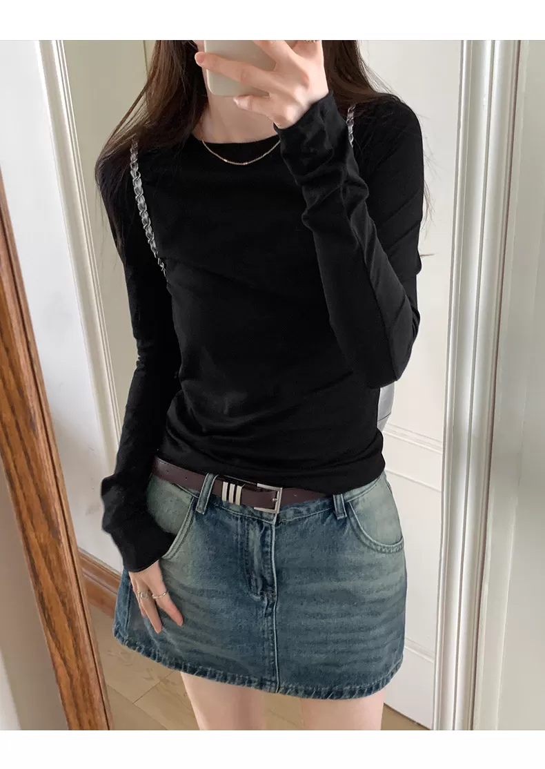 Pure Color All-matching Long Sleeve New Slim-fit Slimming Bottoming Shirt