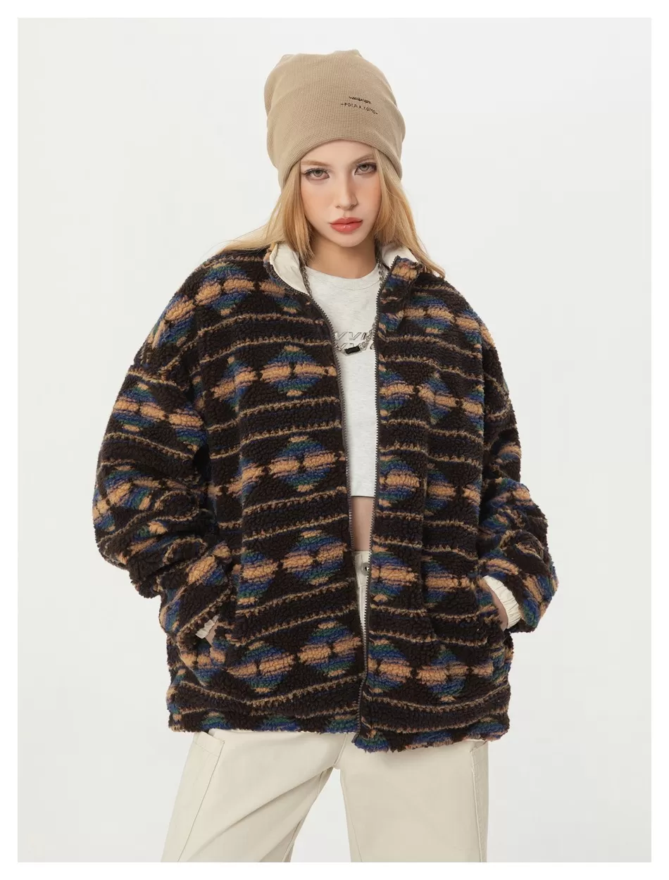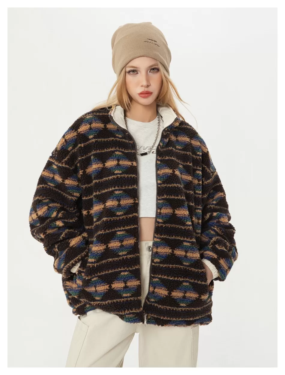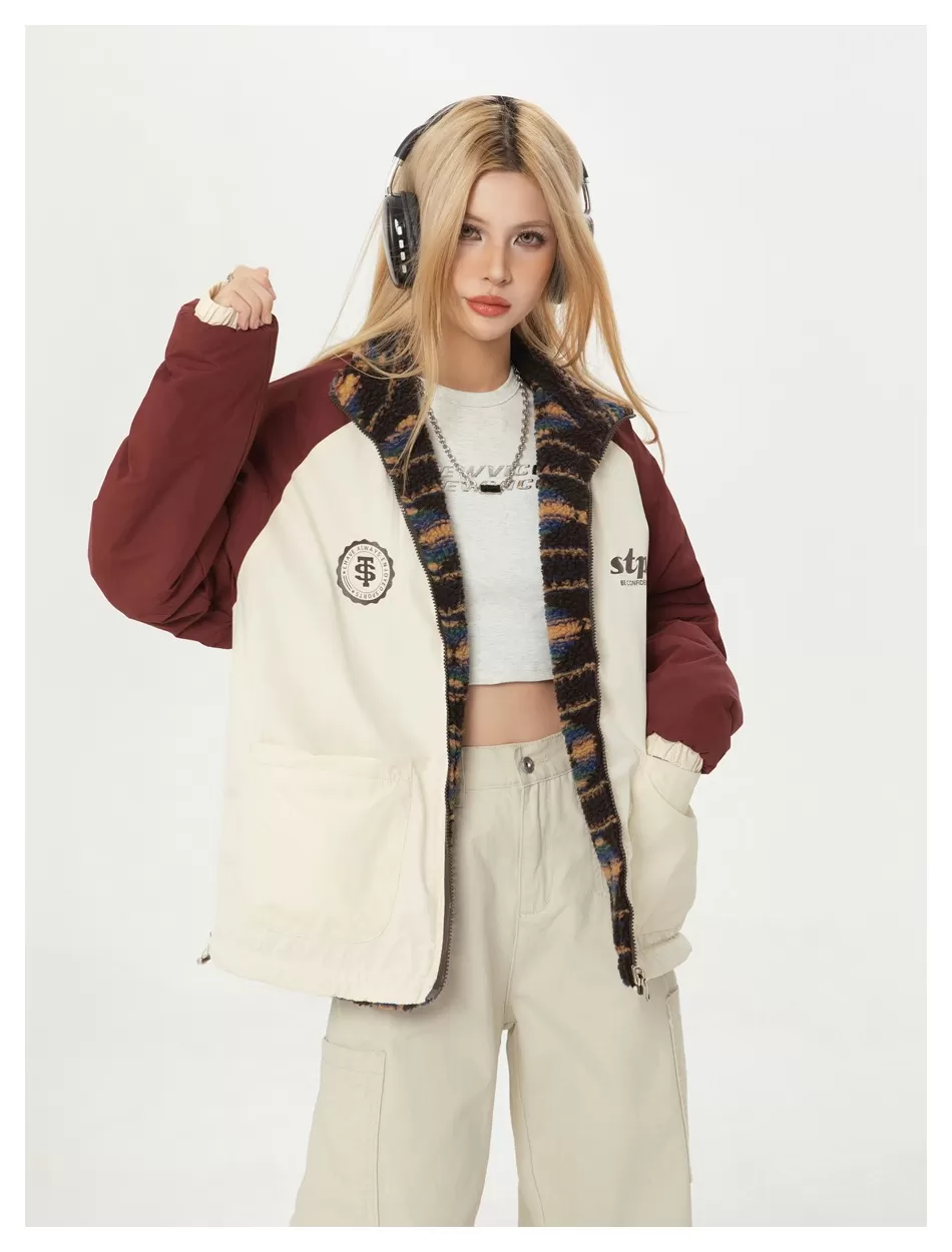 Retro Double-sided Wear Loose Couple Winter Cotton Dress Same Lamb Wool Coat