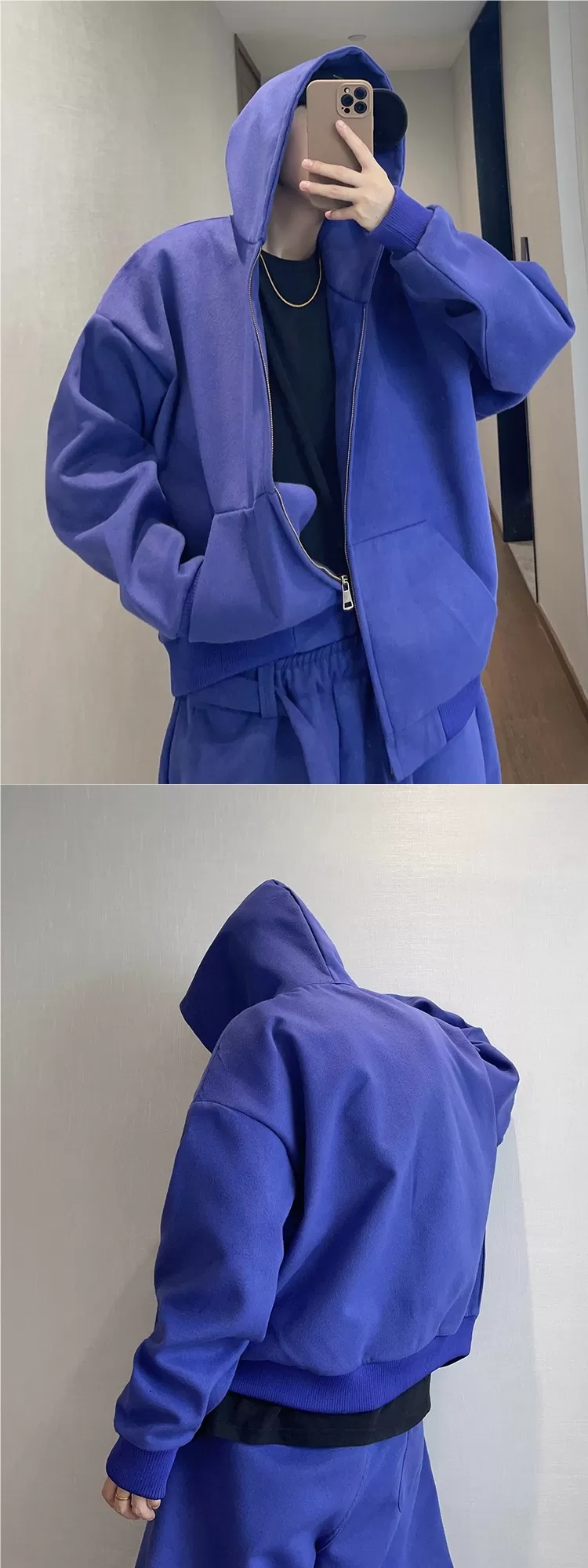 Retro Easy Matching Loose Blue Hooded Jacket Zipper Short Coat For Men Retro Easy Matching Loose Blue Hooded Jacket Zipper Short Coat For Men