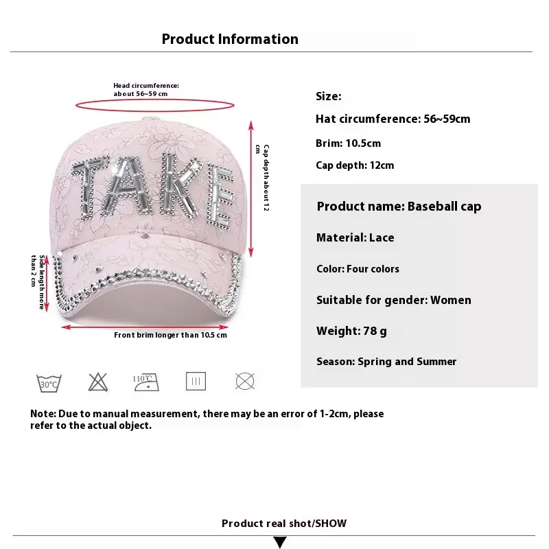 Rhinestone TAKE Women’s Baseball Cap Summer Lightweight Breathable