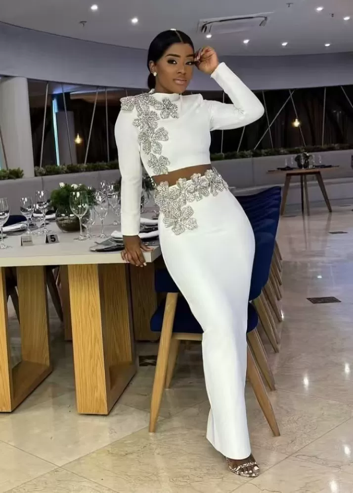 Round Neck Long Sleeve Short Top Long Skirt