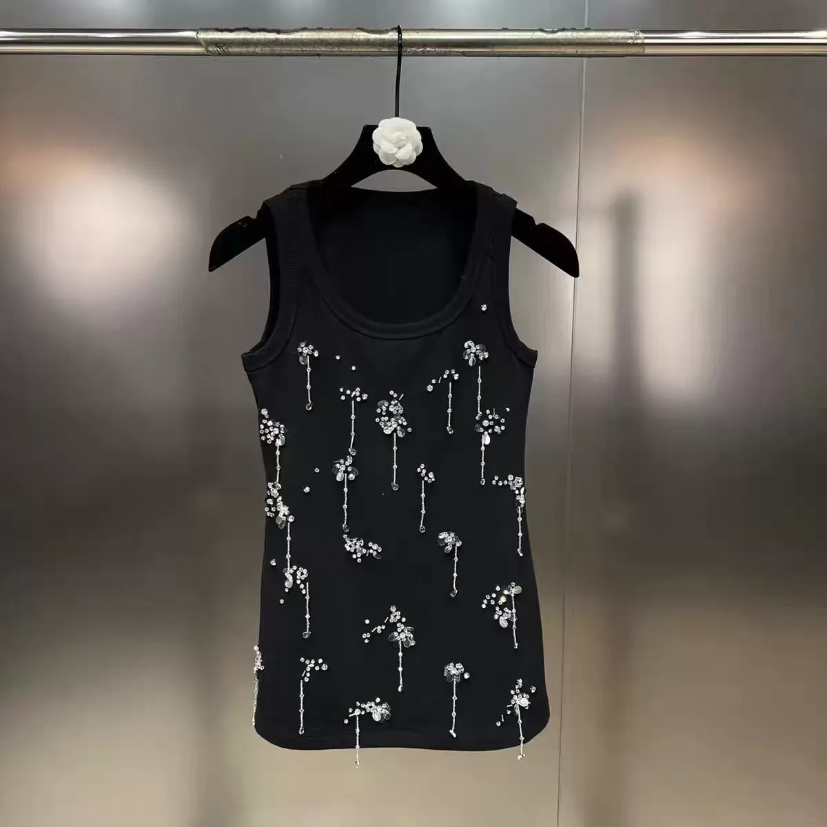 Scoop Sleeveless Diamond Nail Beads Sequins Heavy Industry Gold Style Vest Scoop Sleeveless Diamond Nail Beads Sequins Heavy Industry Gold Style Vest