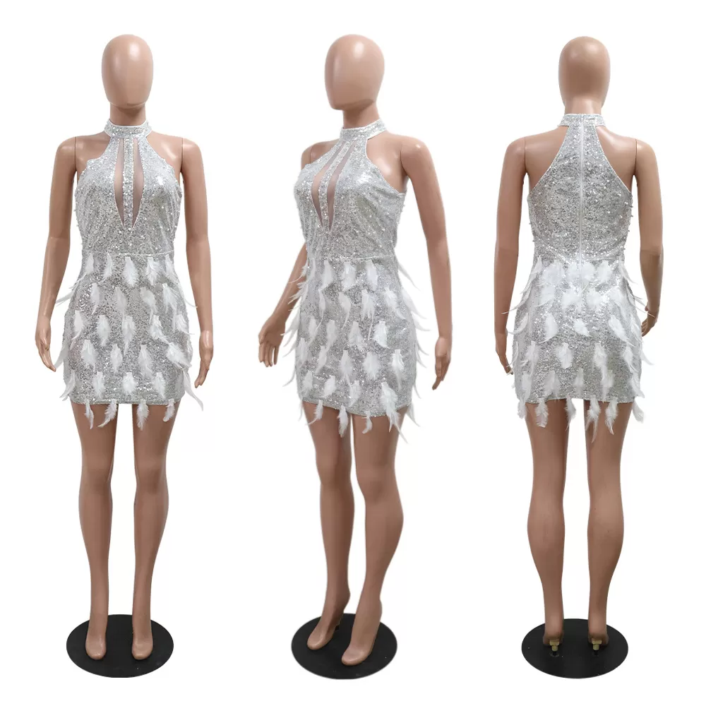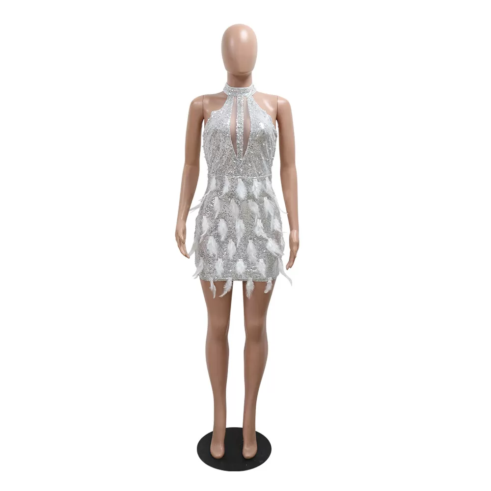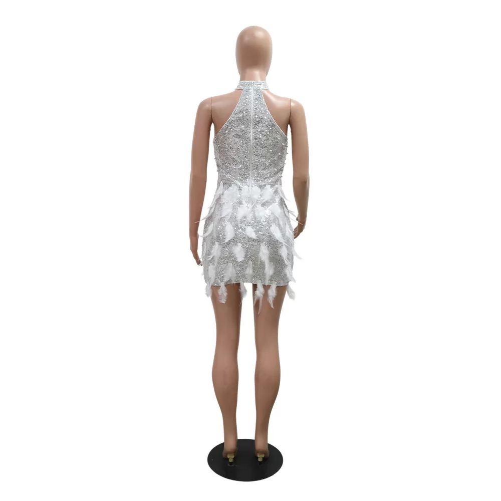 Sequined Party Evening Dress Women’s Sleeveless Sheath Skirt