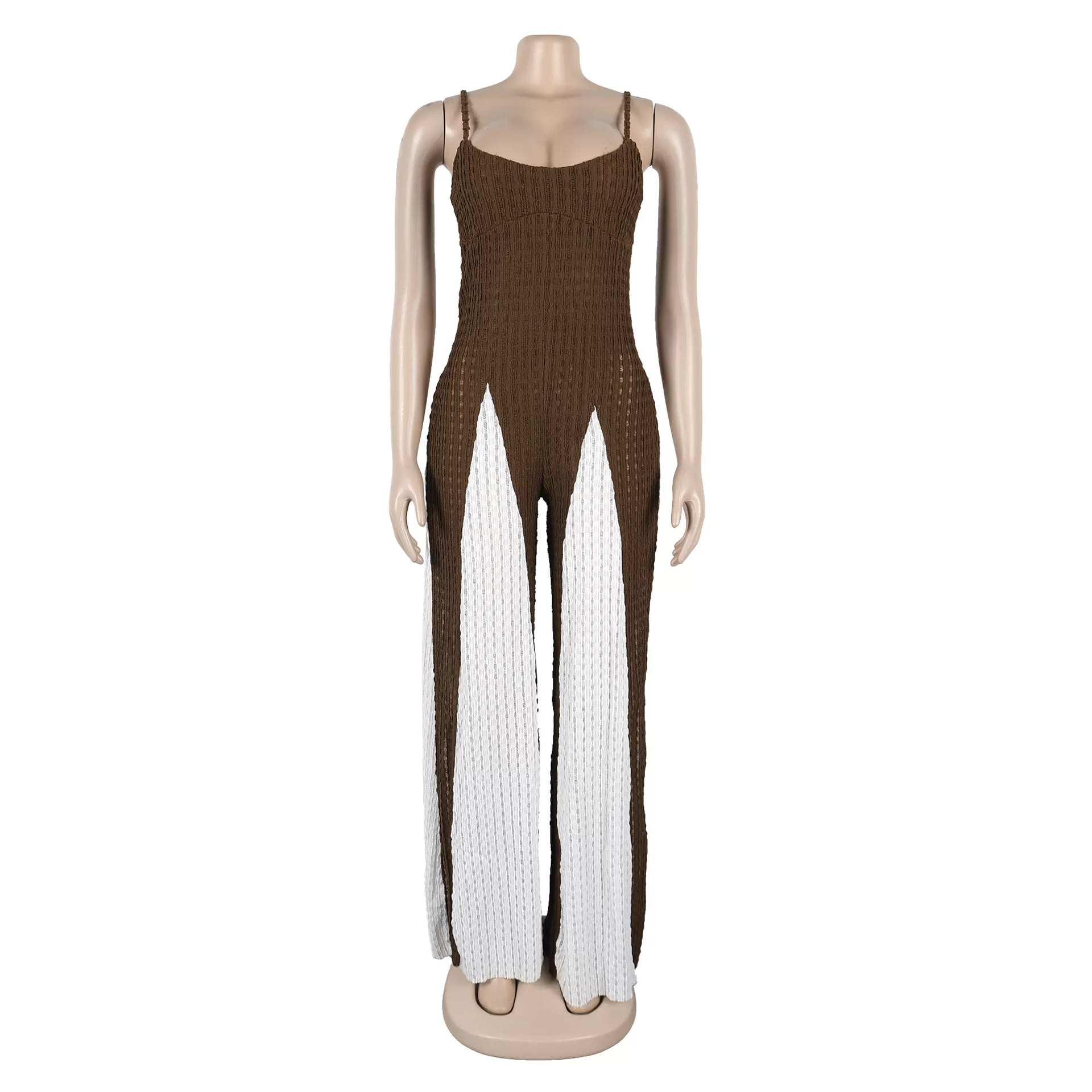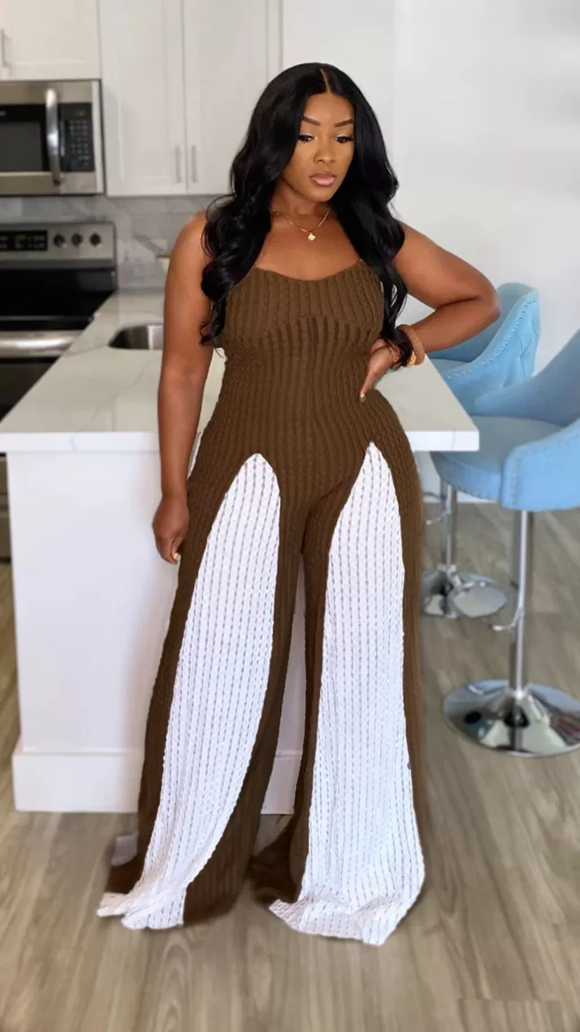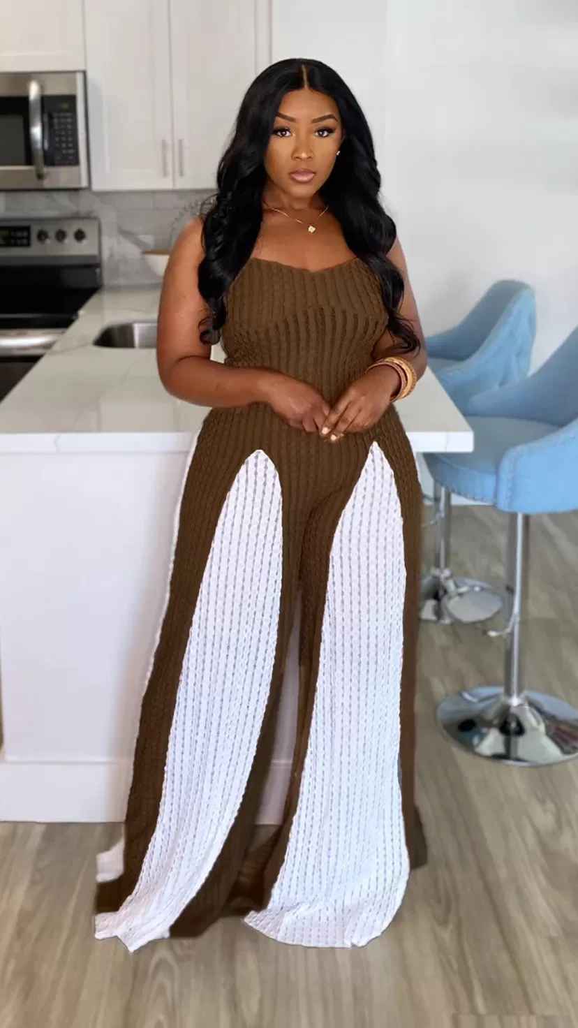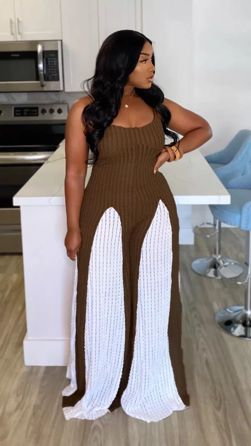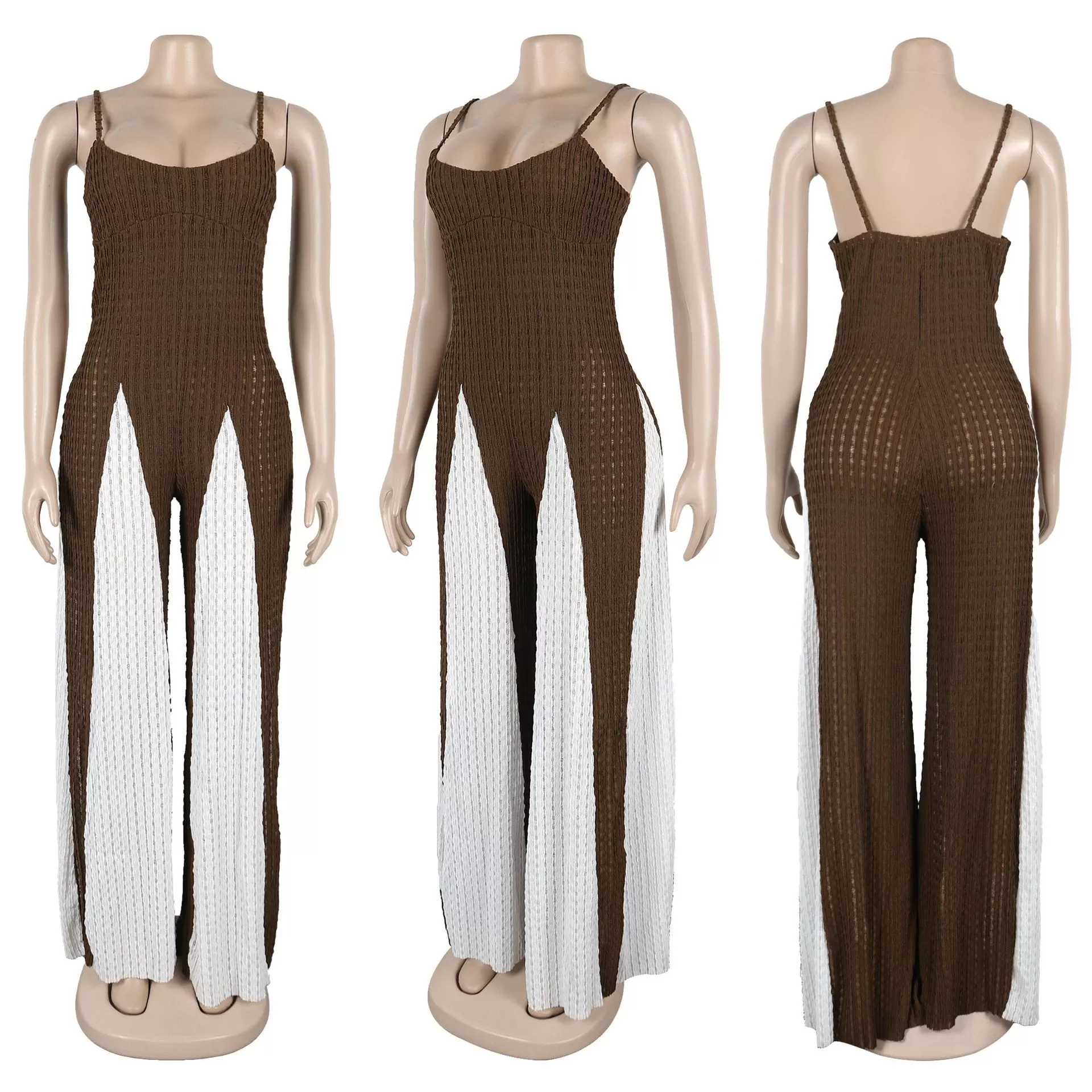 Sexy Cutout Wide Leg Knitted Sling Stitching Contrast Color Jumpsuit Sexy Cutout Wide Leg Knitted Sling Stitching Contrast Color Jumpsuit