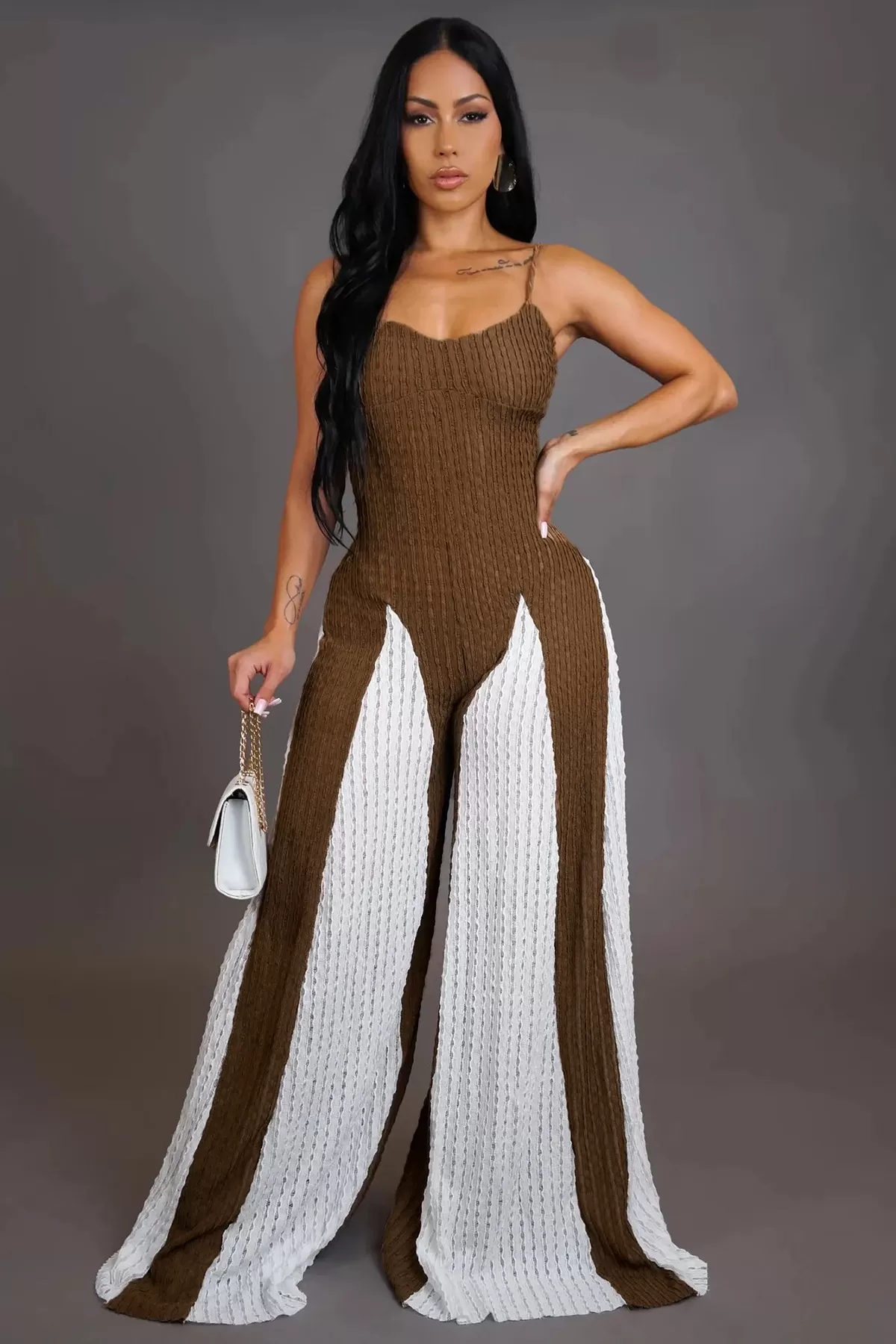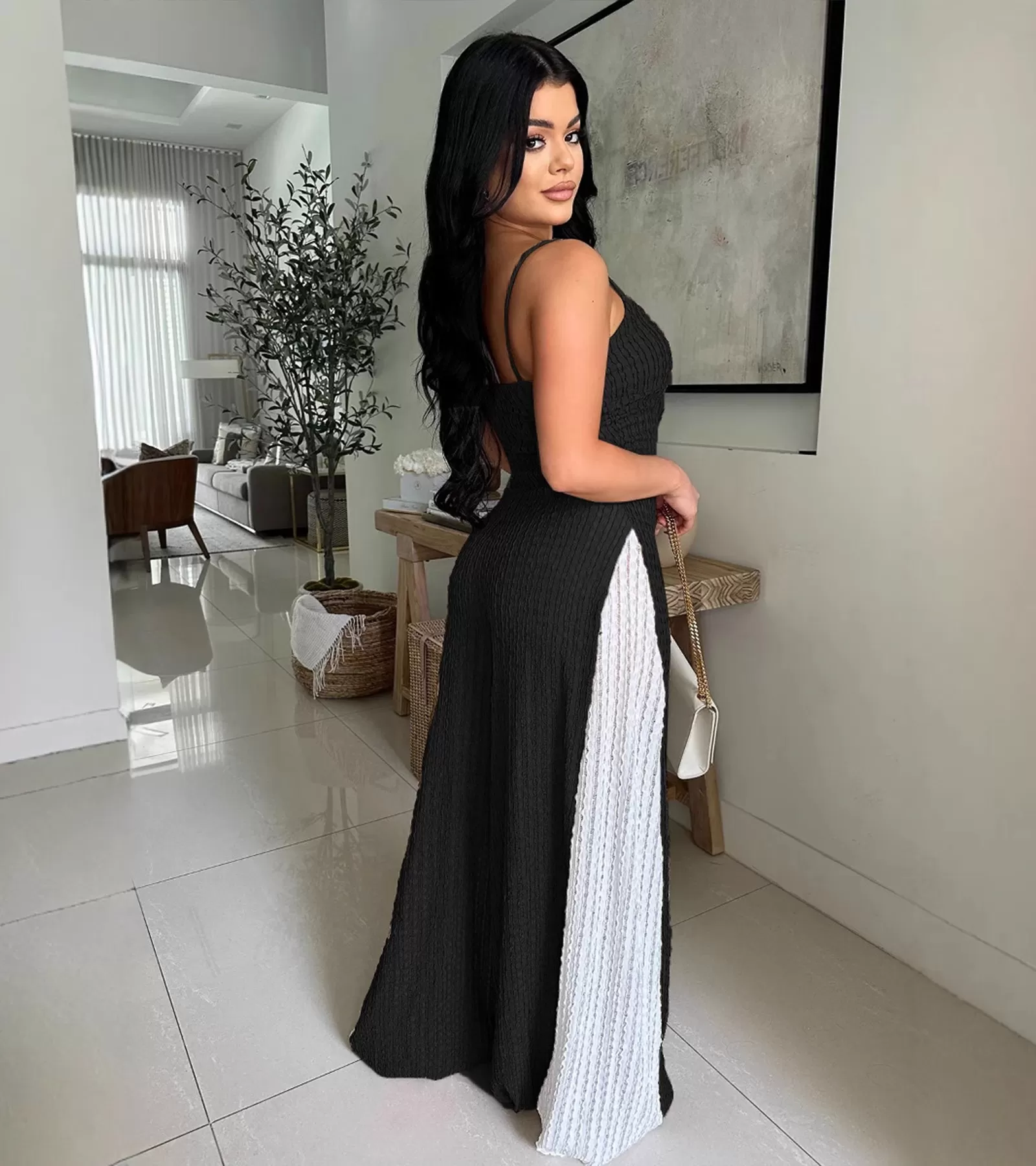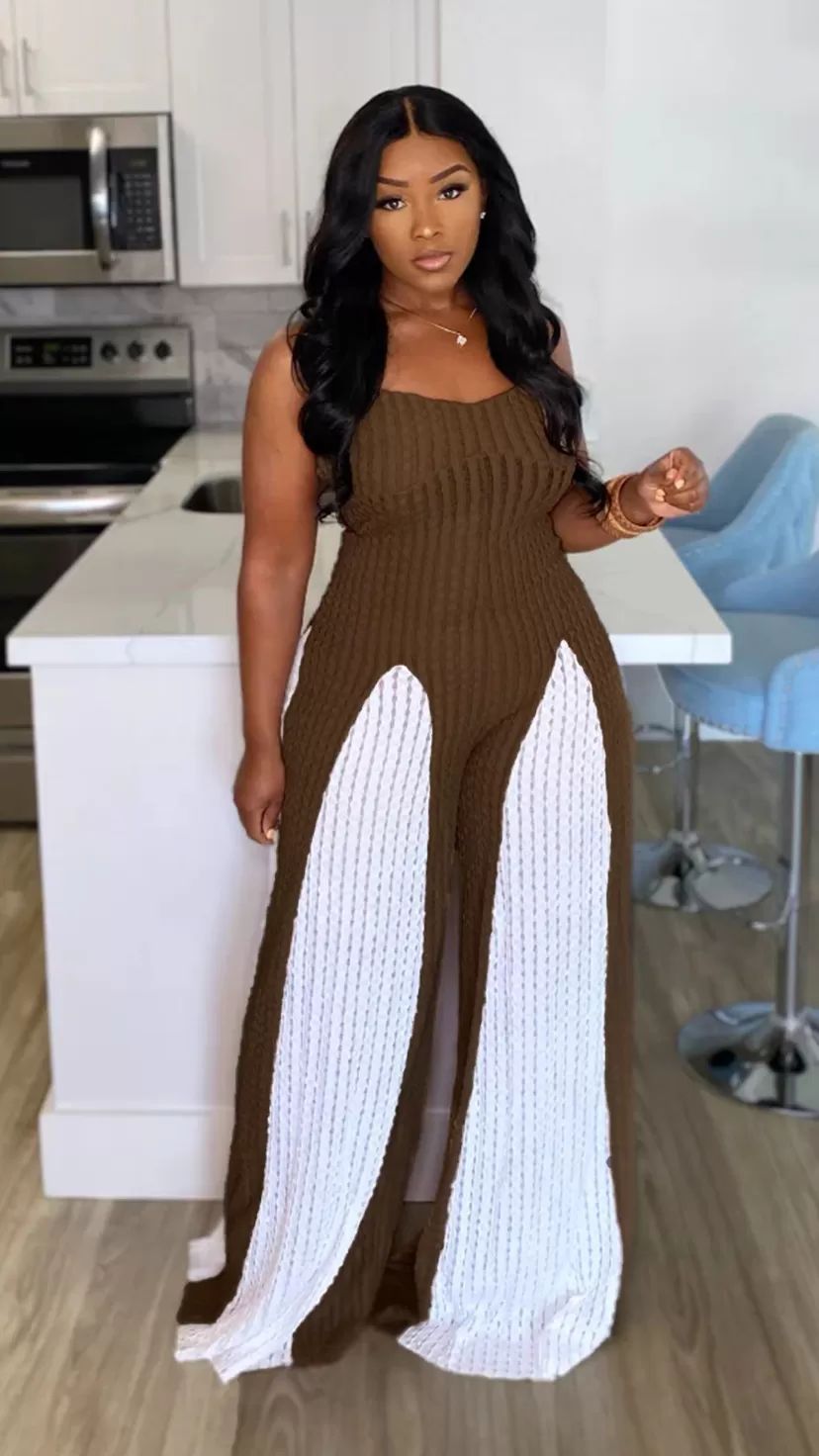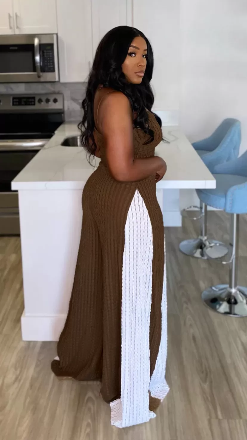 Sexy Cutout Wide Leg Knitted Sling Stitching Contrast Color Jumpsuit Sexy Cutout Wide Leg Knitted Sling Stitching Contrast Color Jumpsuit