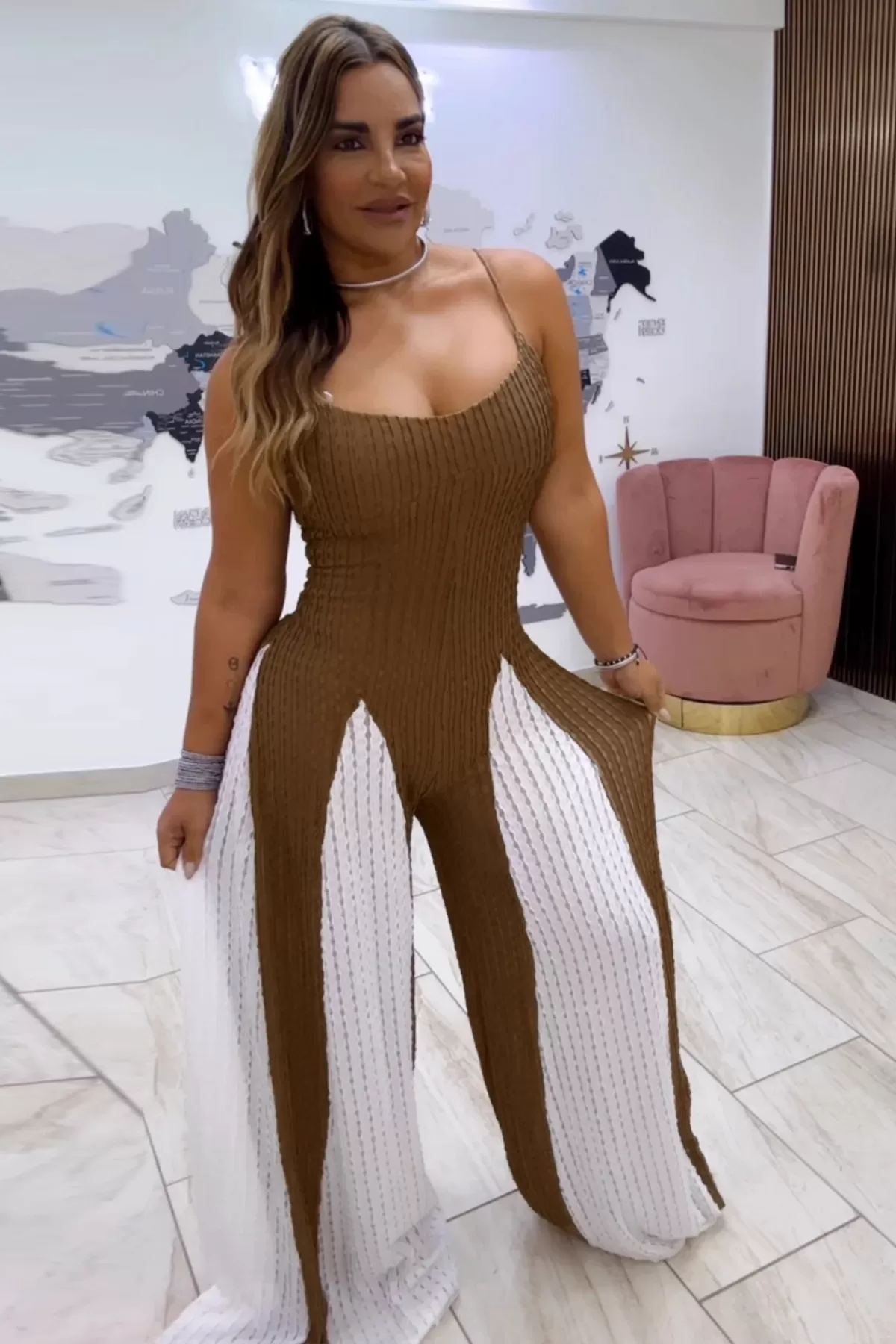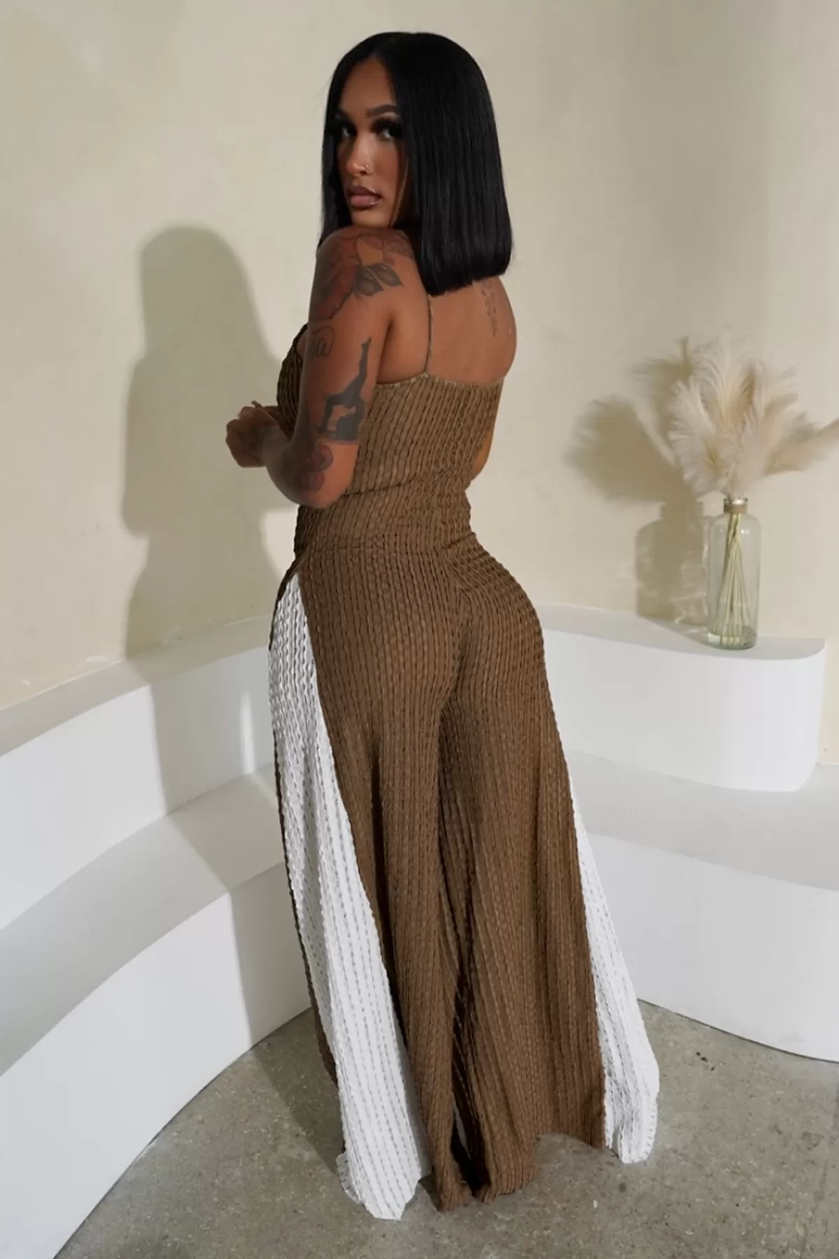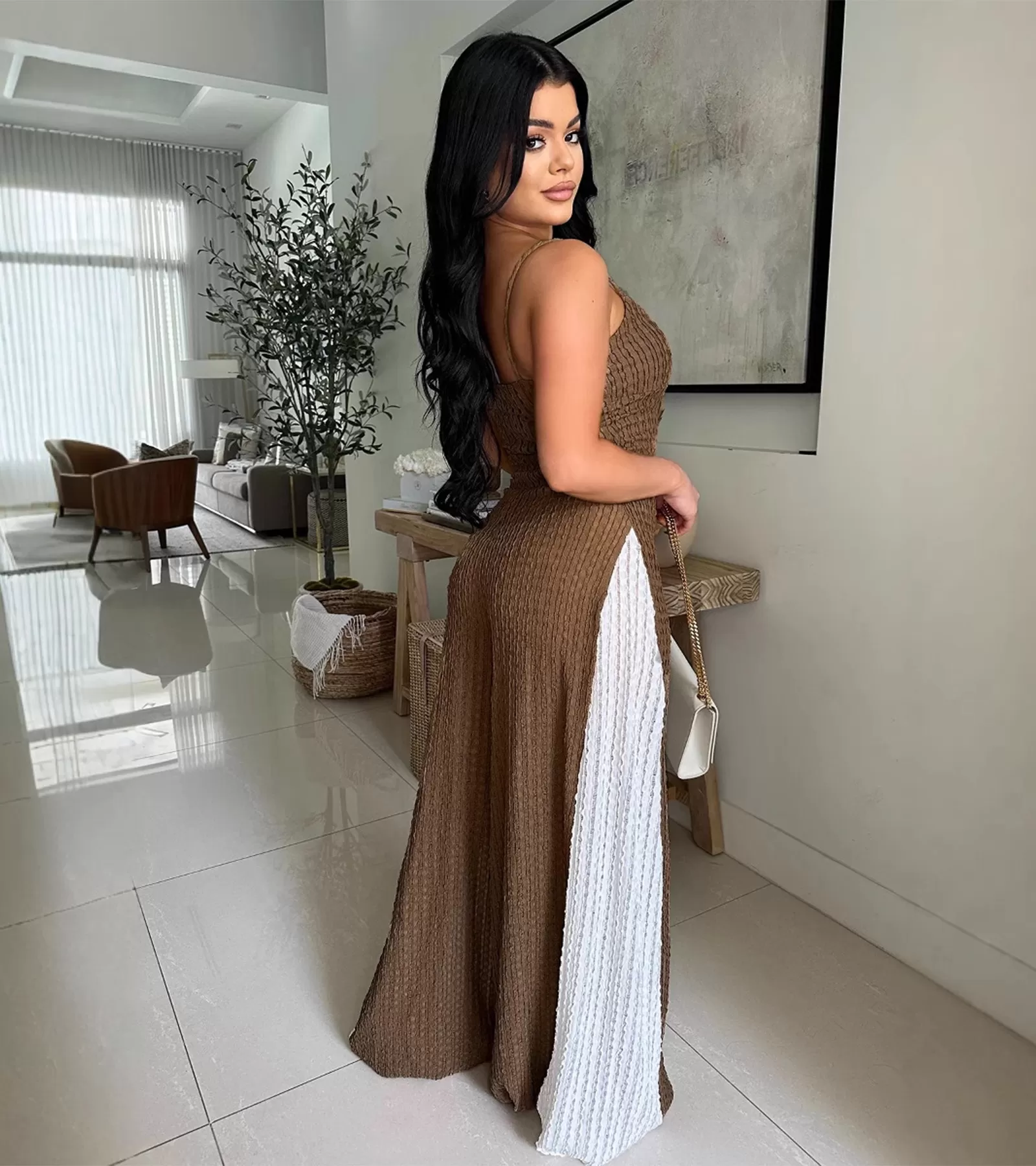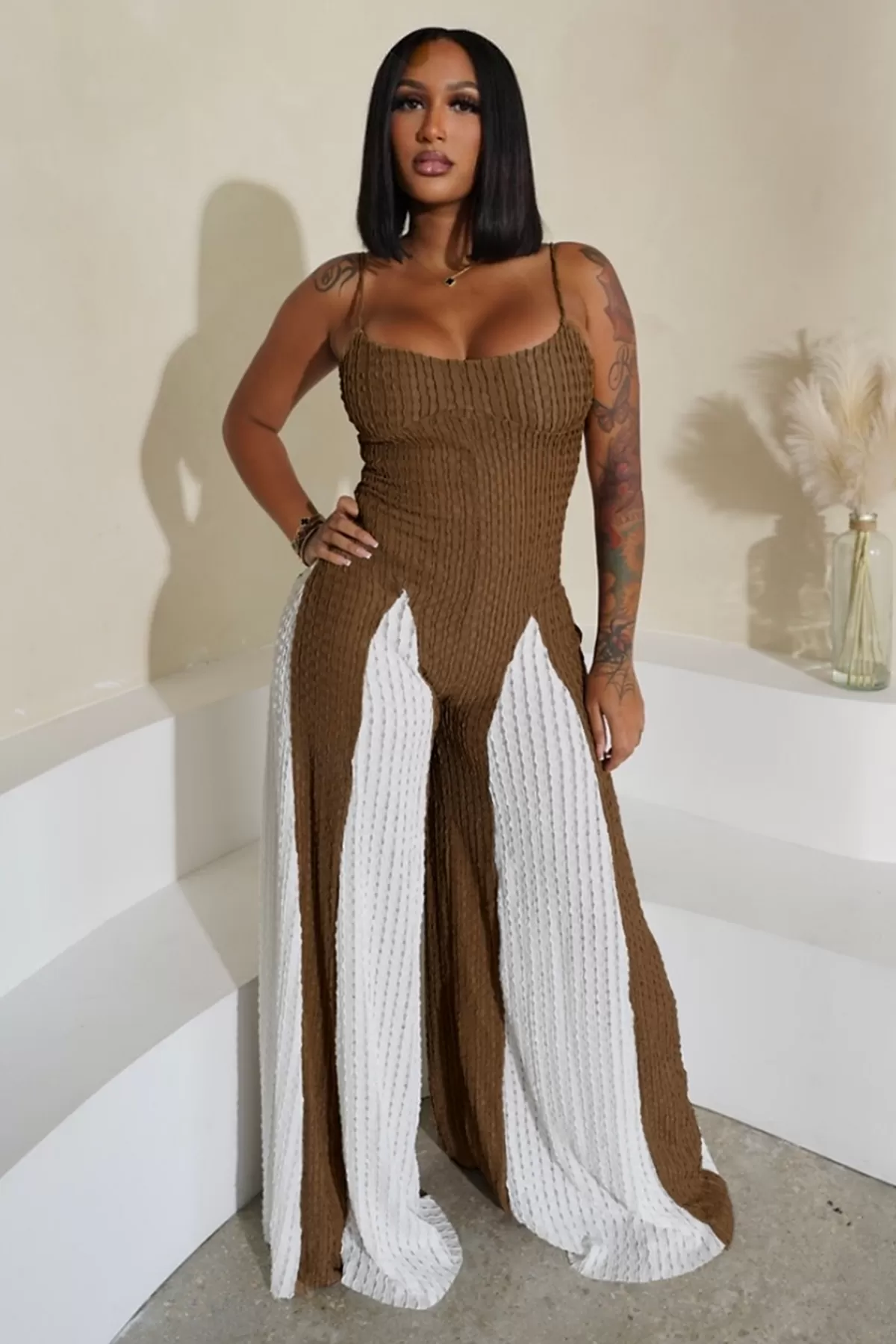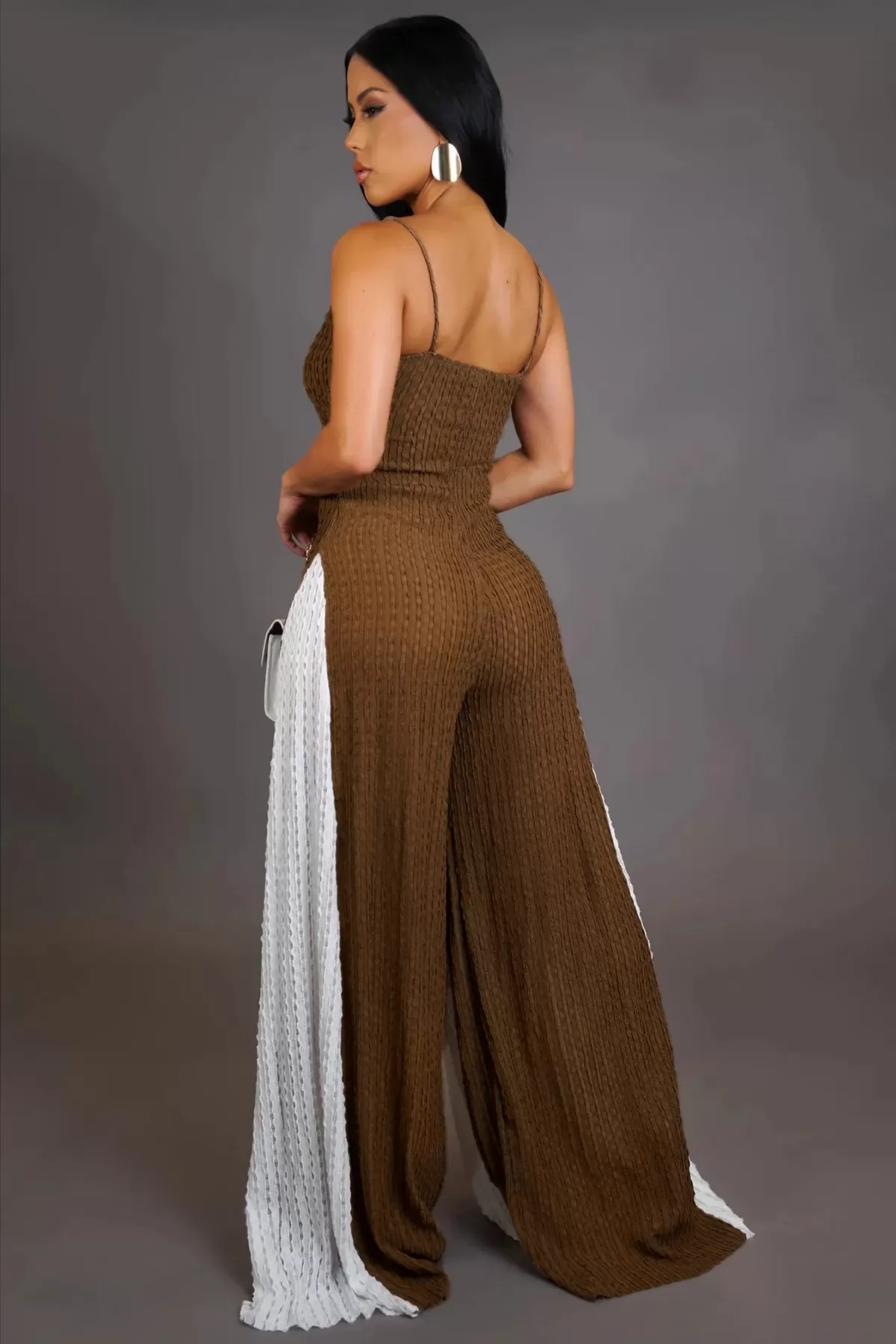 Sexy Cutout Wide Leg Knitted Sling Stitching Contrast Color Jumpsuit Sexy Cutout Wide Leg Knitted Sling Stitching Contrast Color Jumpsuit