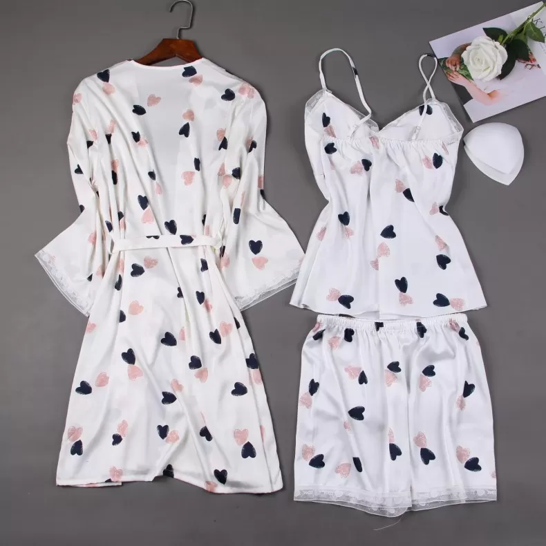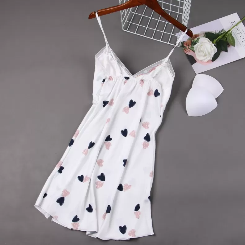 Silk Slip Nightdress Cute Printed Pajamas Suit Silk Slip Nightdress Cute Printed Pajamas Suit