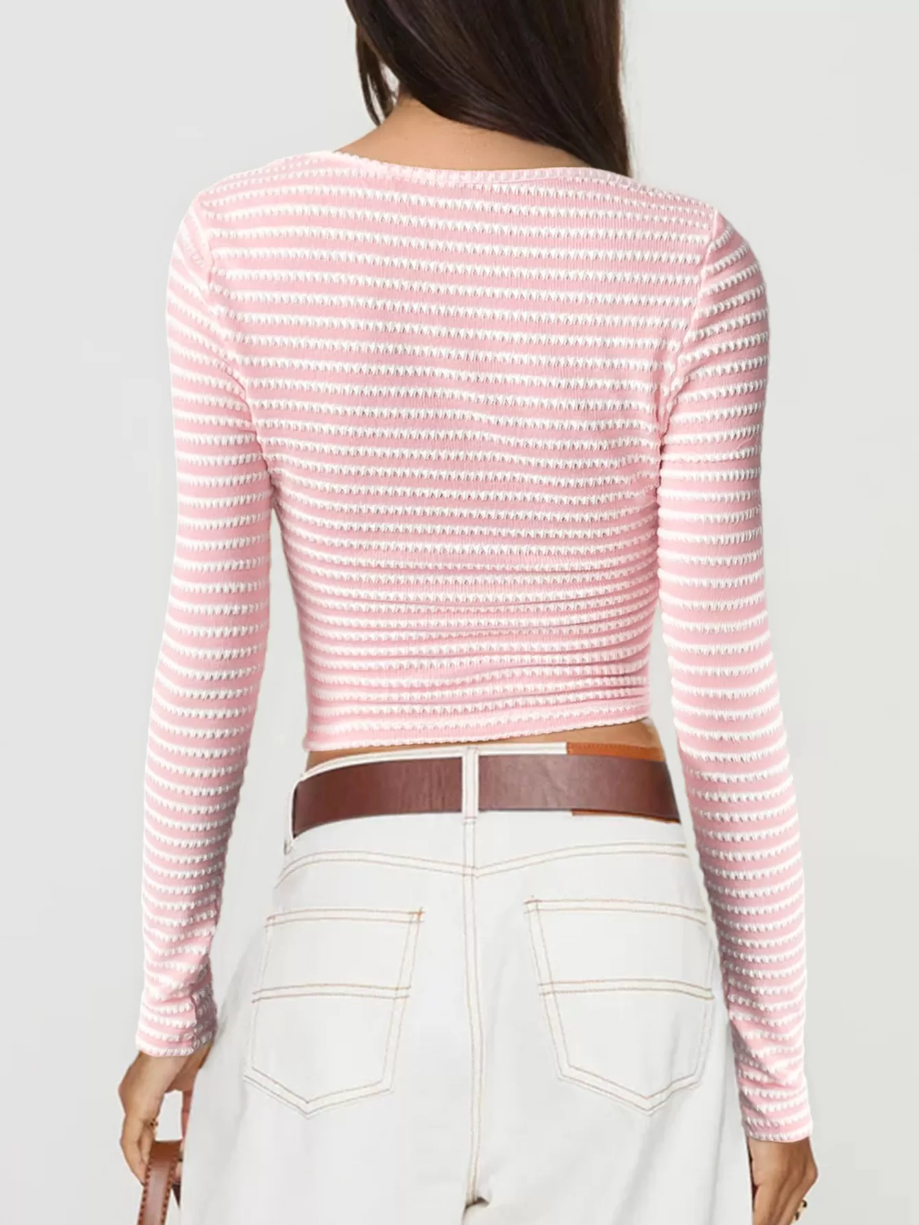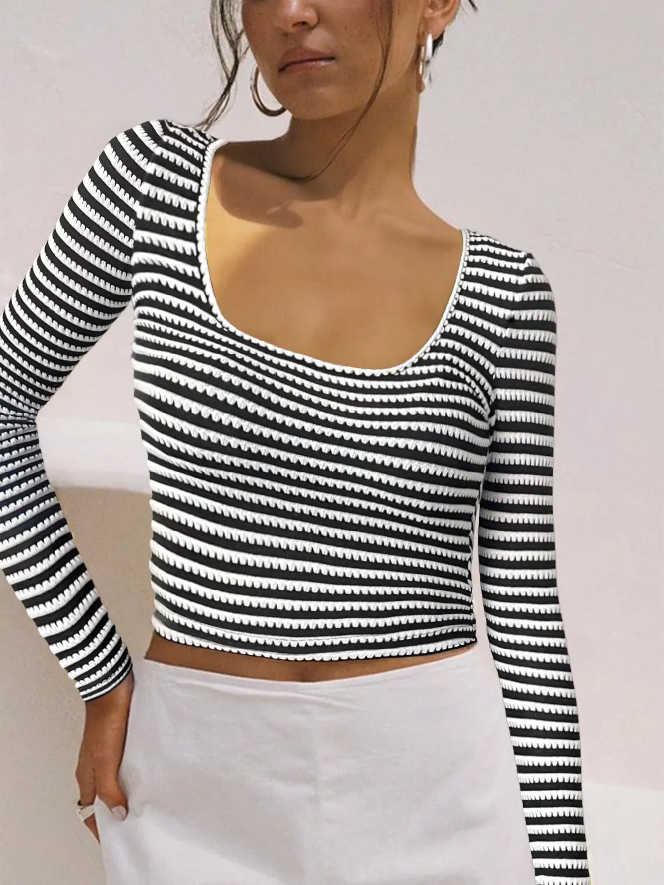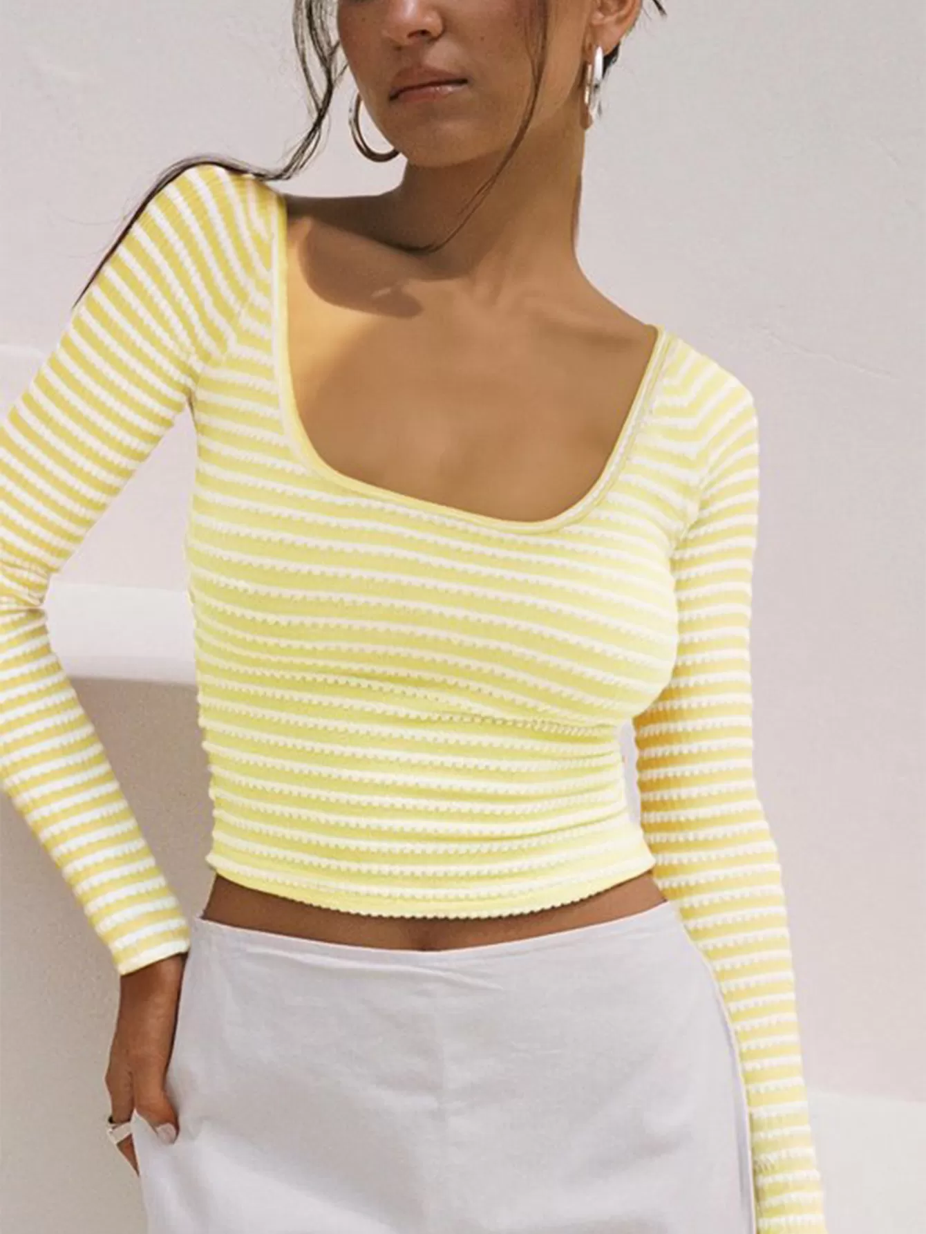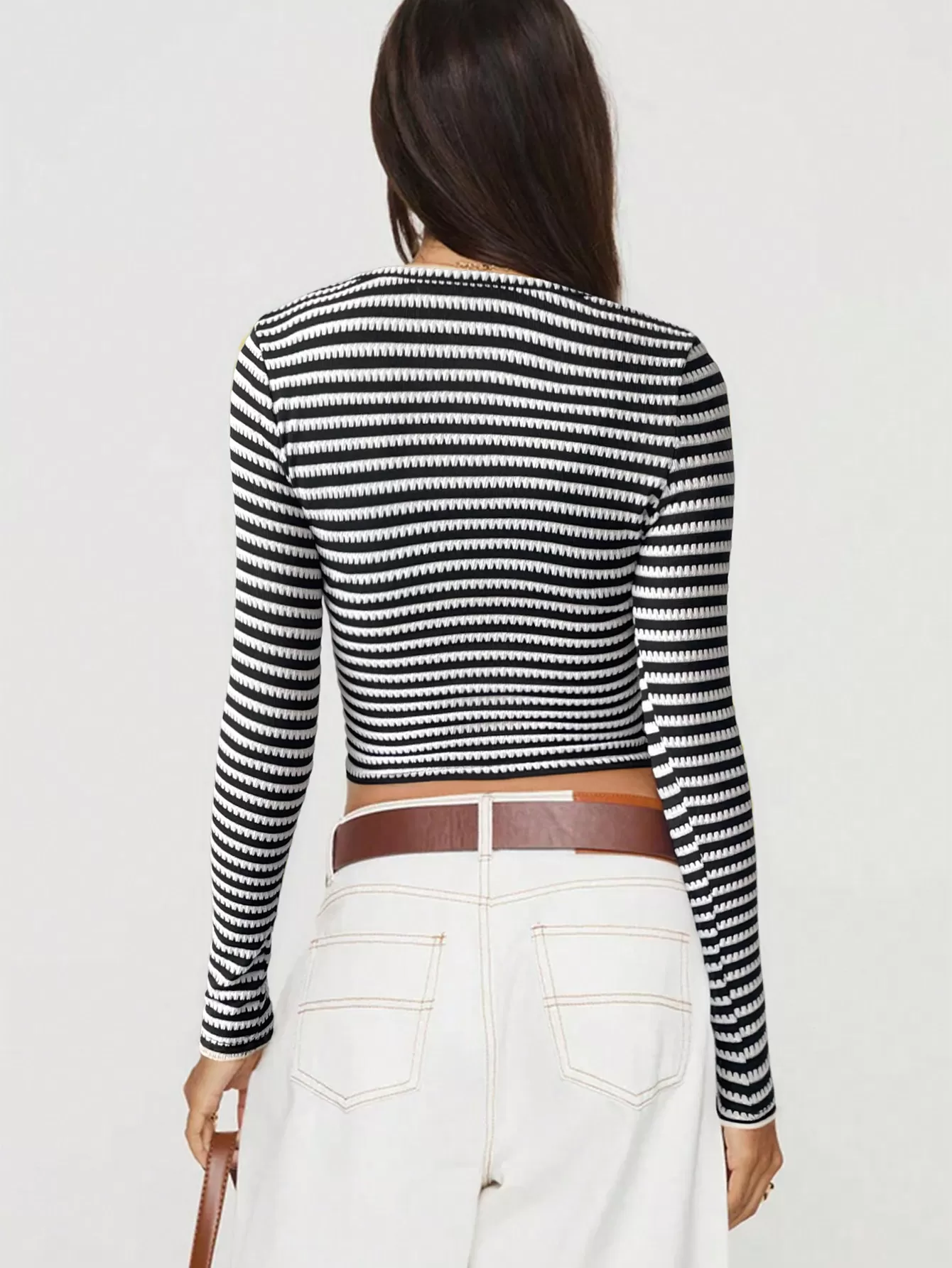 Slim-fit Two-tone Striped Long-sleeved Knitted T-shirt