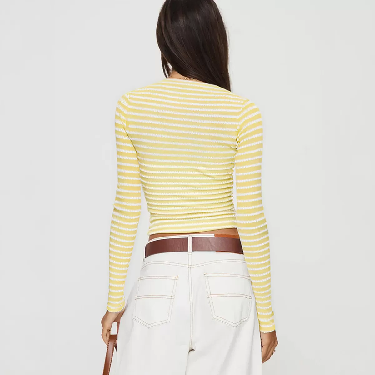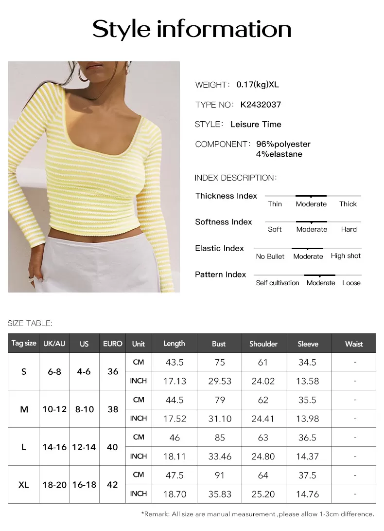 Slim-fit Two-tone Striped Long-sleeved Knitted T-shirt Slim-fit Two-tone Striped Long-sleeved Knitted T-shirt