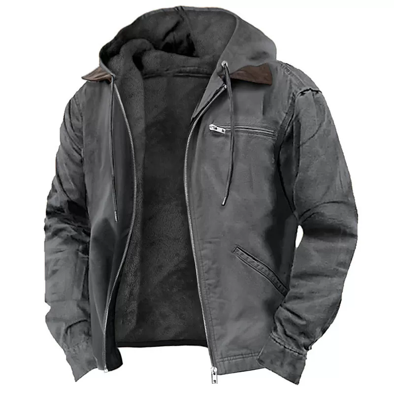 Solid Color Hooded Casual Men's Fleece Zipper Pocket Jacket Coat Solid Color Hooded Casual Men's Fleece Zipper Pocket Jacket Coat