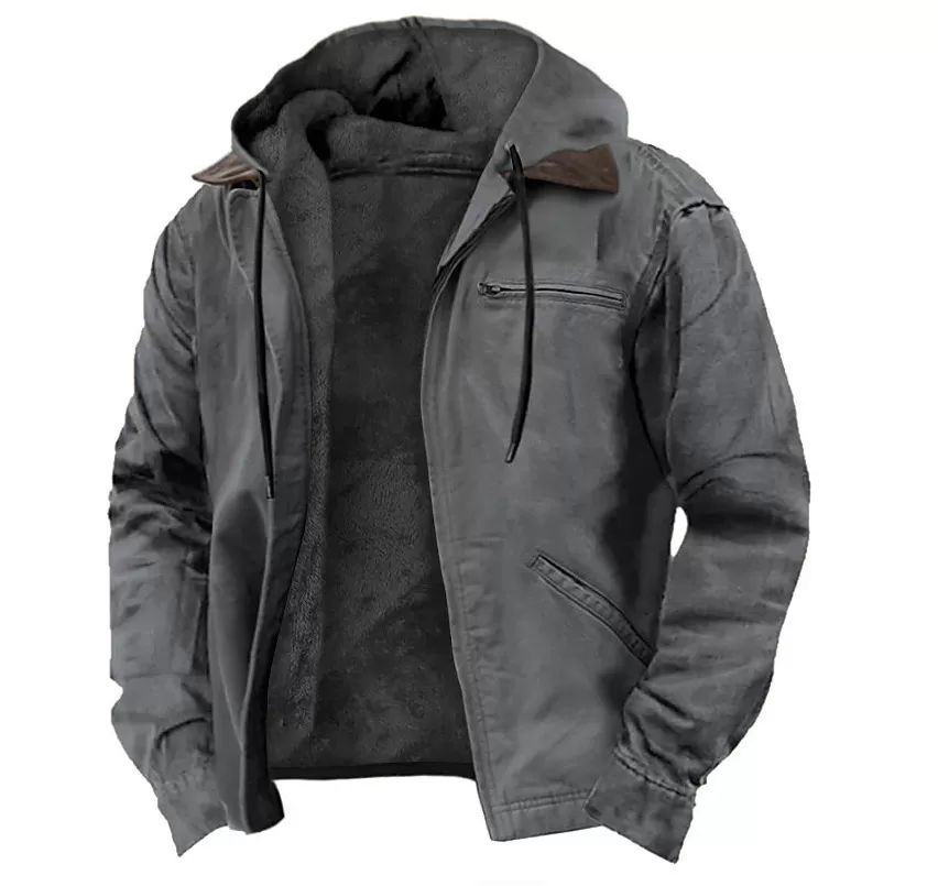 Solid Color Hooded Casual Men's Fleece Zipper Pocket Jacket Coat Solid Color Hooded Casual Men's Fleece Zipper Pocket Jacket Coat