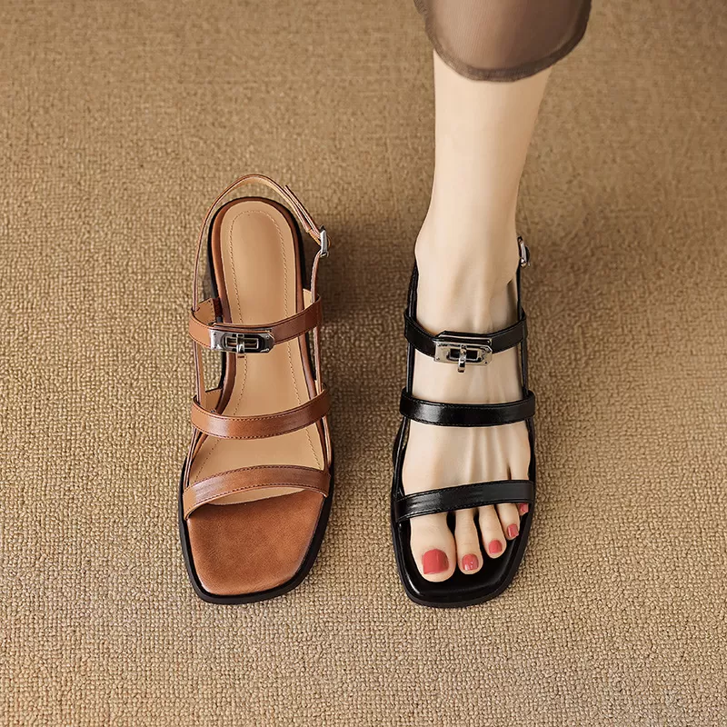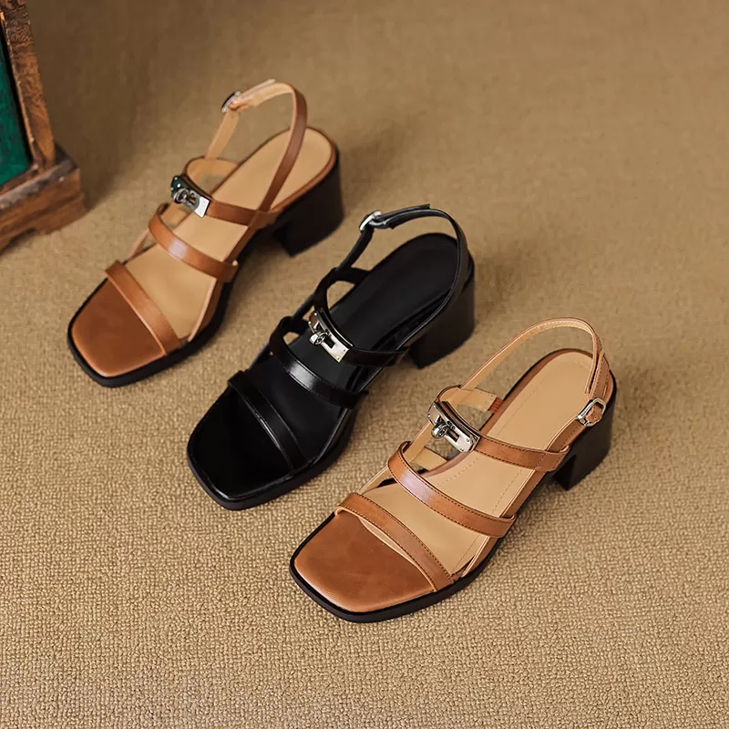 Square Toe Open Toe Fairy Style High Heel Shoes With Middle Heel