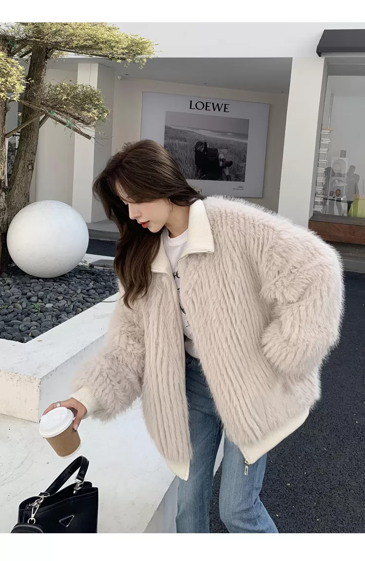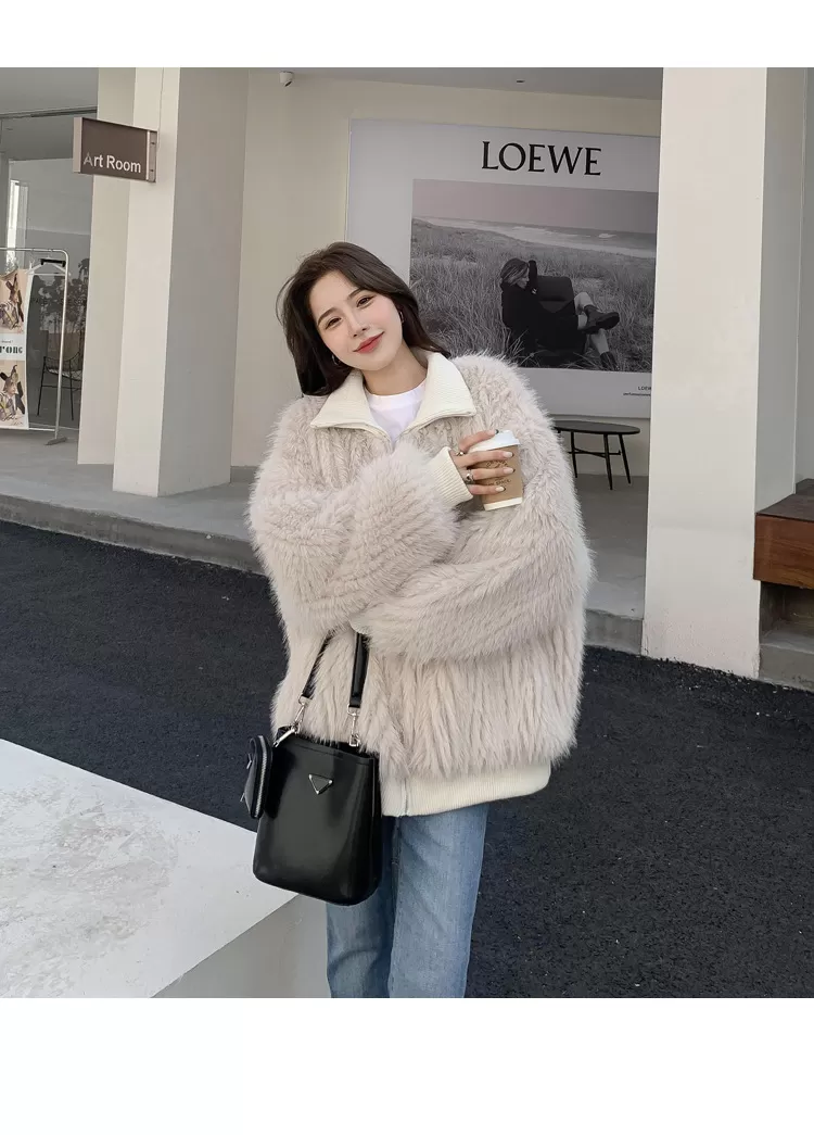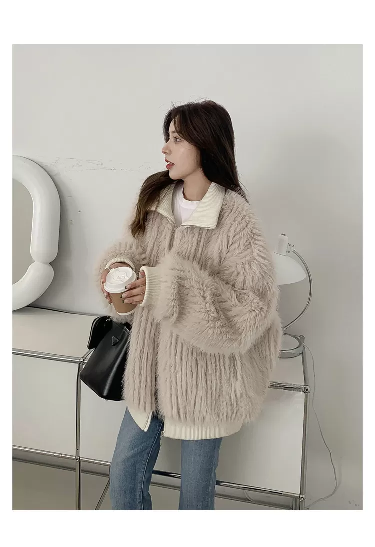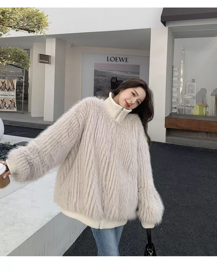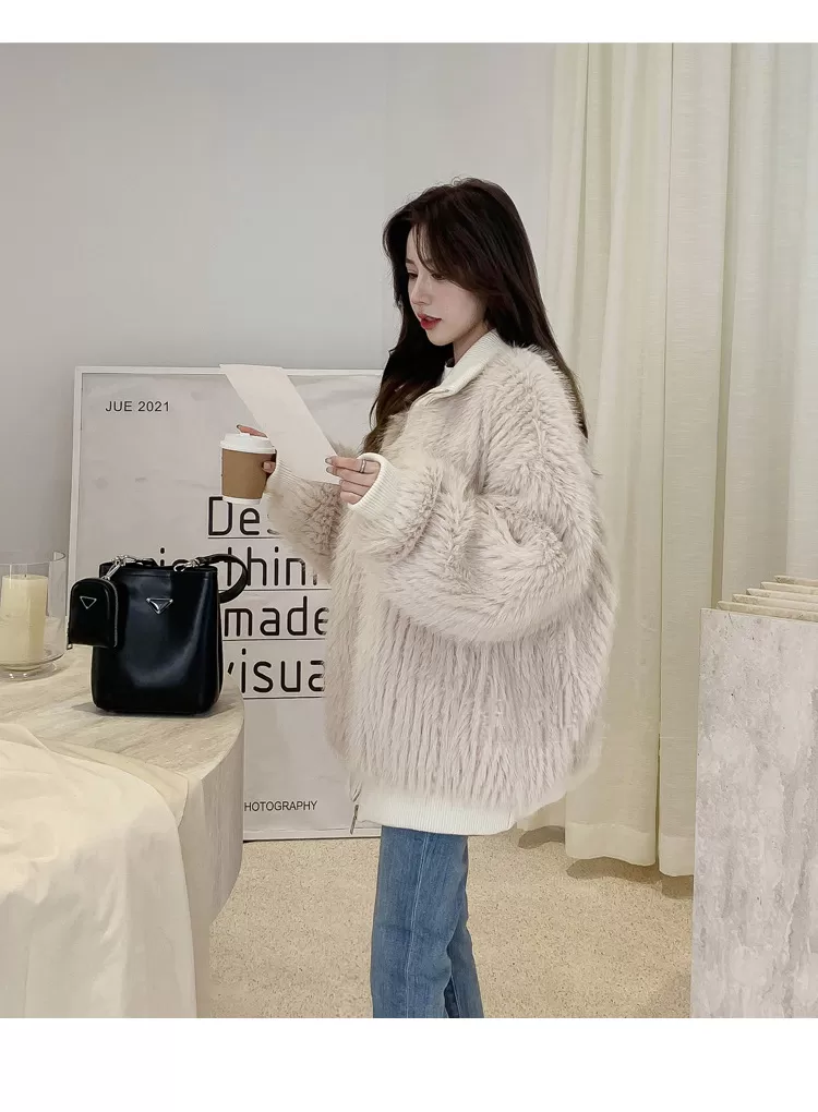 Stand Collar Vertical Bar Fox Ditch Faux Fur Coat Stand Collar Vertical Bar Fox Ditch Faux Fur Coat