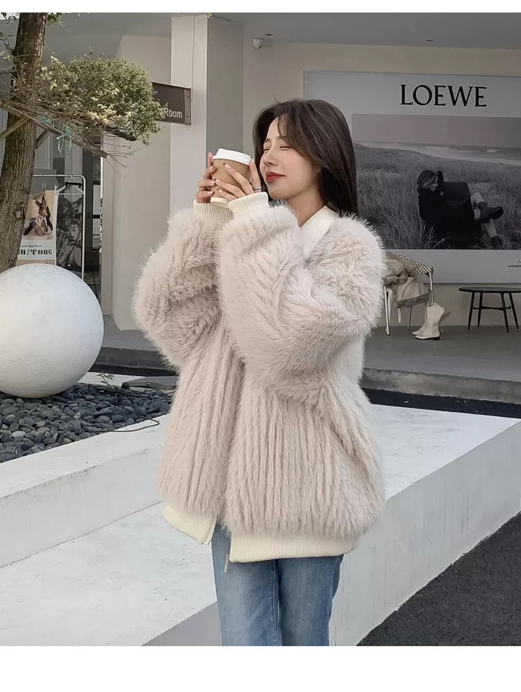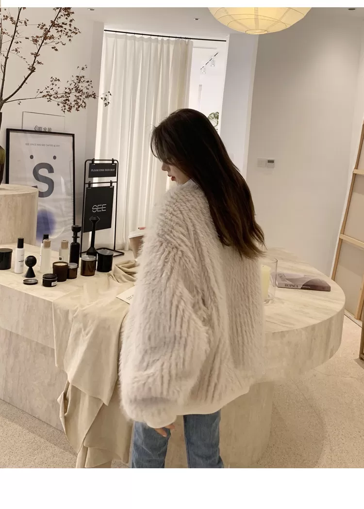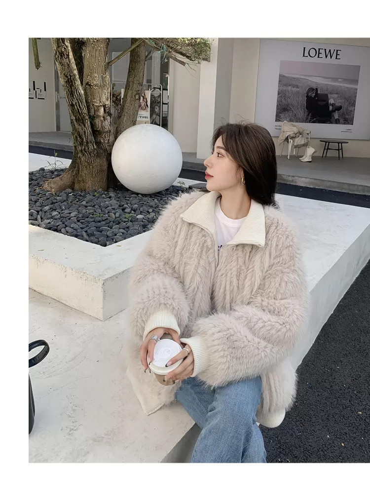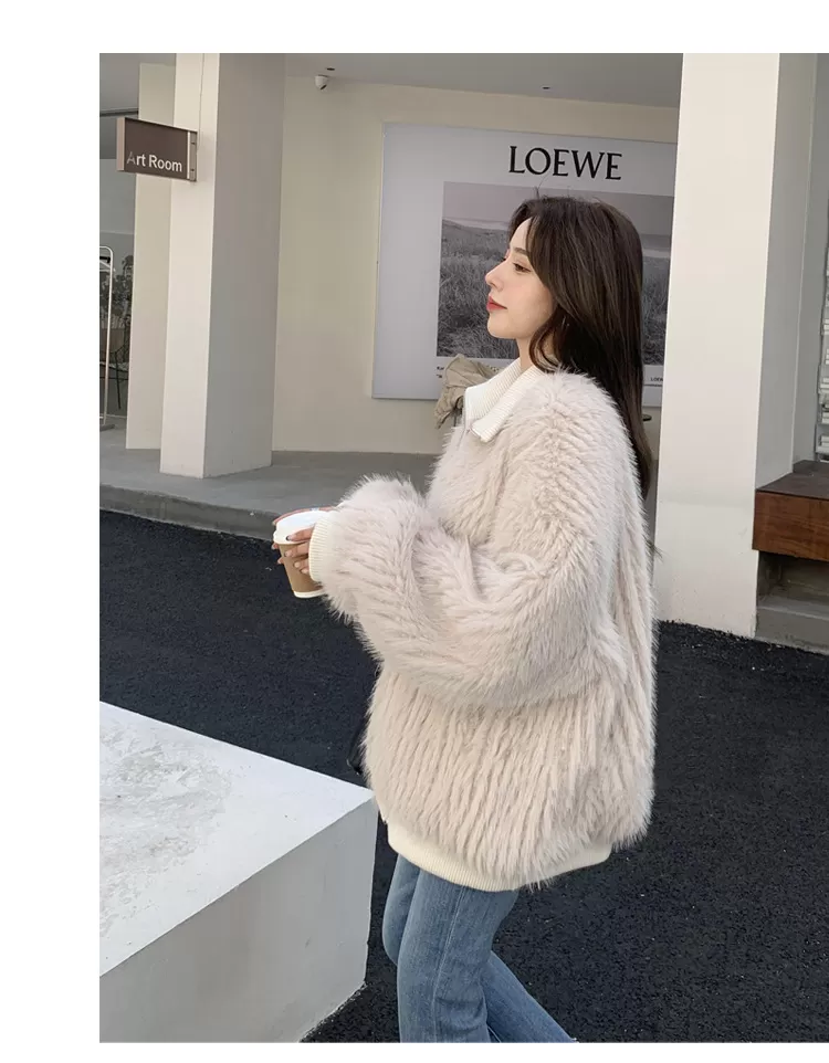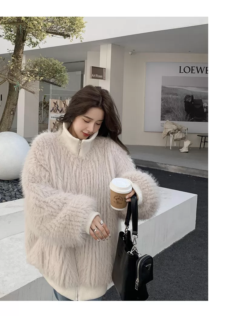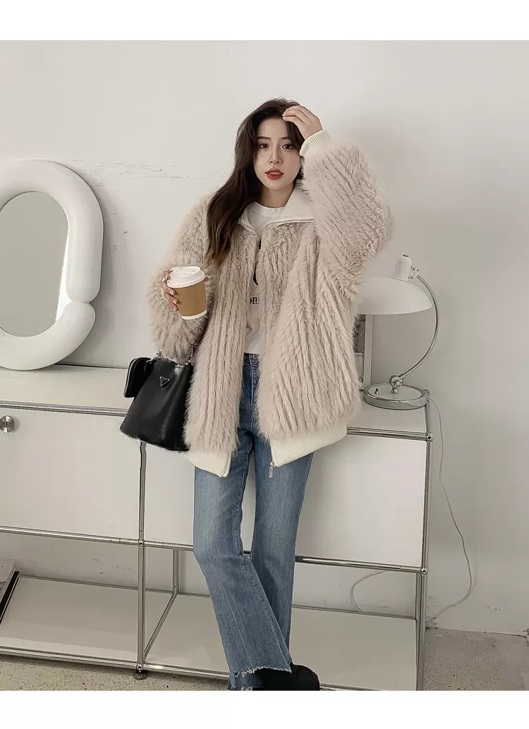 Stand Collar Vertical Bar Fox Ditch Faux Fur Coat Stand Collar Vertical Bar Fox Ditch Faux Fur Coat