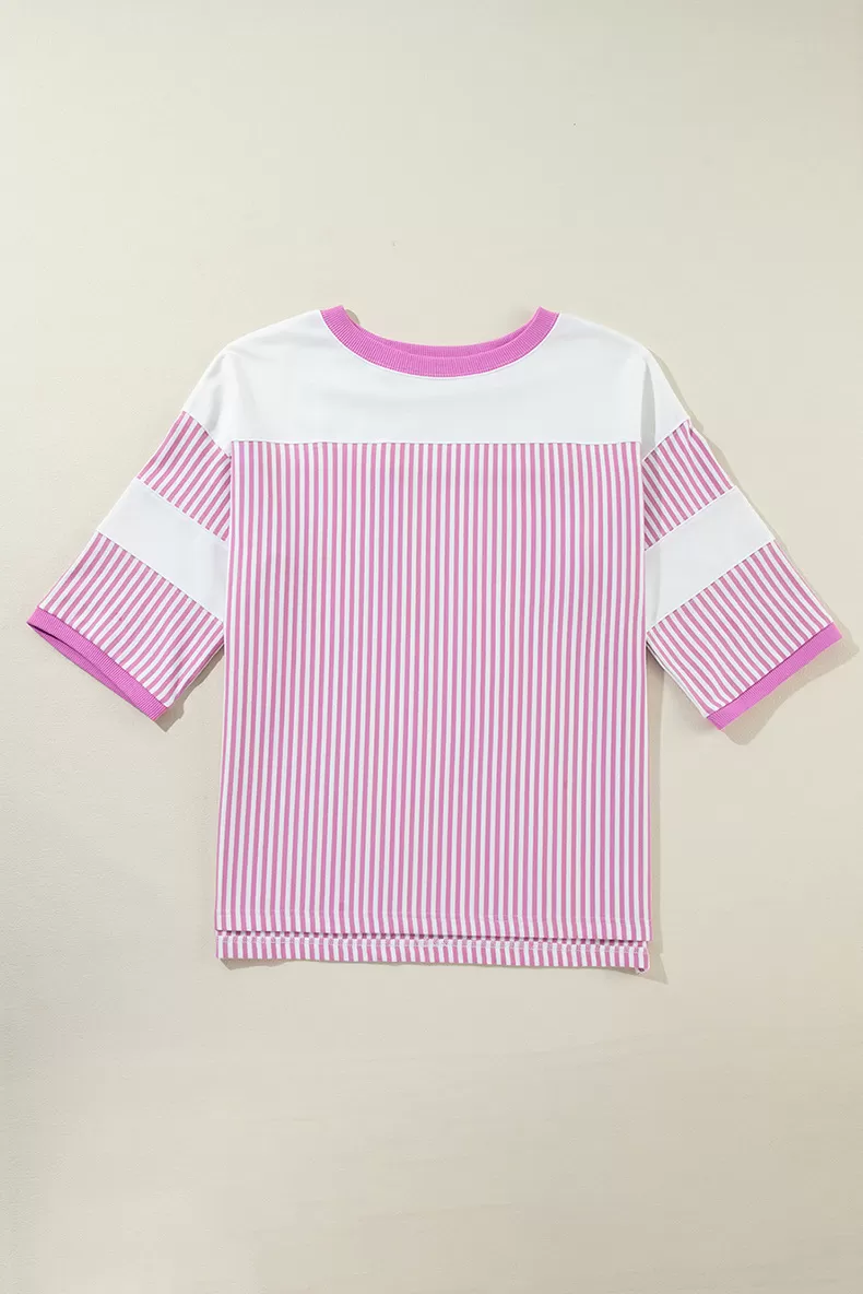 Striped Color Matching Short-sleeved T-shirt For Women Striped Color Matching Short-sleeved T-shirt For Women