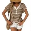 Summer V-neck Patchwork Button Pullover Short Sleeve Summer V-neck Patchwork Button Pullover Short Sleeve