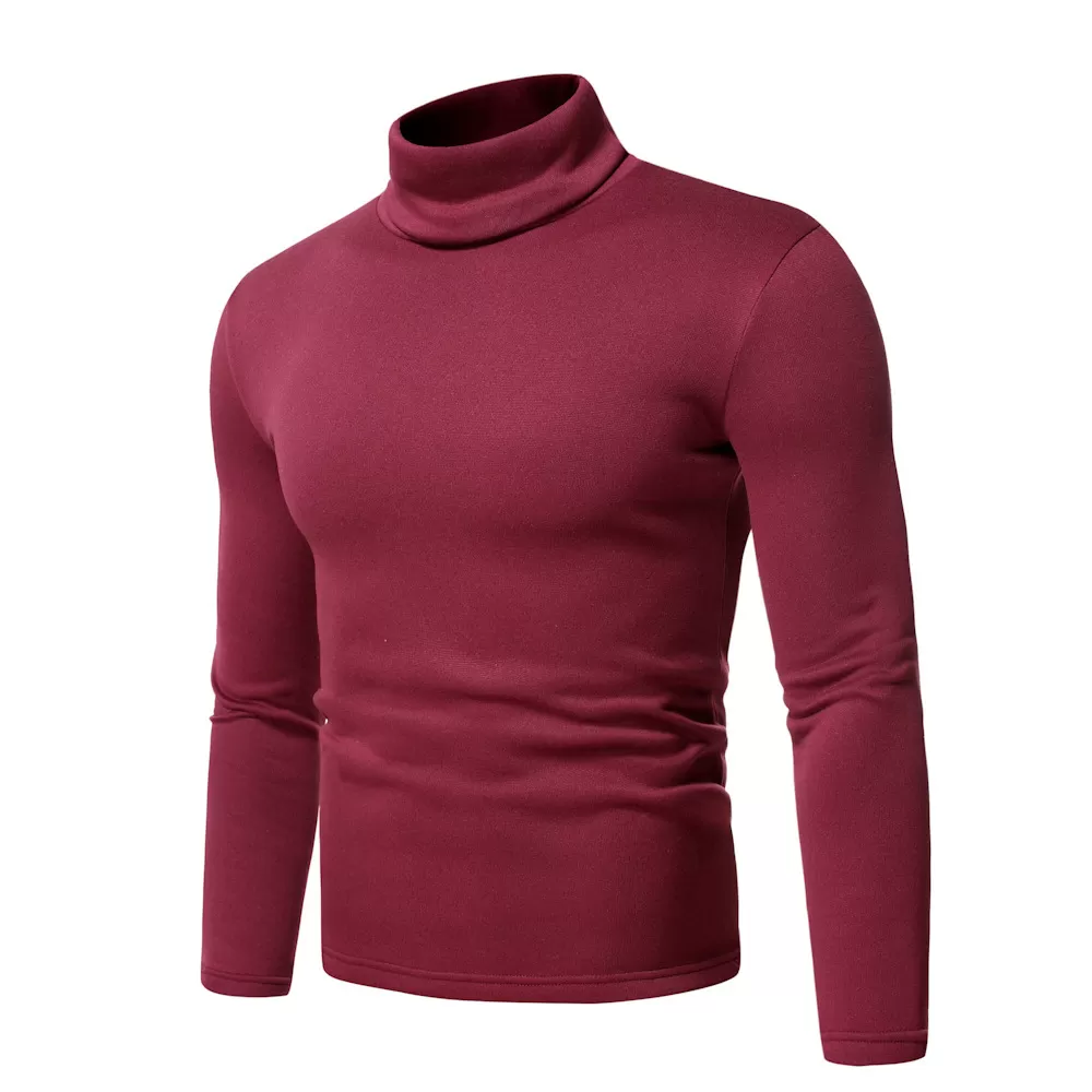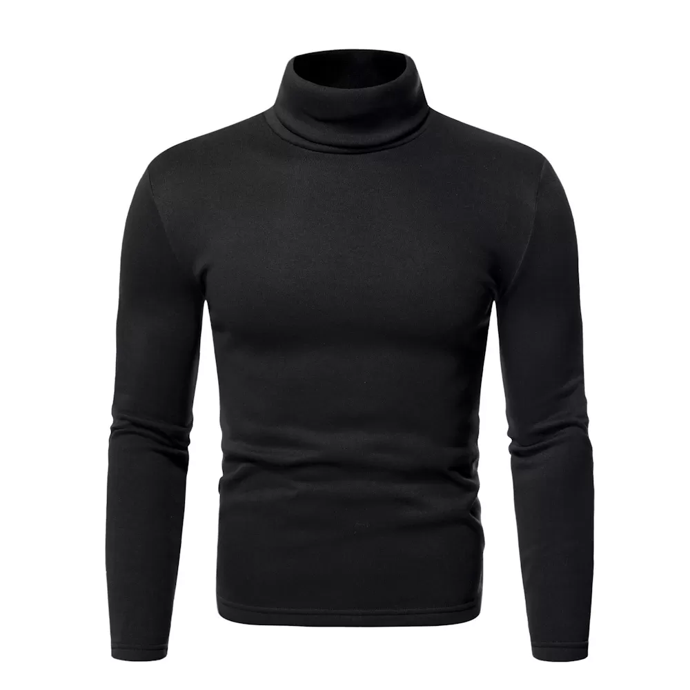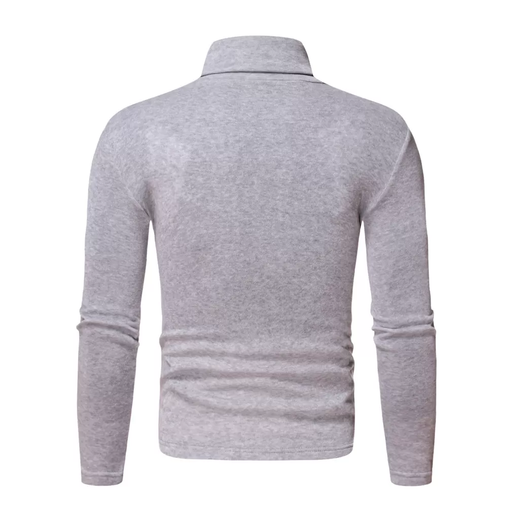 Sweater Men’s Solid Color With Fur Pullover High Collar T-shirt
