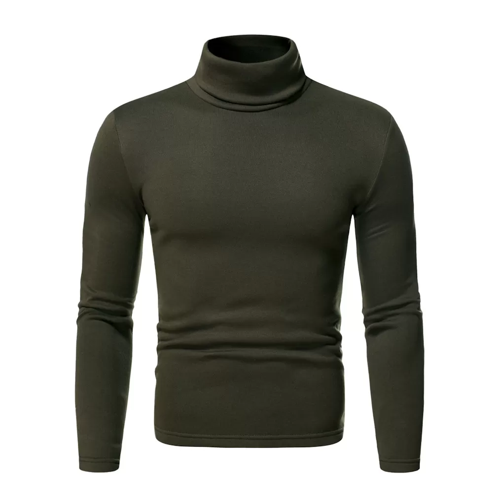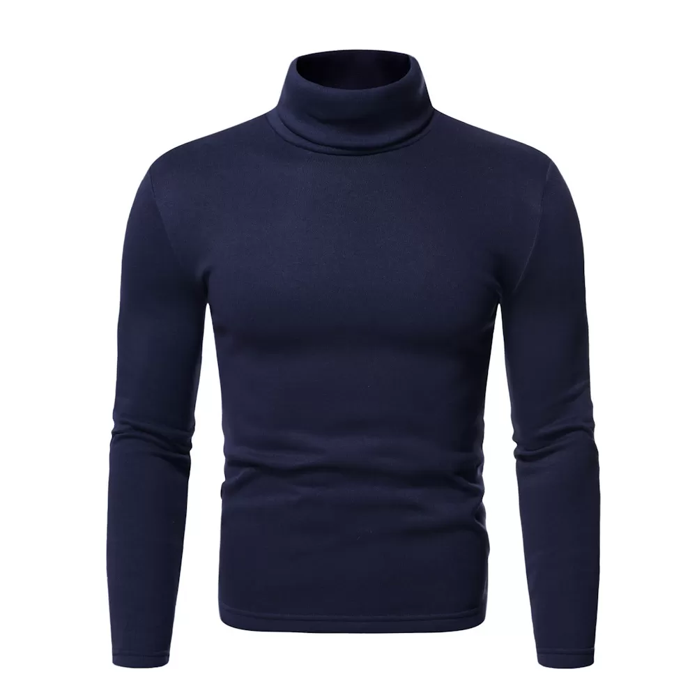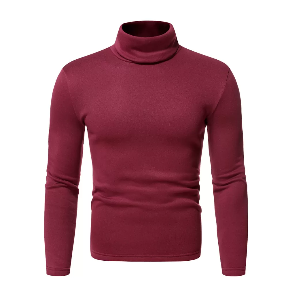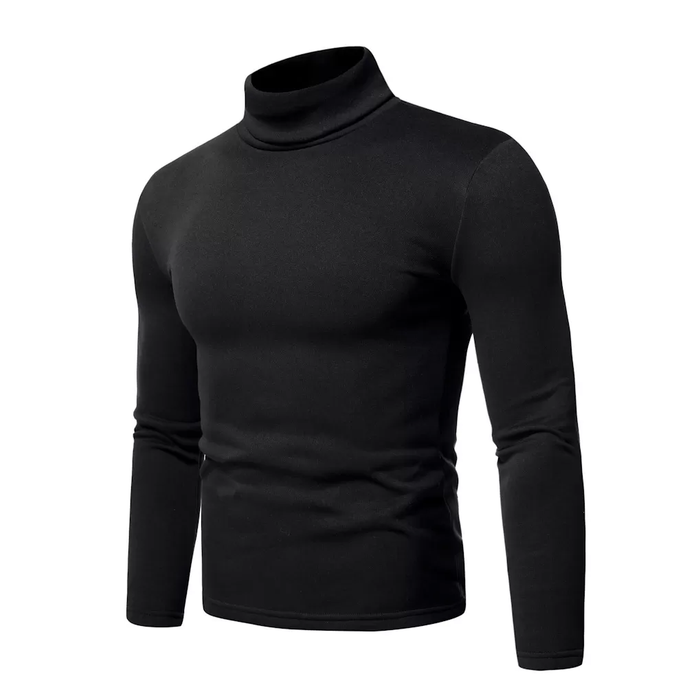Sweater Men’s Solid Color With Fur Pullover High Collar T-shirt
