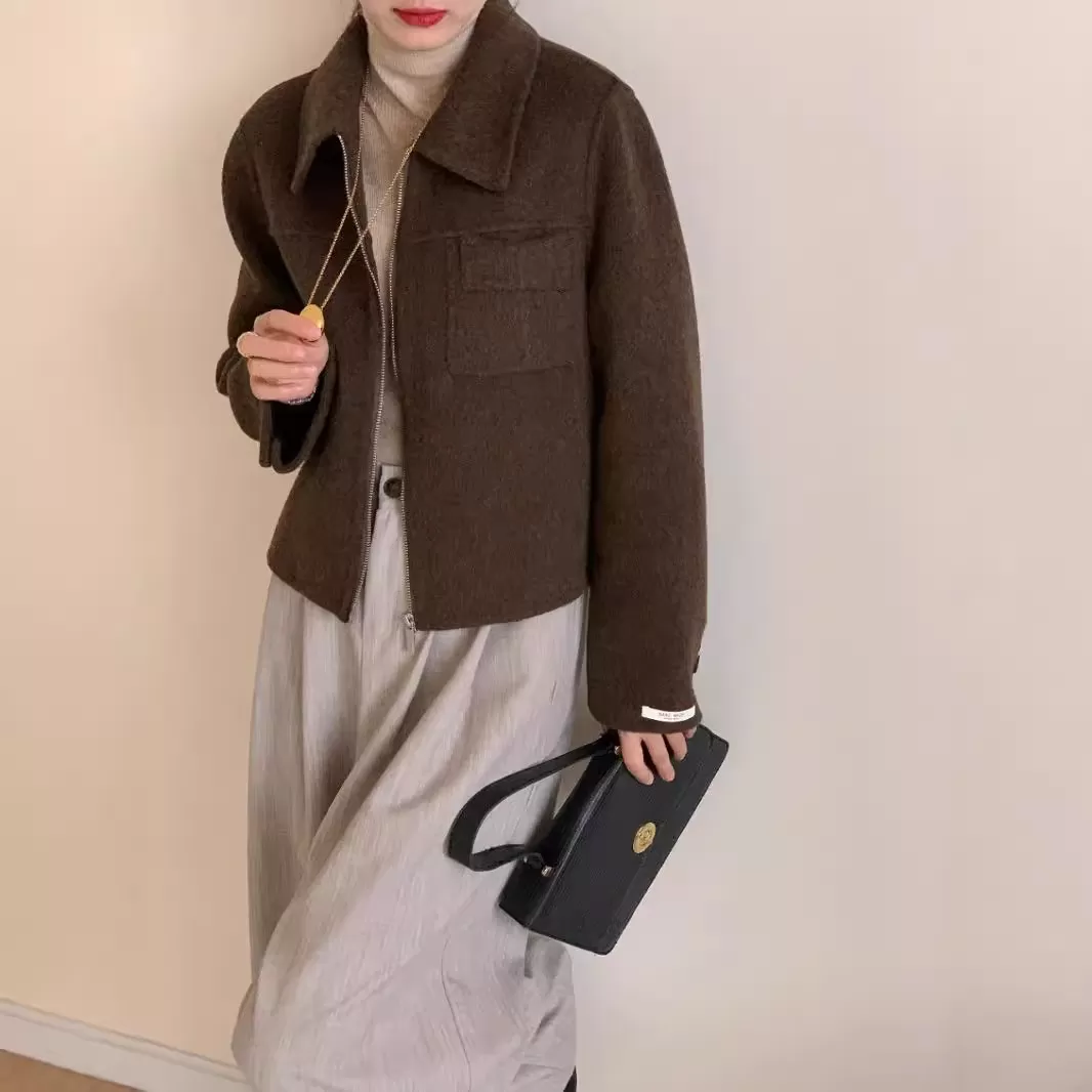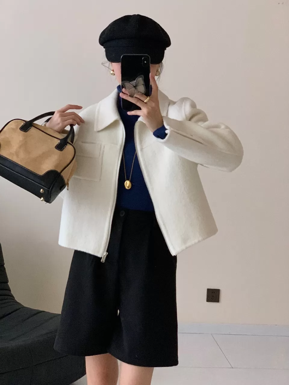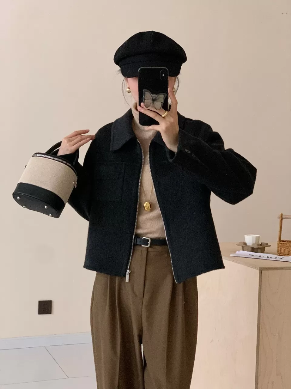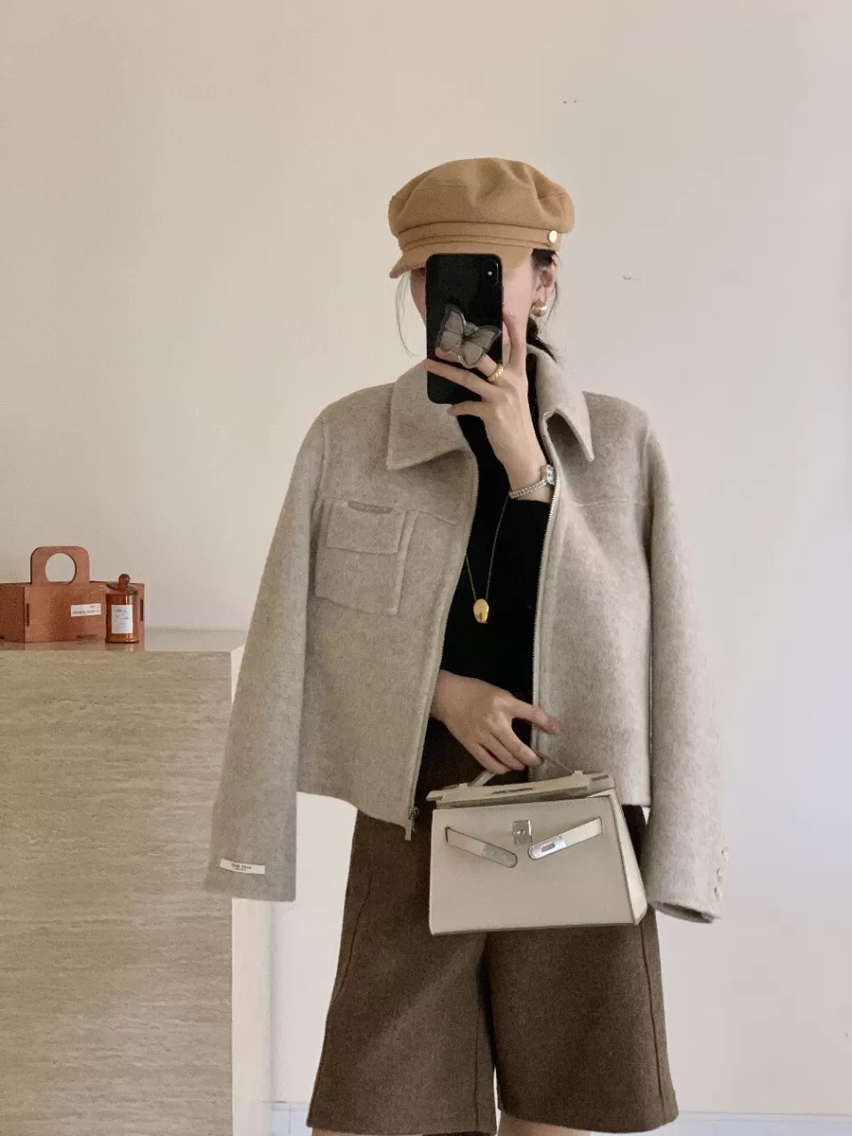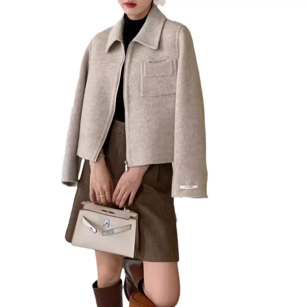 Temperament Thickening Cashmere Double-sided Hand-stitched Wool Overcoat Women’s Short Coat