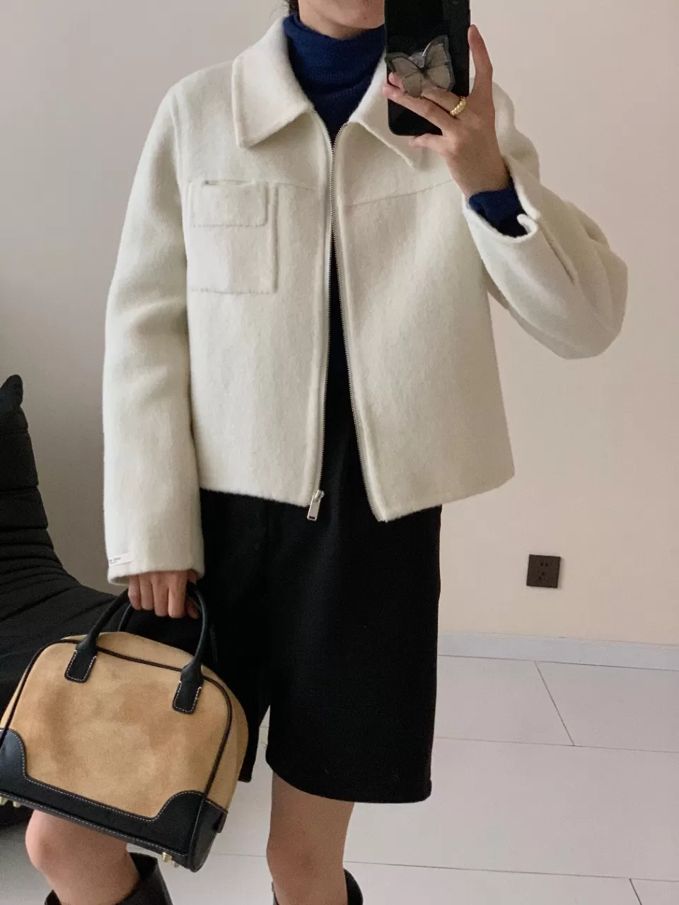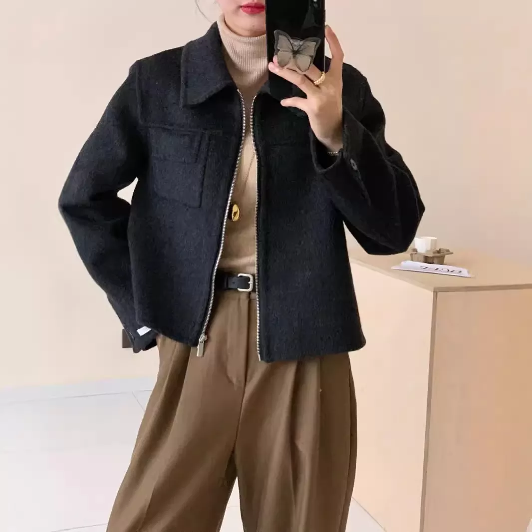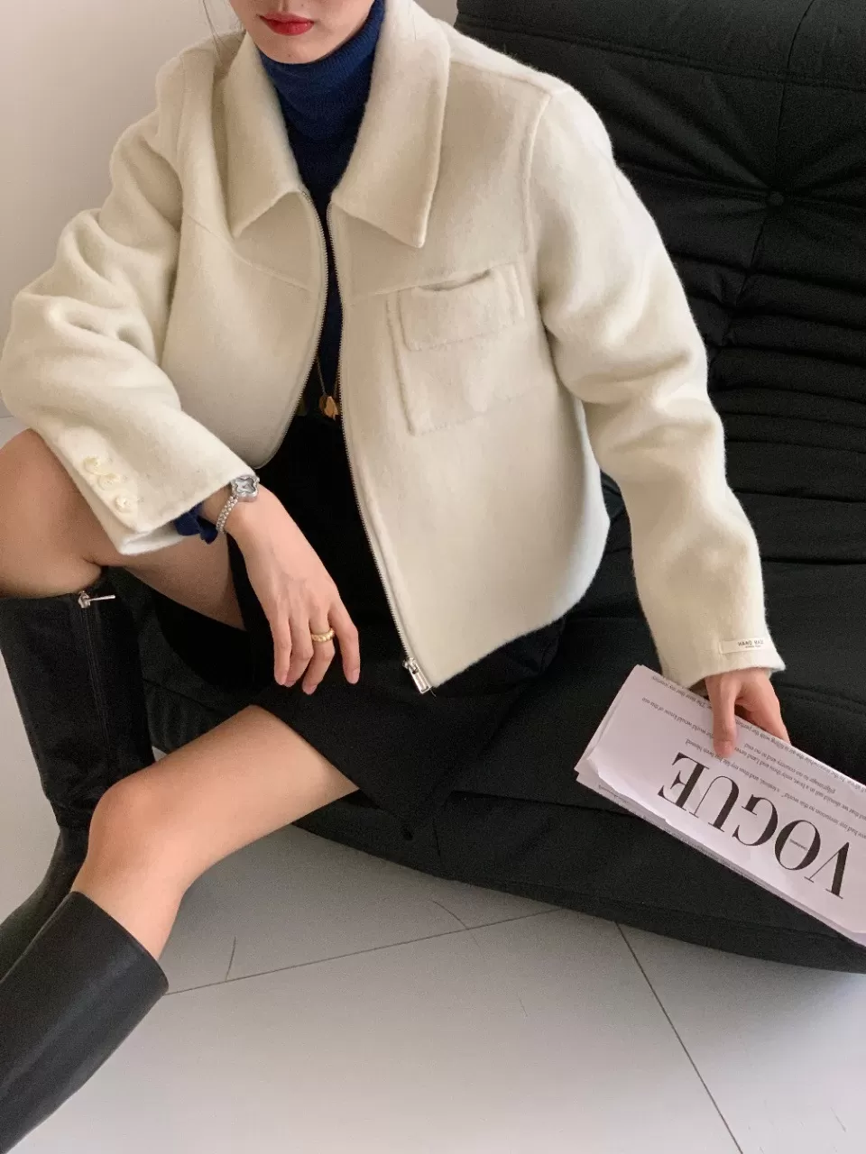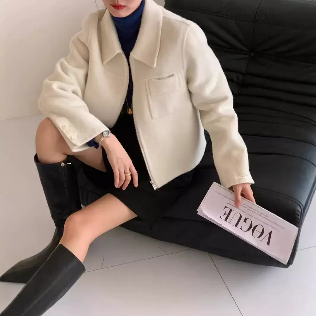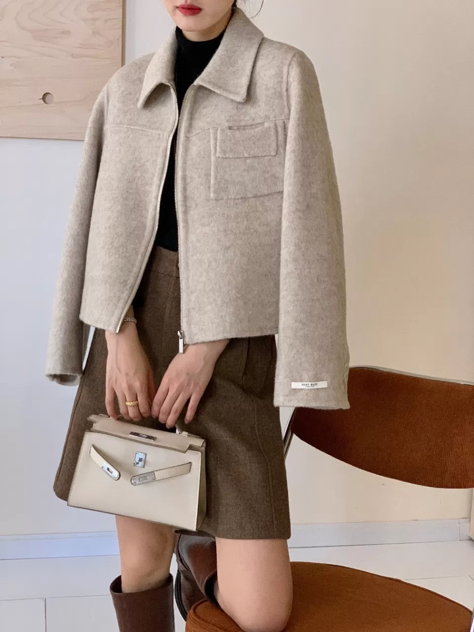 Temperament Thickening Cashmere Double-sided Hand-stitched Wool Overcoat Women’s Short Coat