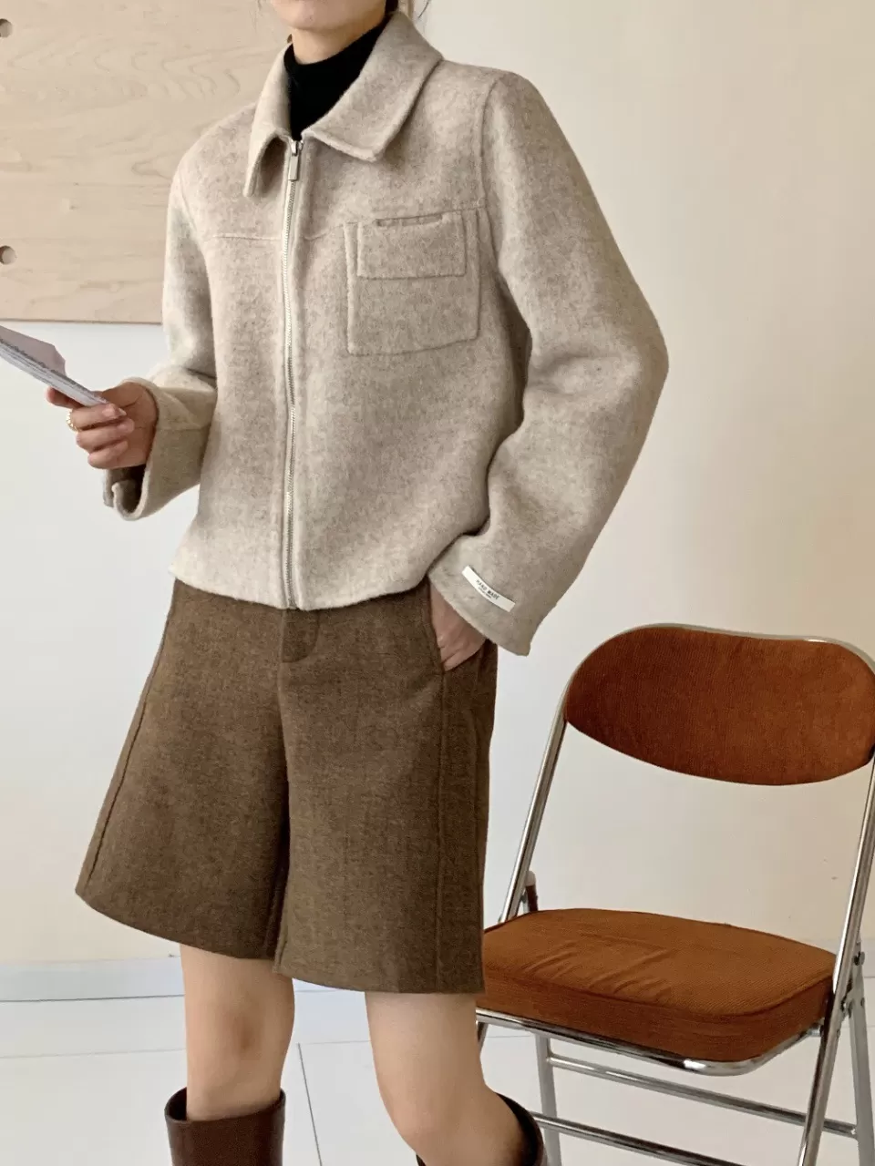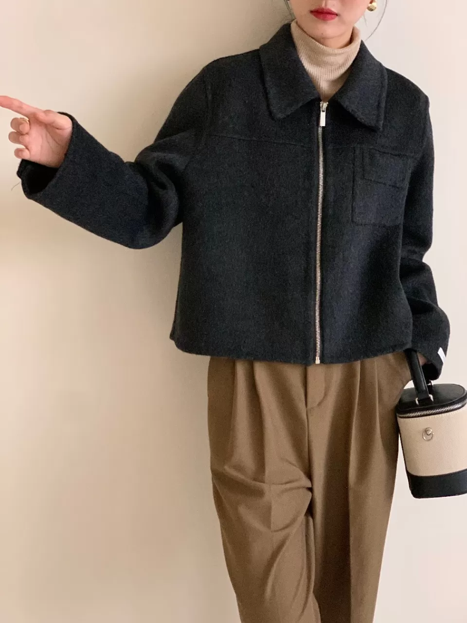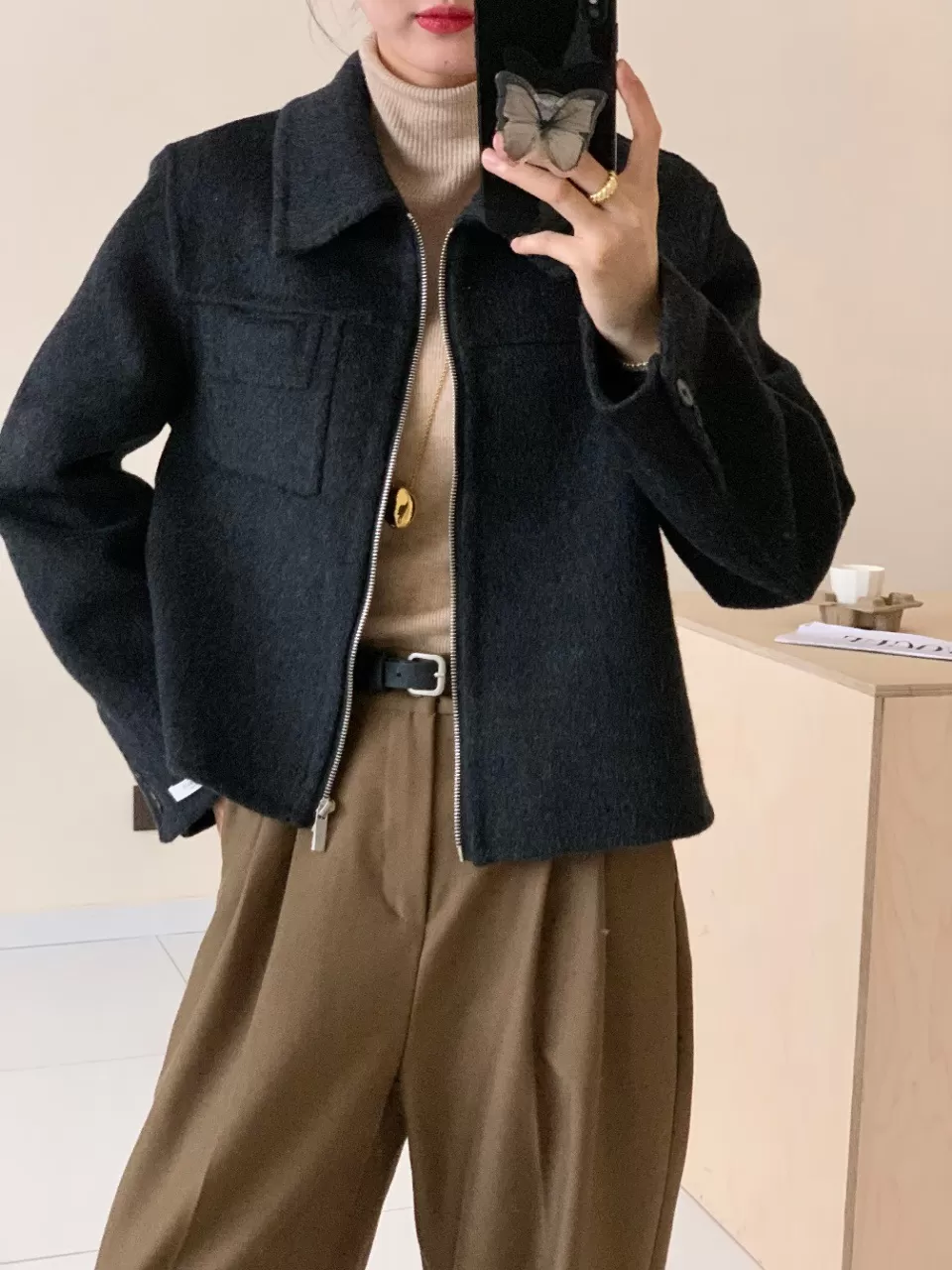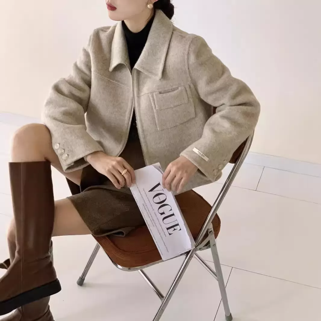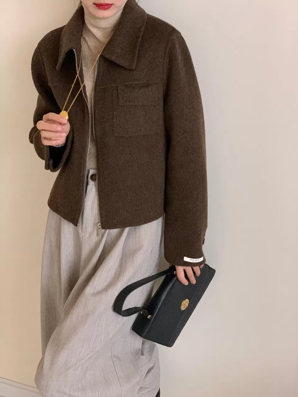 Temperament Thickening Cashmere Double-sided Hand-stitched Wool Overcoat Women’s Short Coat