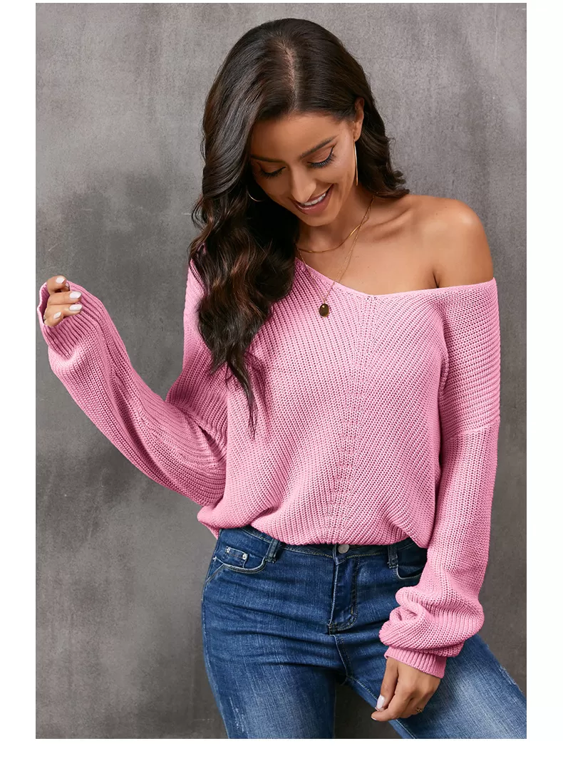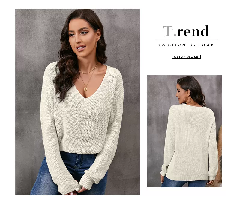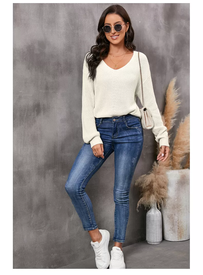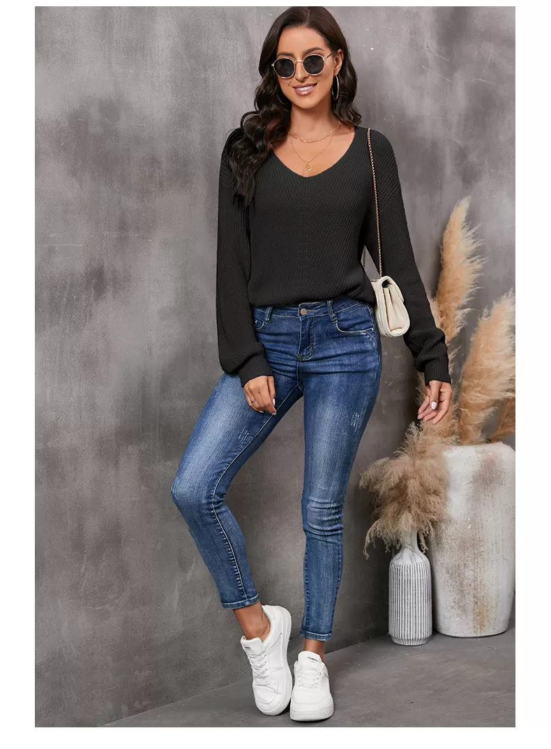 Threaded Long Sleeve Women’s Sweater Autumn Slim Fit Pullover Simple Style Top