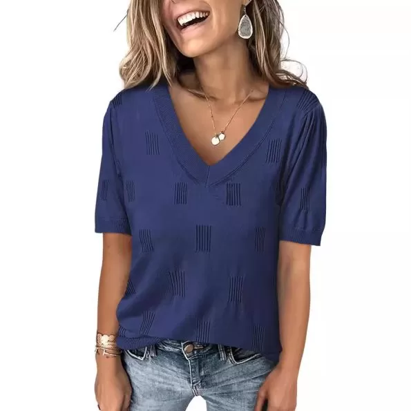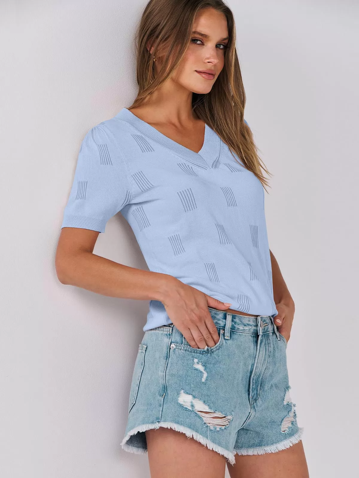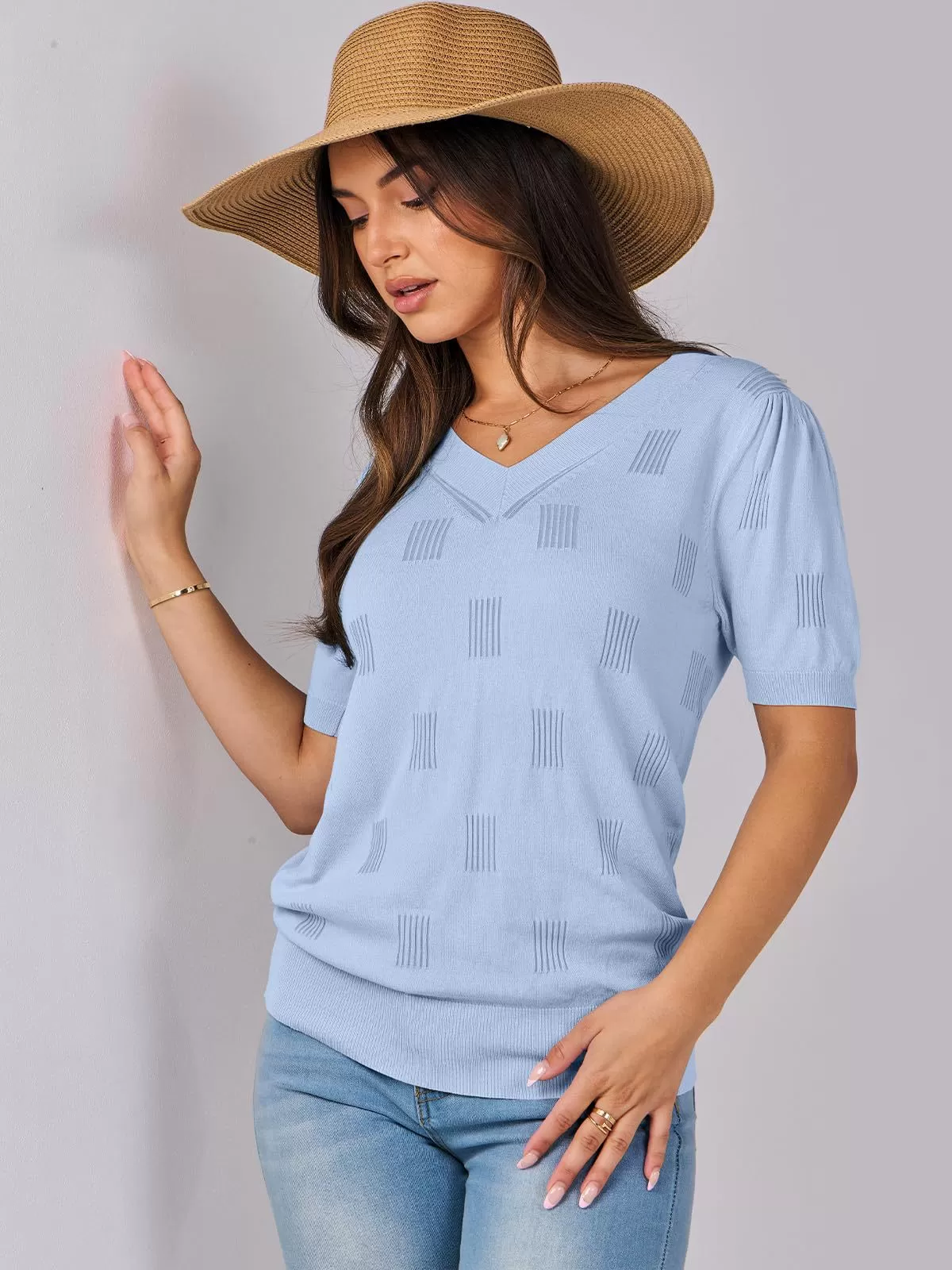 V-neck Lightweight Thin Knit Sweater With Short Sleeves
